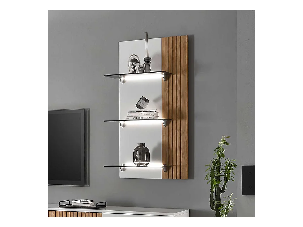 Hängeregal mit Glasböden in Eiche Bianco und Weiß 55 cm breit