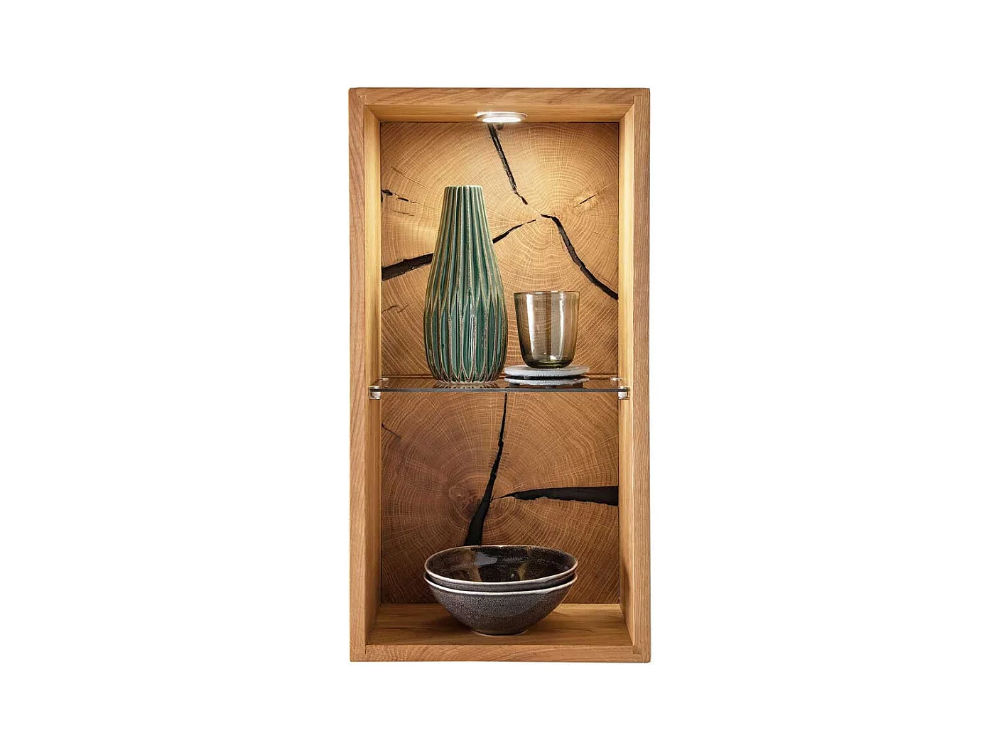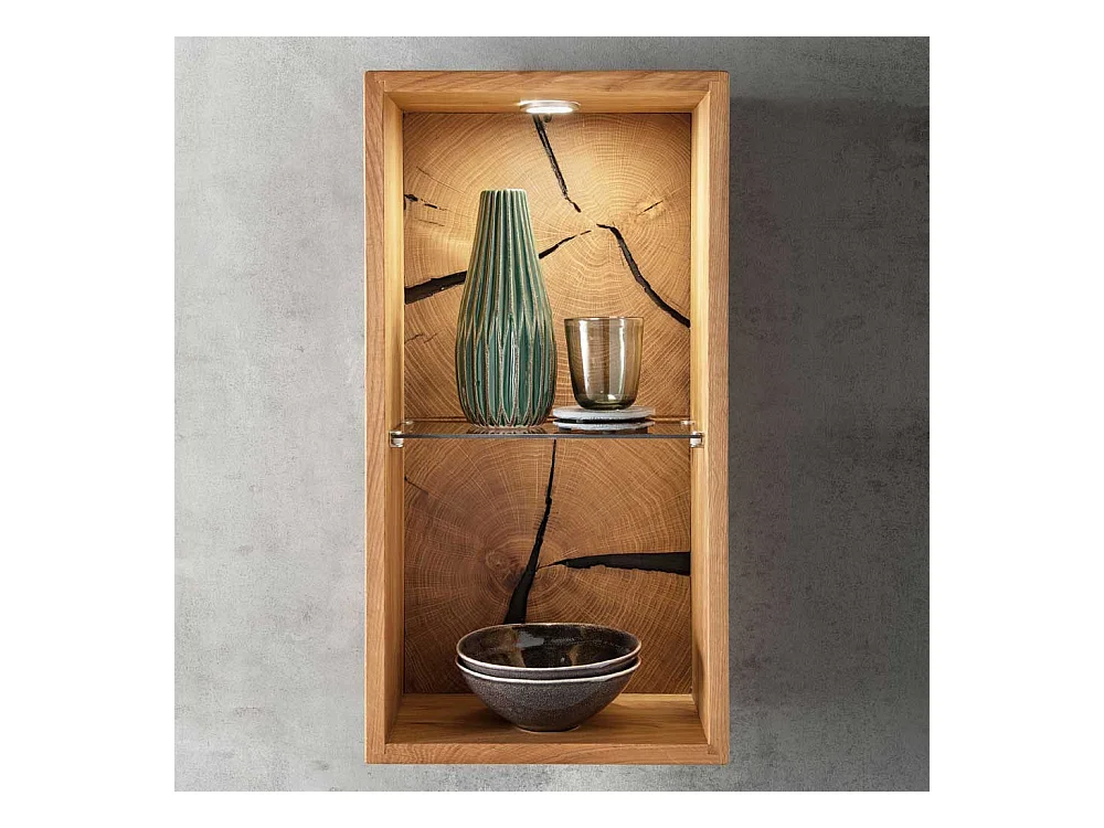 Hängeregal Wildeiche geölt mit Hirnholz Rückwand ein Glasboden