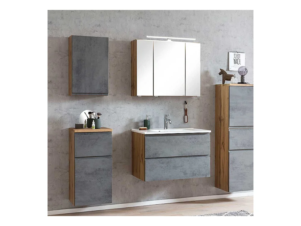 Hängeschrank in Wildeichefarben und Beton Grau Badmöbel
