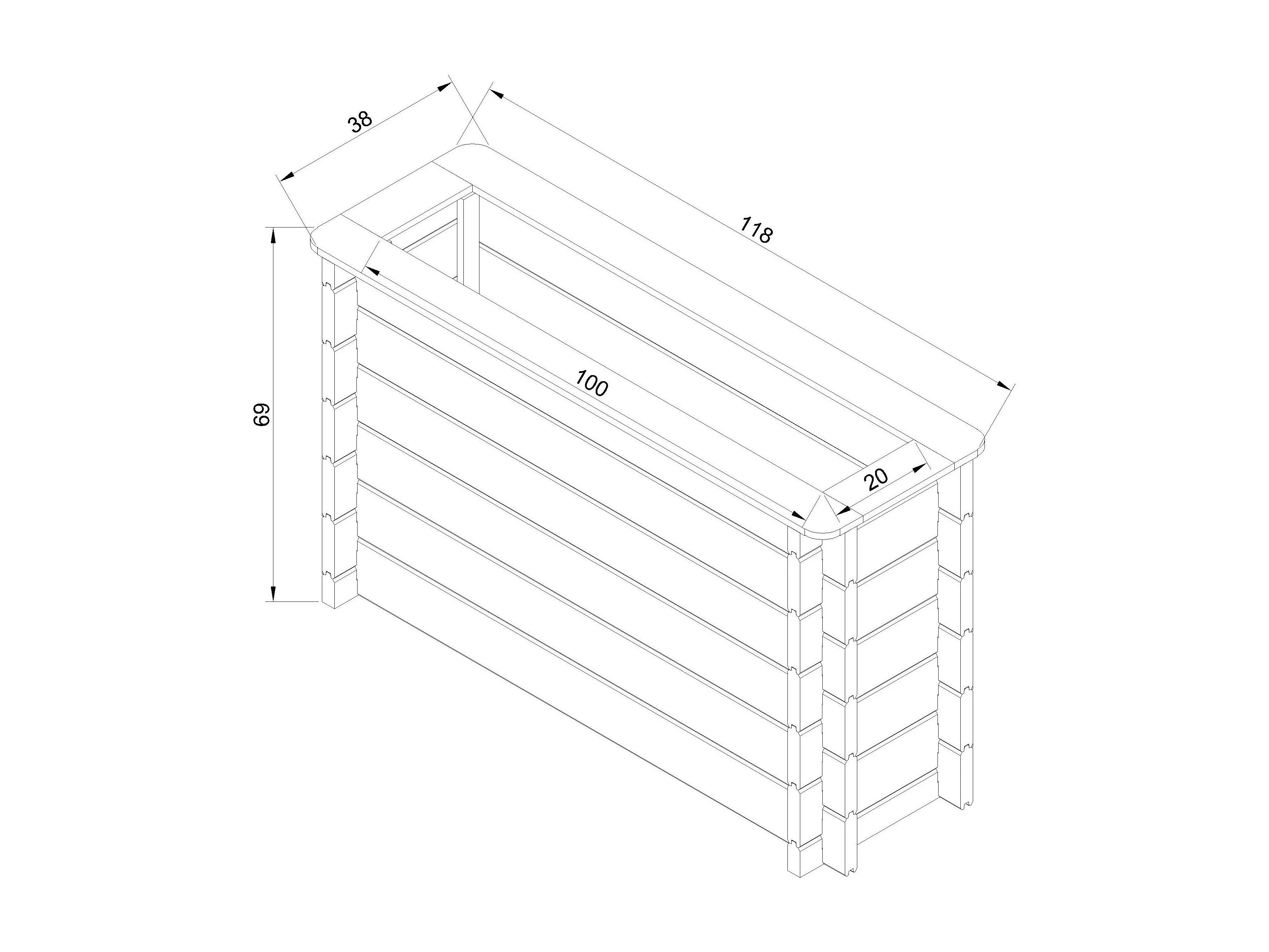 Hochbeet holz - 118x38xH69 cm - M615-1