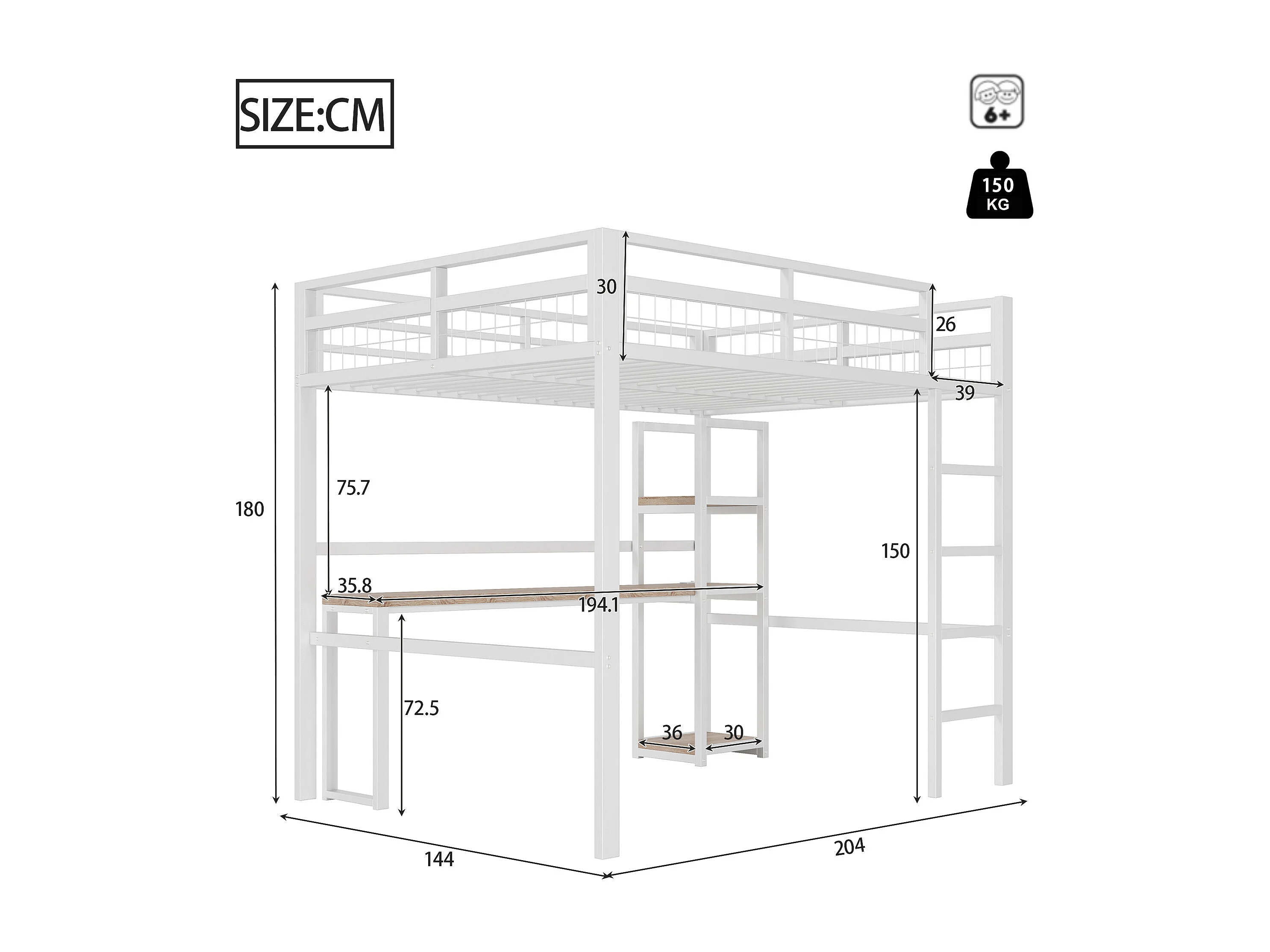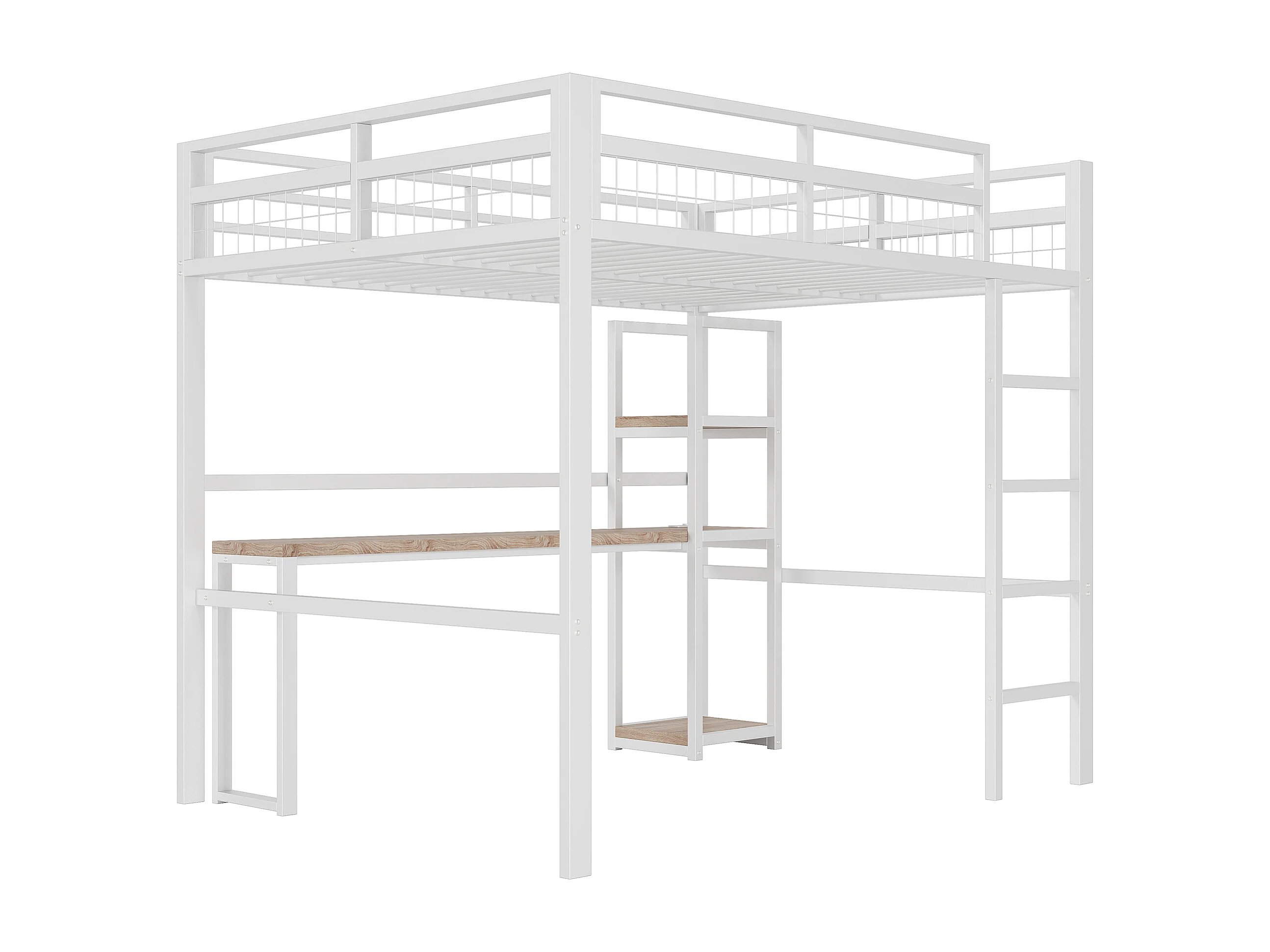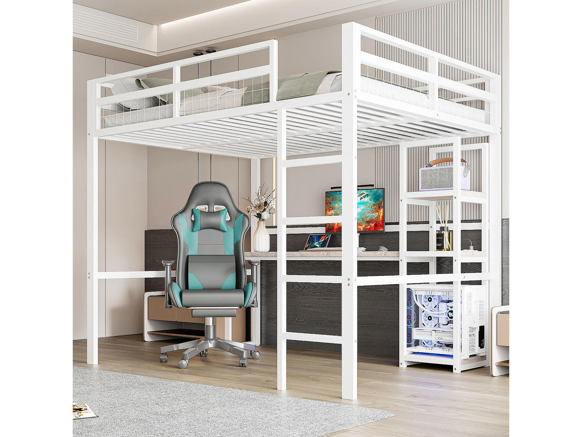 Hochbett 140 x 200 cm – Jugendbett mit Regal und Leiter – USB-Ladeanschluss – weiß – ohne Matratze