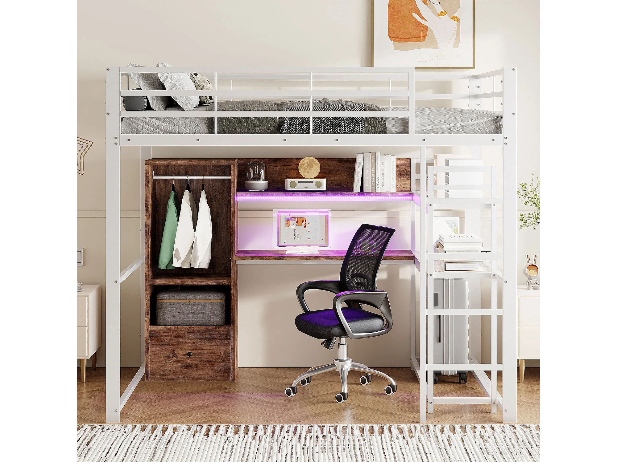 Hochbett 140 x 200 cm – mit Schublade, Regalen und offenem Stauraum – weiß – Matratze nicht enthalten
