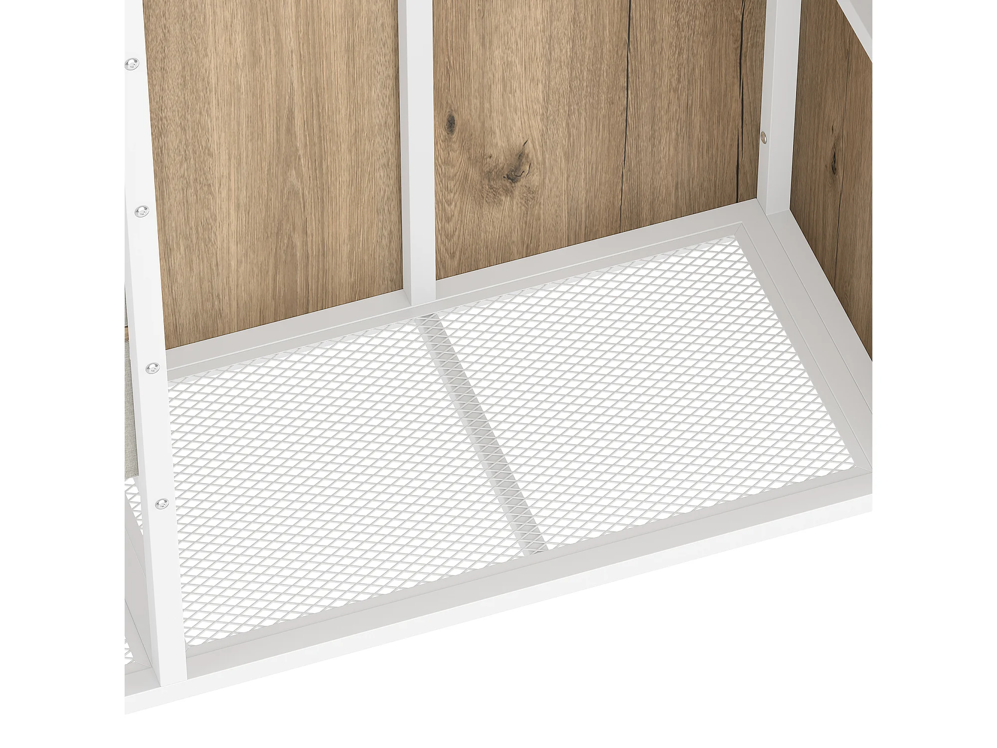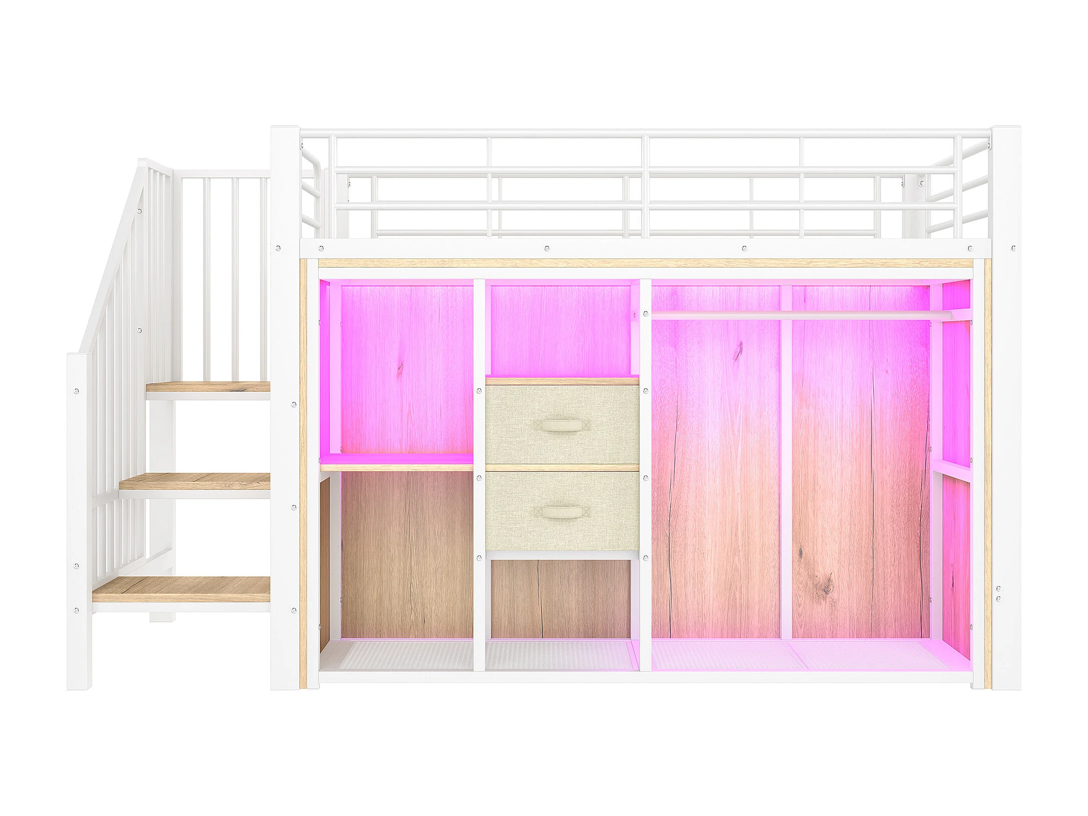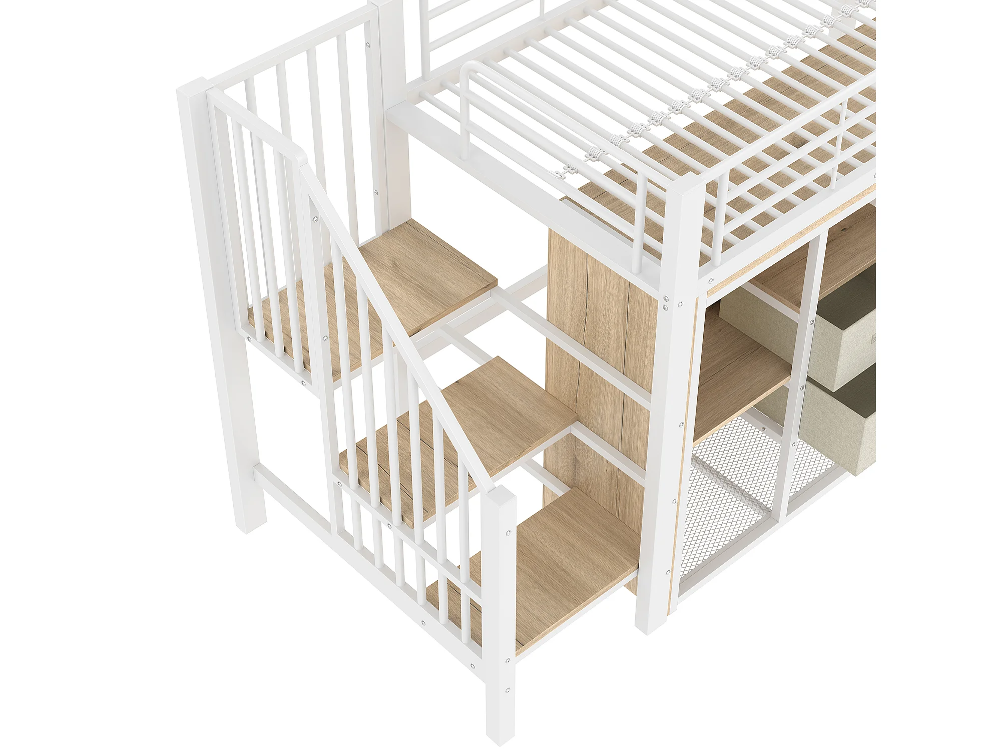 Hochbett 90x200 cm – Kinderbett mit 2 Schubladen und offenem Stauraum – weißes Metall – Matratze nicht enthalten