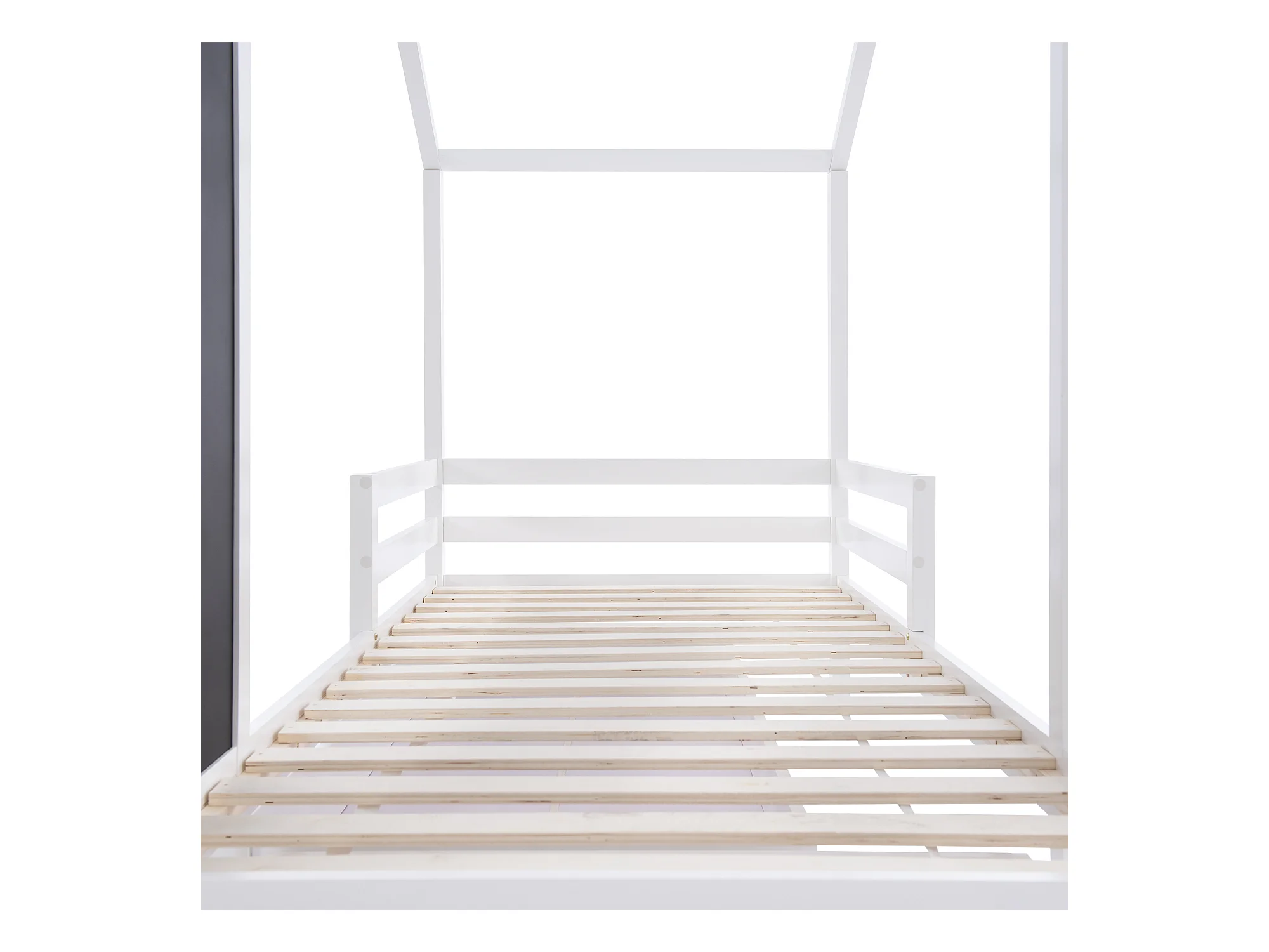 Hochbett 90x200 cm - Kinderbett mit Tafel und 2 Schubladen - Holzlattenrost - weiß