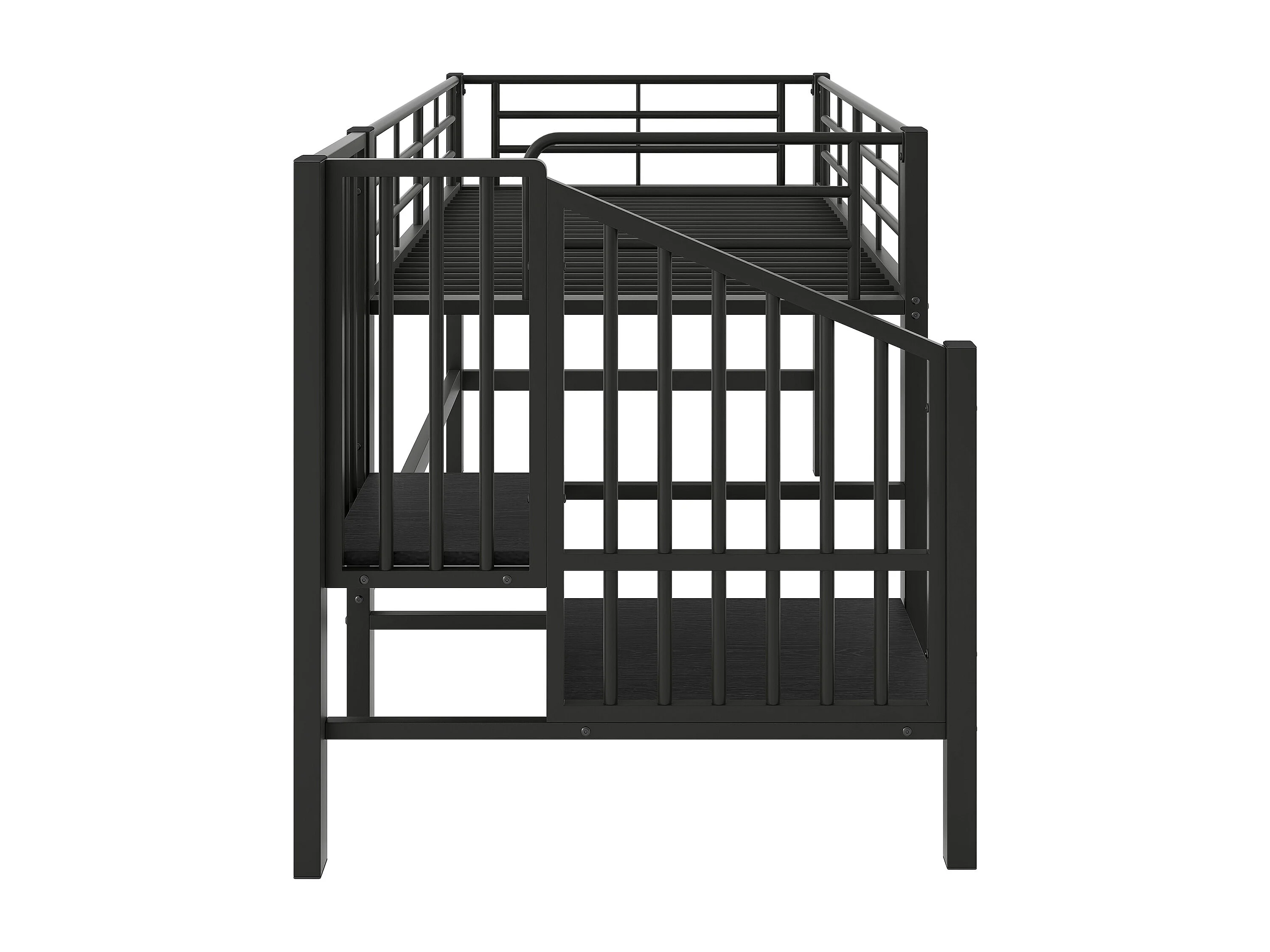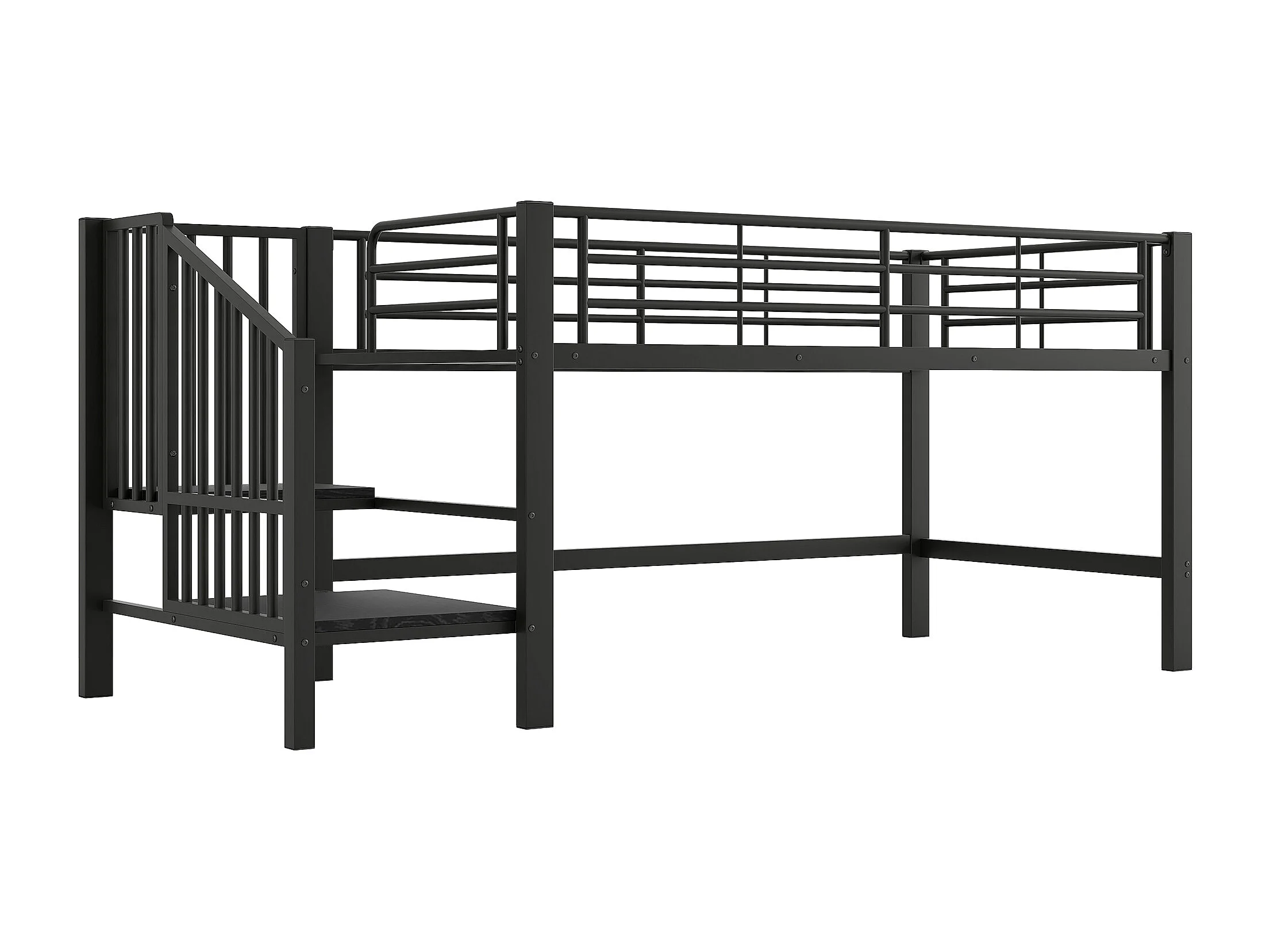 Hochbett 90x200 cm – Kinderbett mit Treppe und Schutzgitter, Lattenrost aus Metall – schwarz – Matratze nicht enthalten