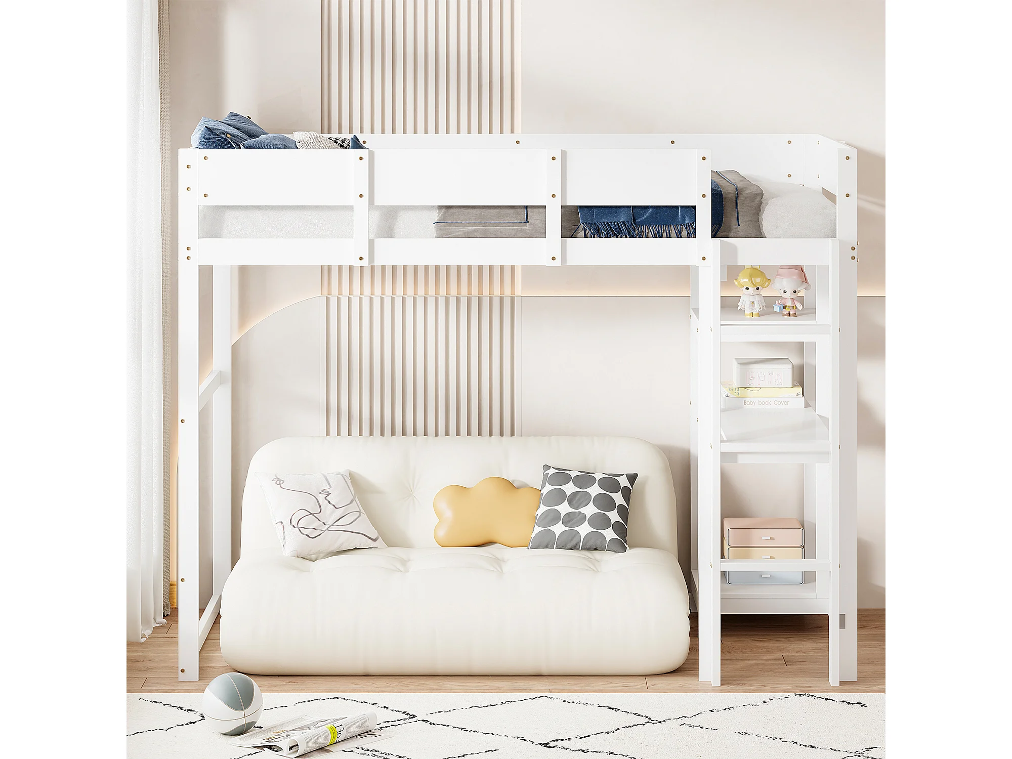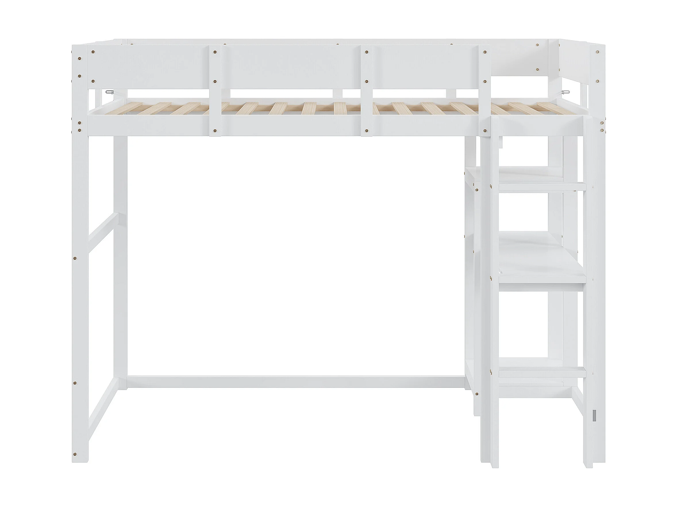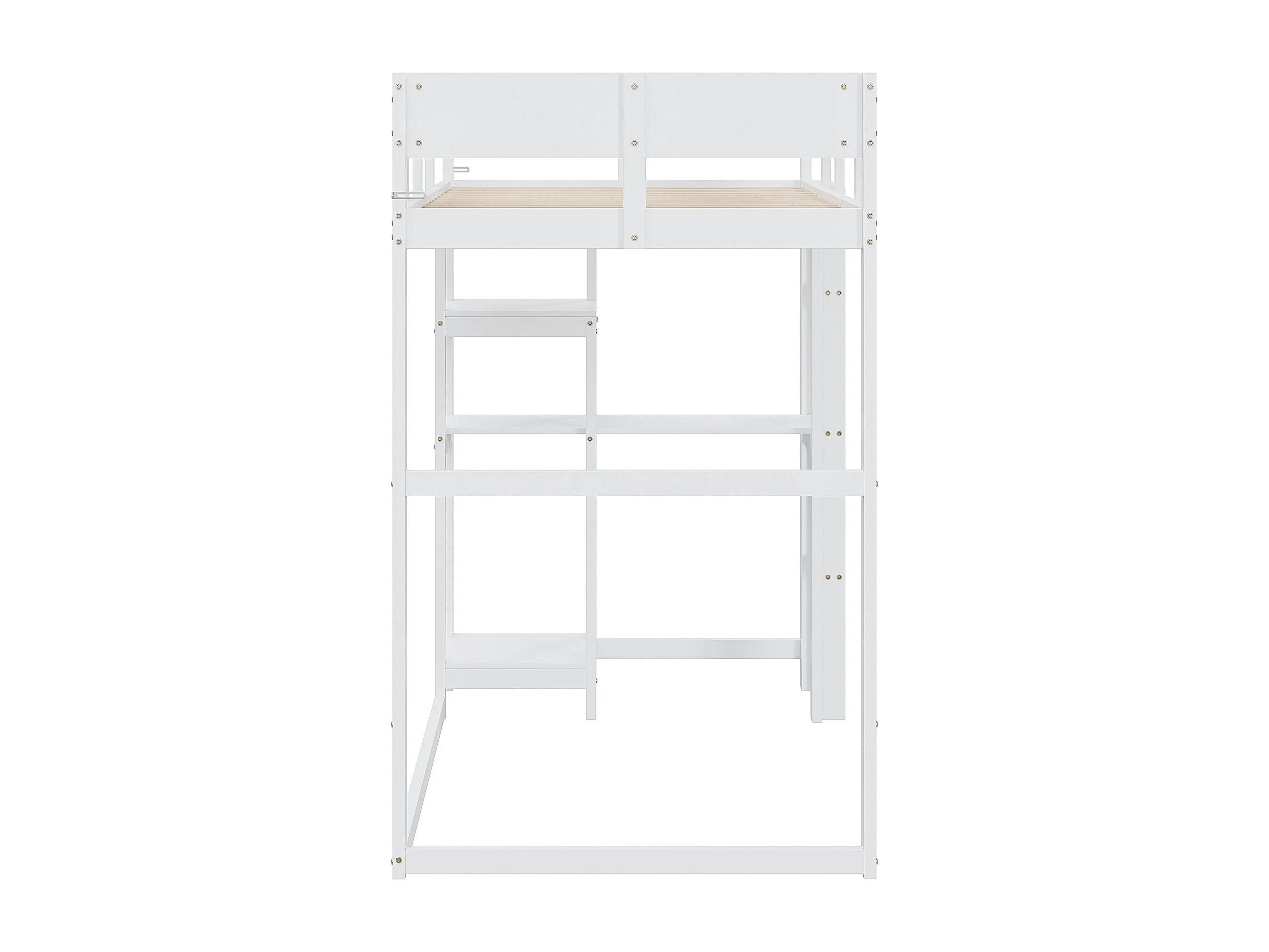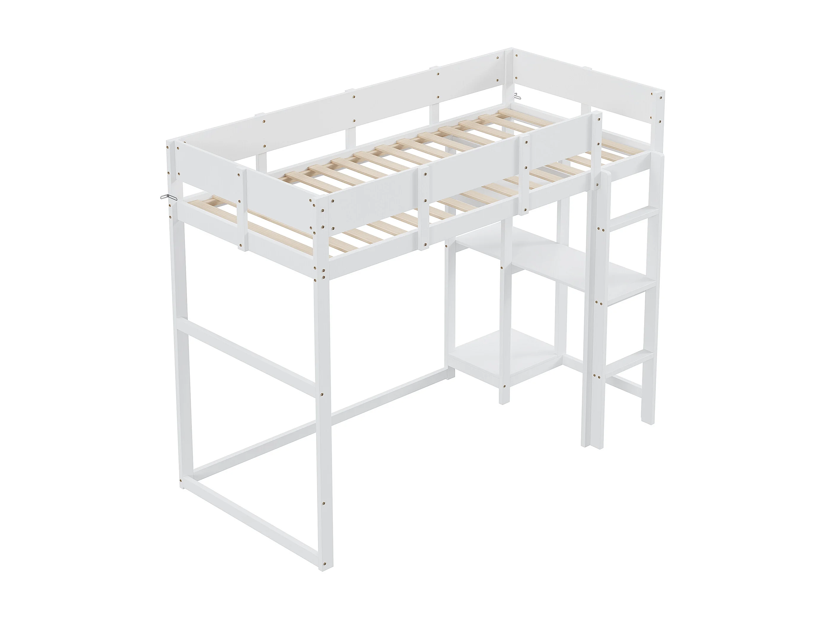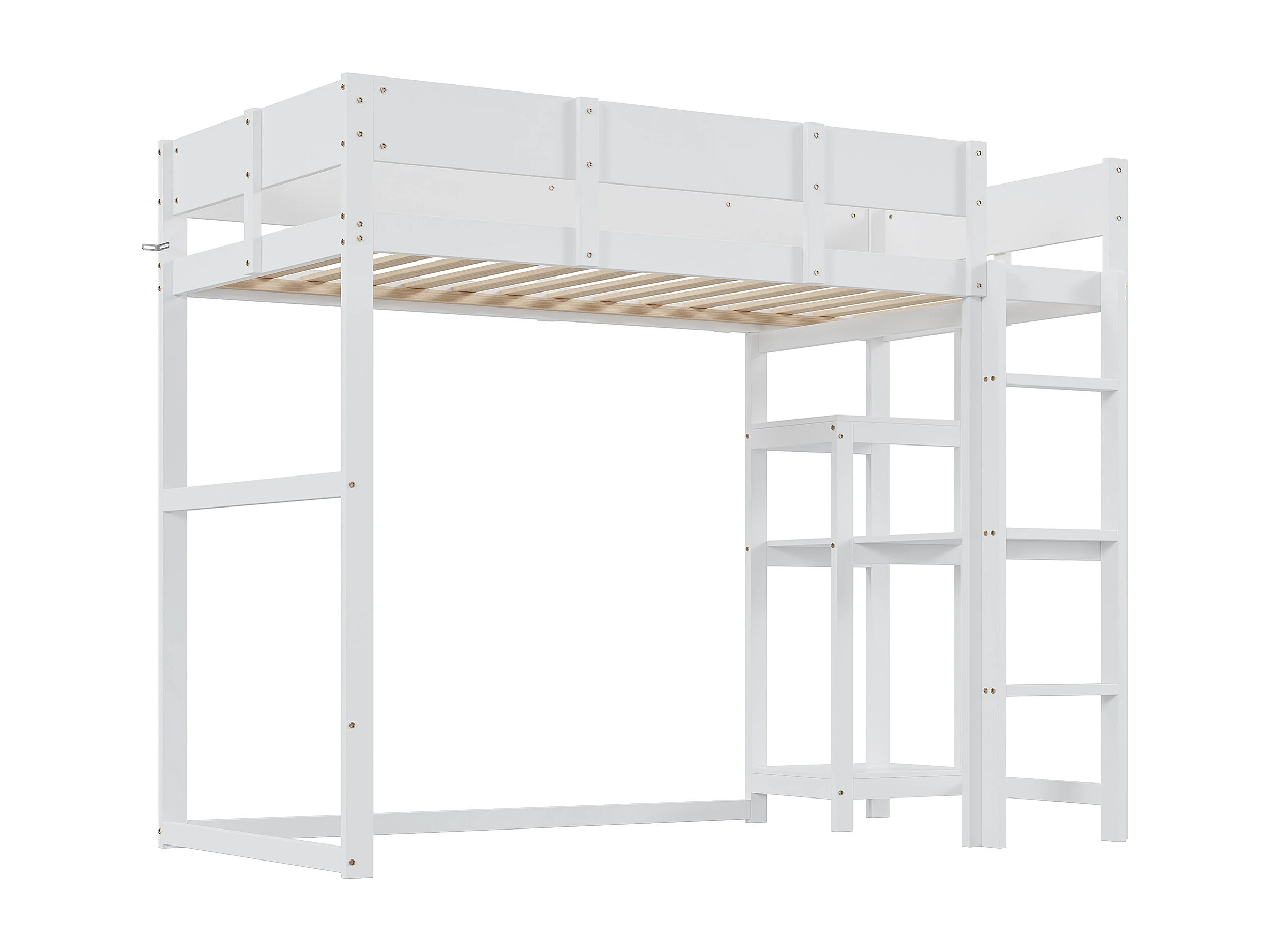 Hochbett 90x200 cm – mit Ablagefächern, Lattenrost aus Holz – weiß – Matratze nicht enthalten