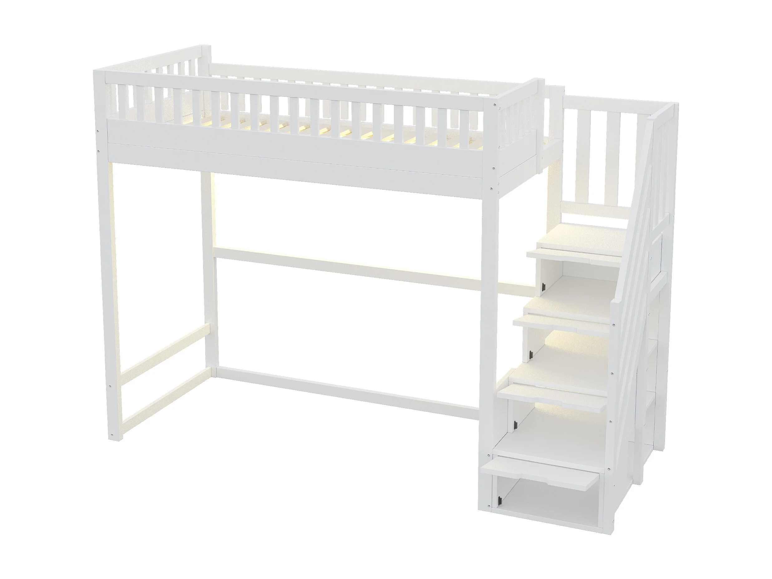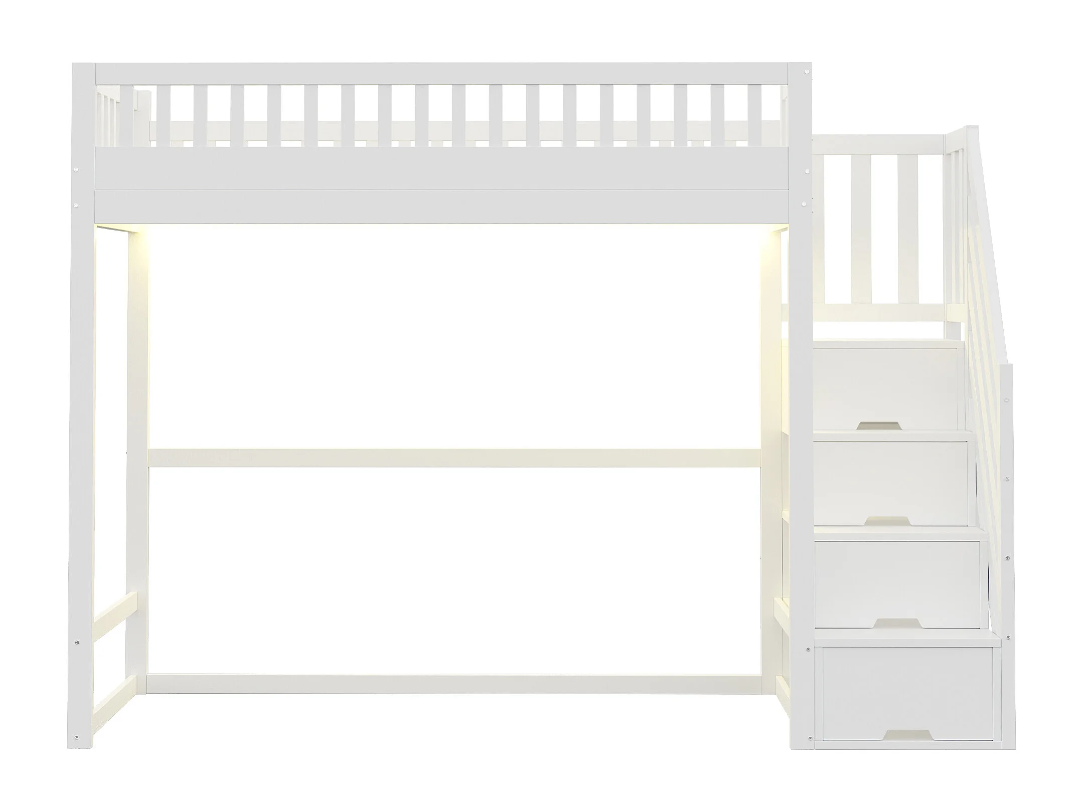 Hochbett 90x200 cm - mit Sicherheitsleiter - mit Sicherheitsgittern - mit LED-Beleuchtung - weiß​ (Matratze nicht inbegriffen)