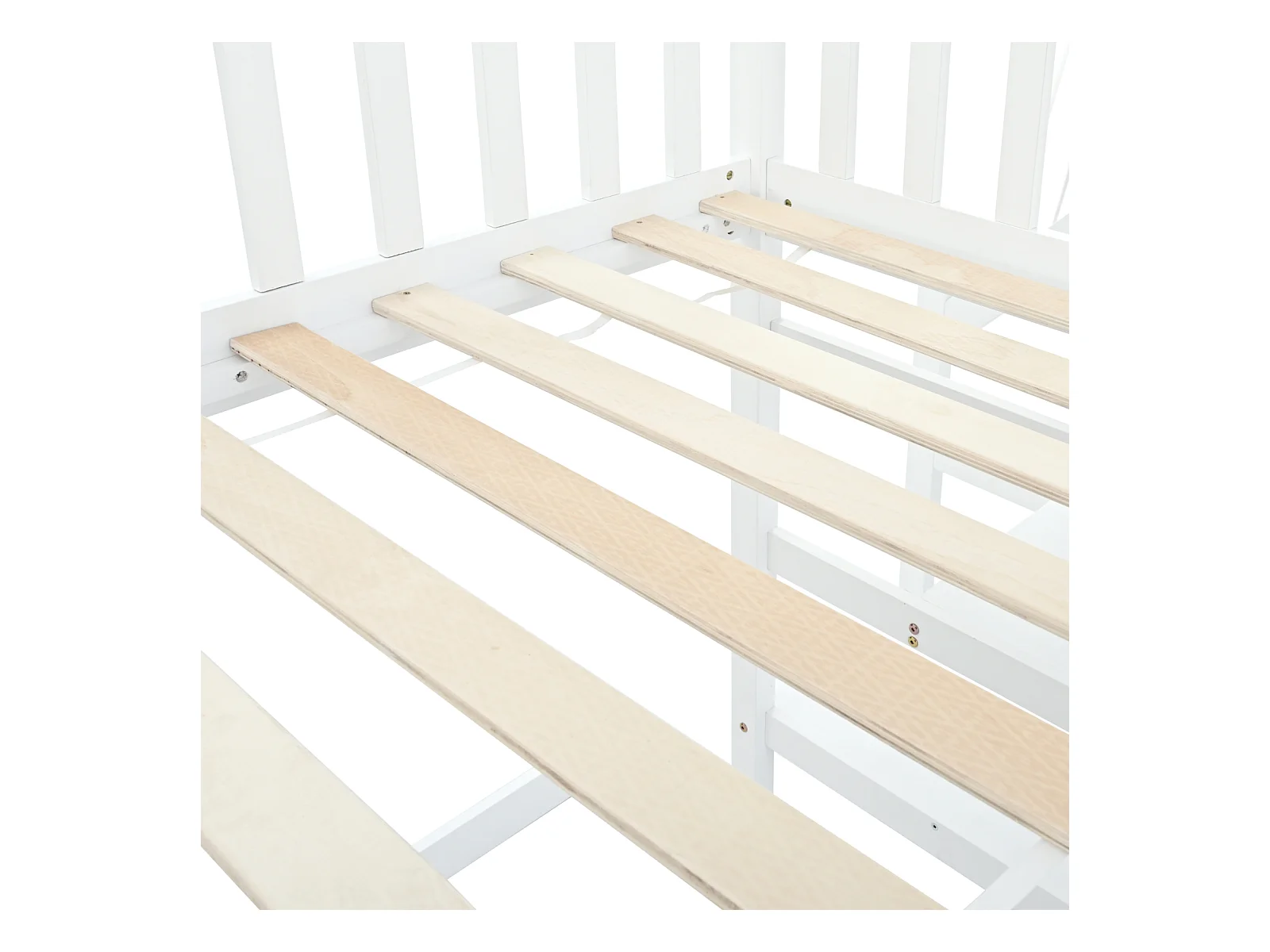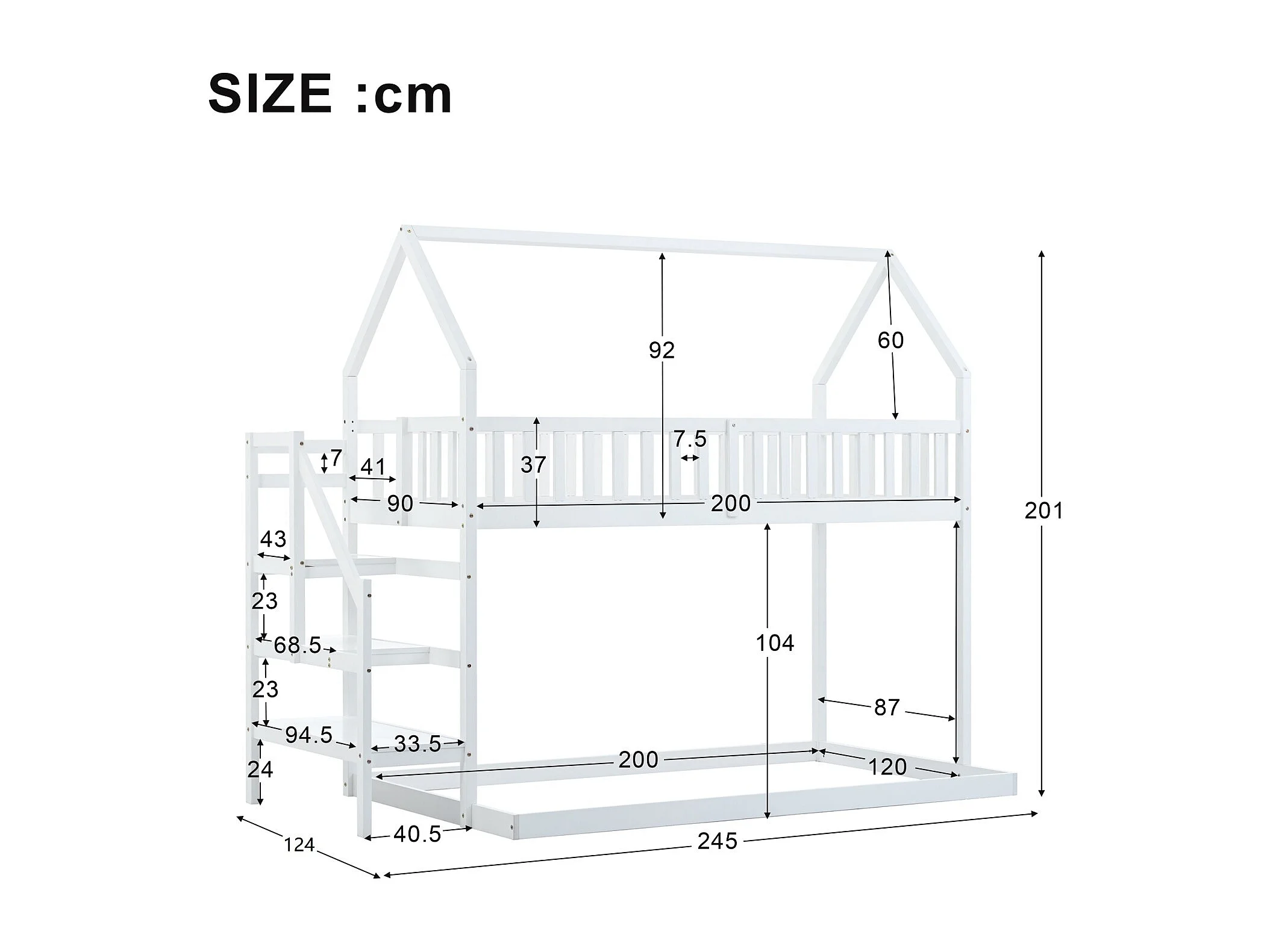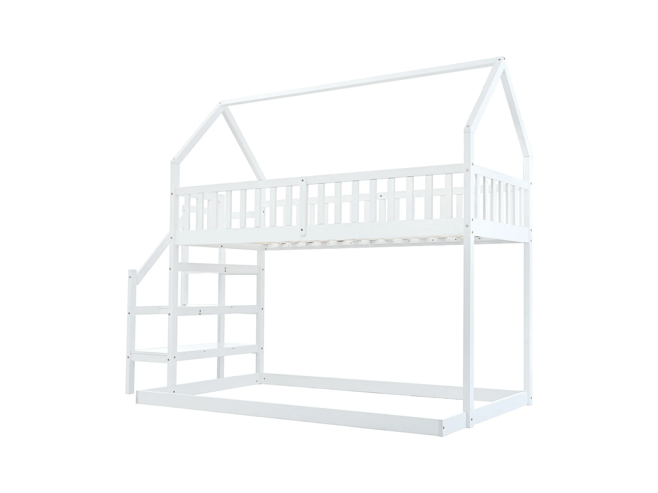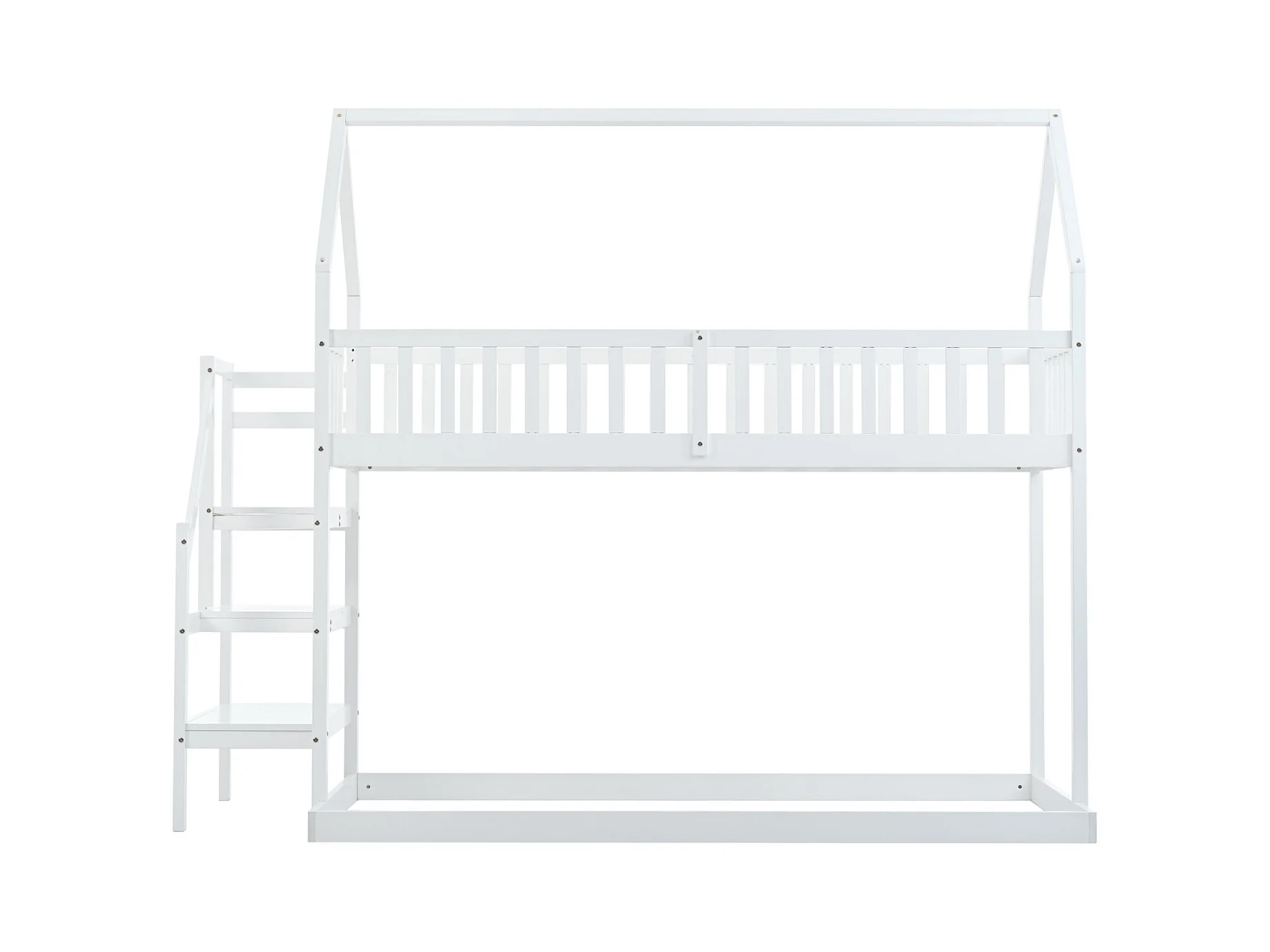 Hochbett 90x200cm - Etagenbett Hausbett mit Treppe mit Rausfallschutz und Barriere Kiefernrahmen - Weiß