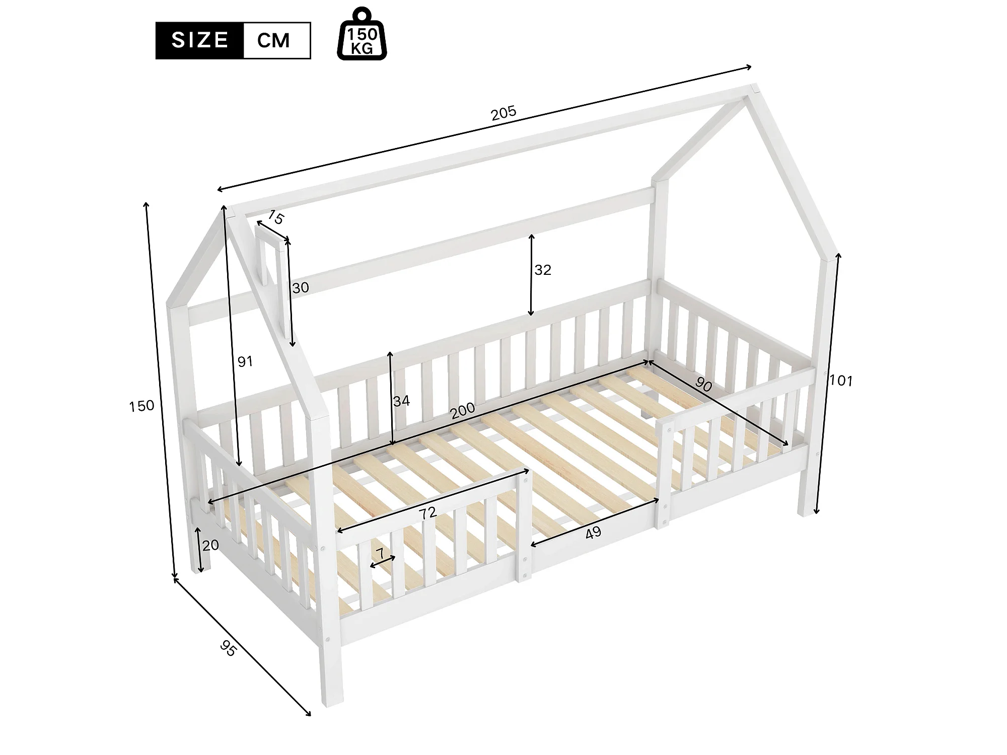 Hochbett aus Holz - 90x200 cm - mit Lattenrost - Weiß