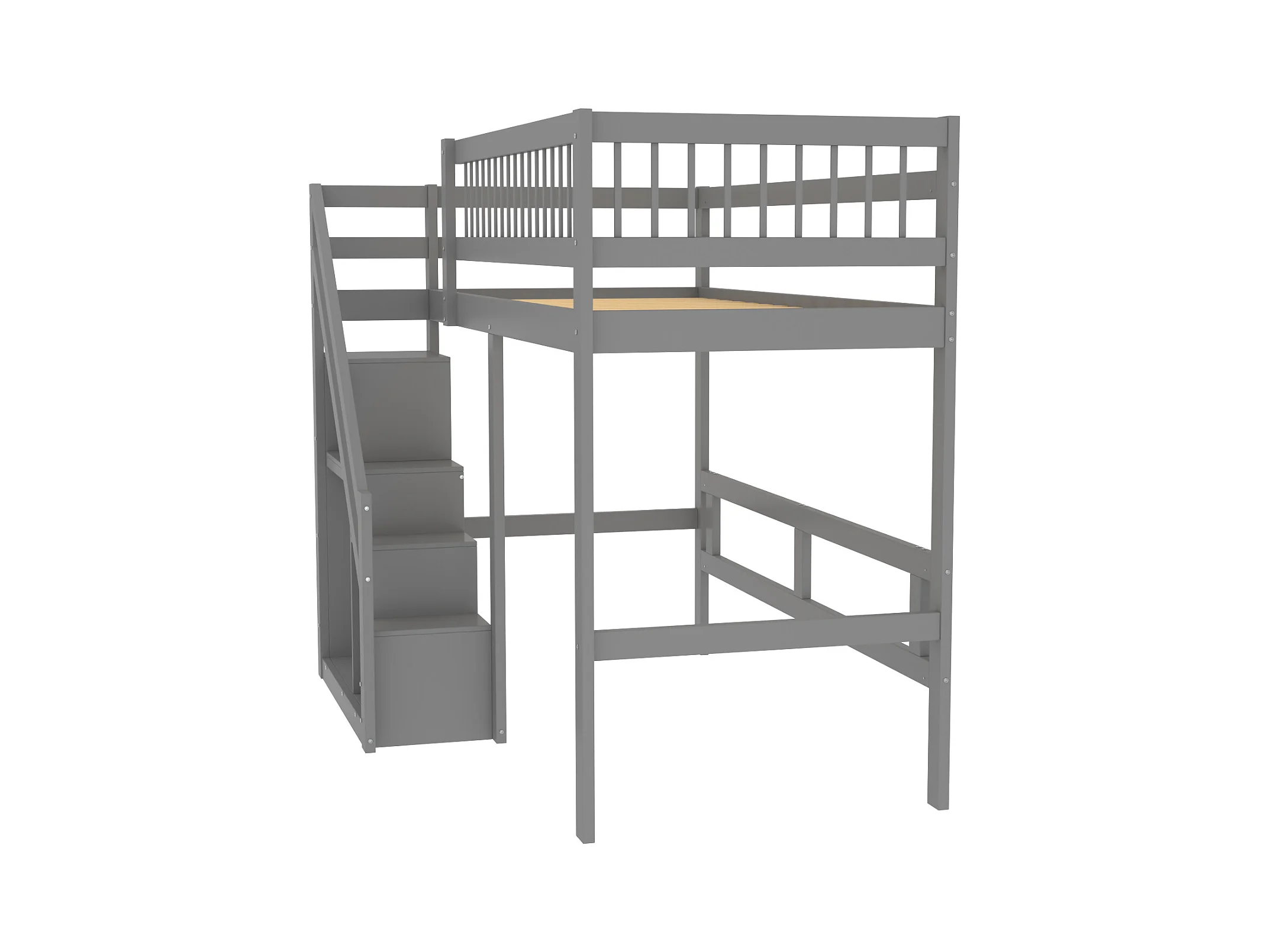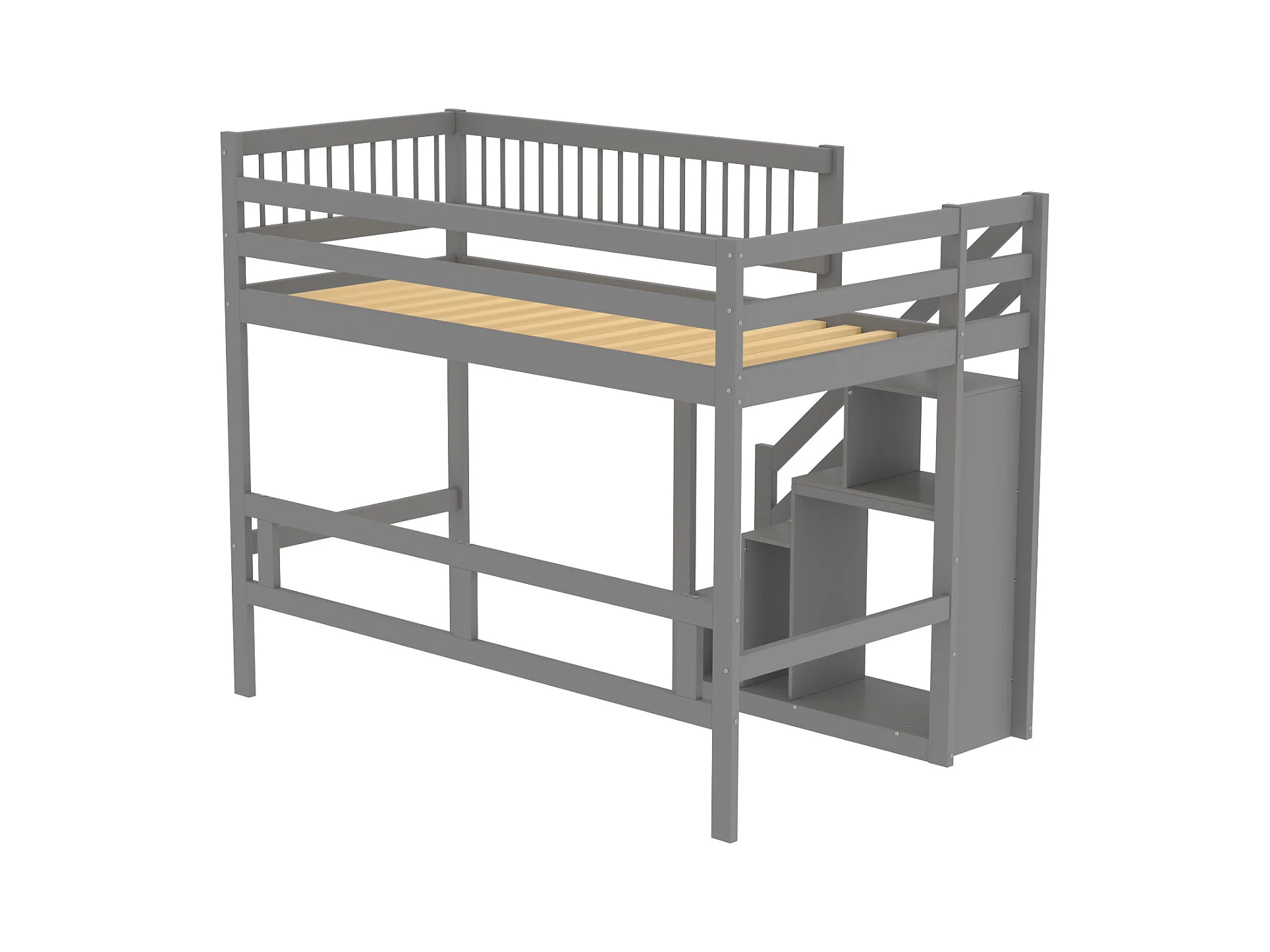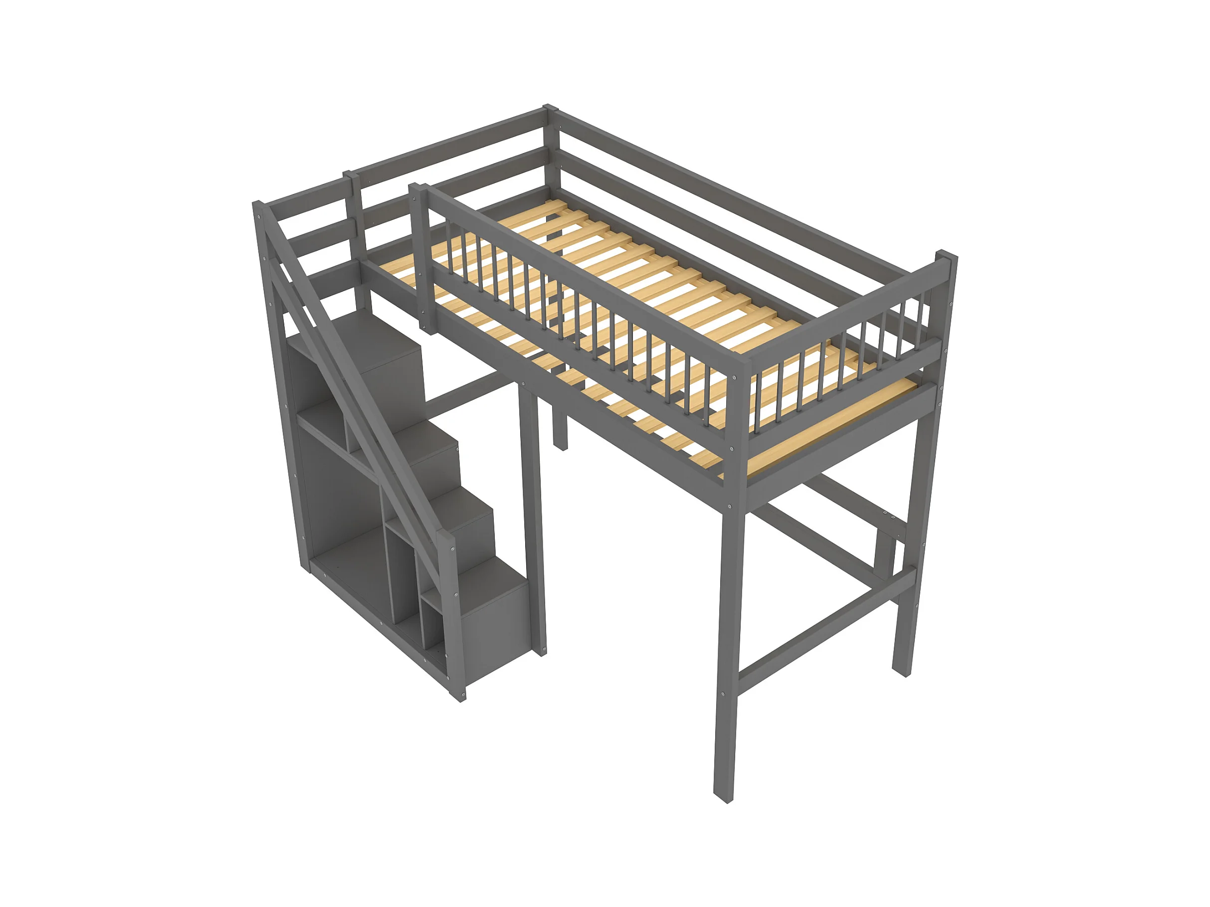 Hochbett aus Massivholz 90 x 200 cm mit Stauraum – Sicherheitstreppe – Grau
