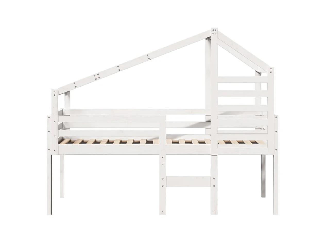 Hochbett mit Dach Weiß 90x200 cm Massivholz Kiefer