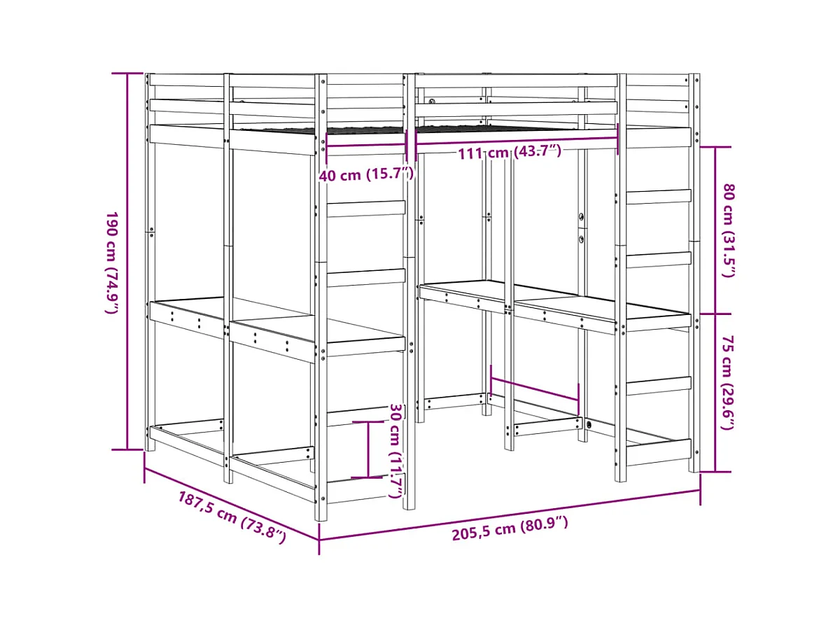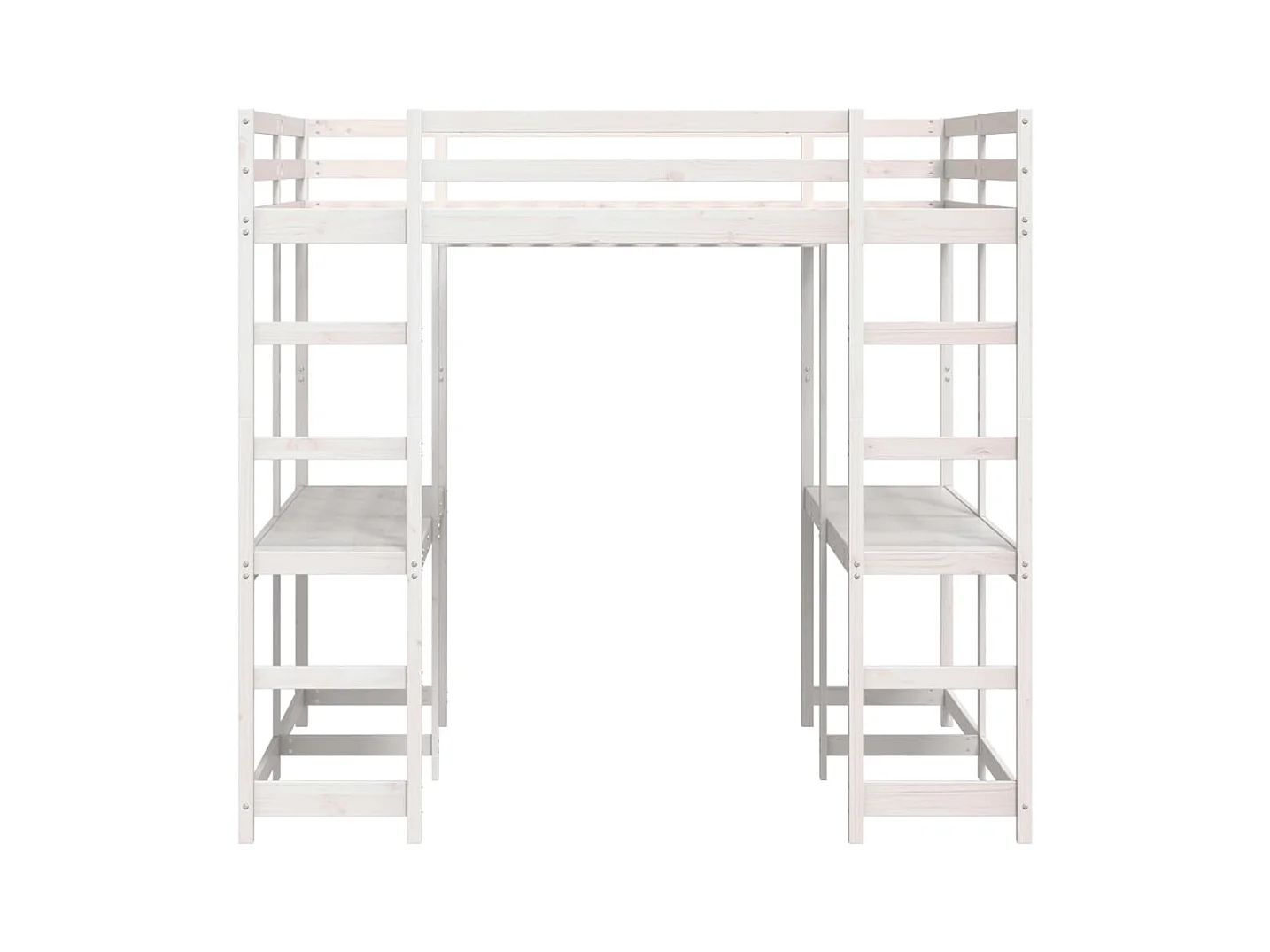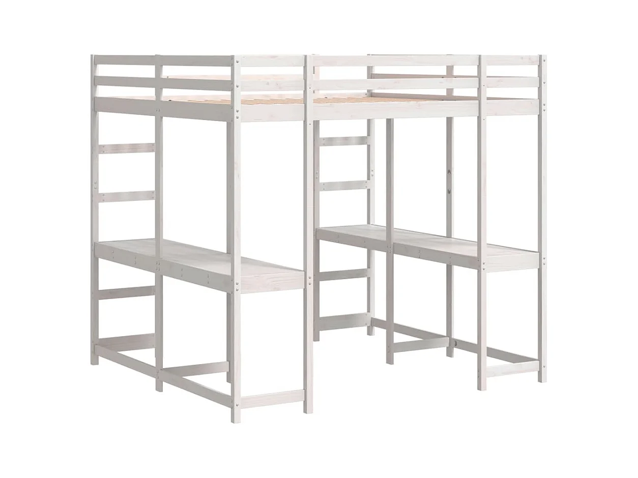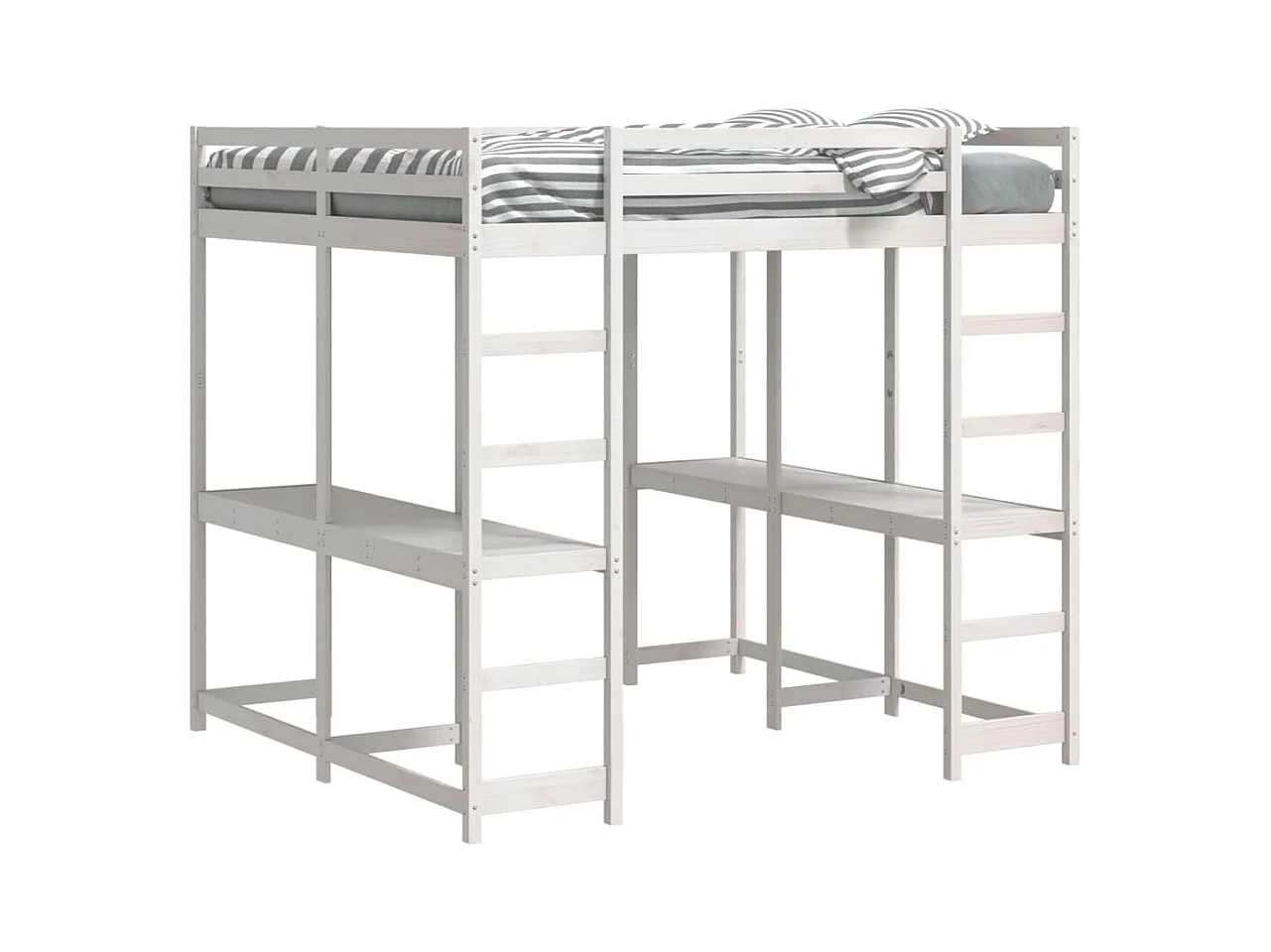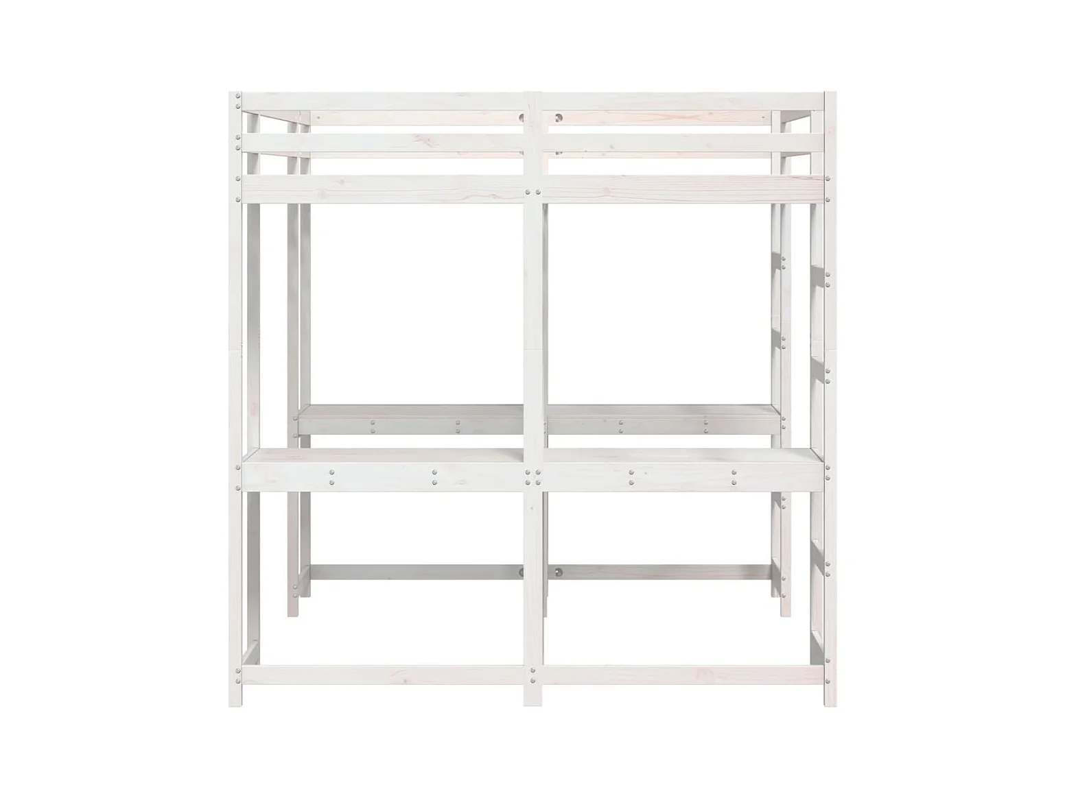 Hochbett mit Schreibtisch & Leiter Weiß 180x200 cm Kiefernholz