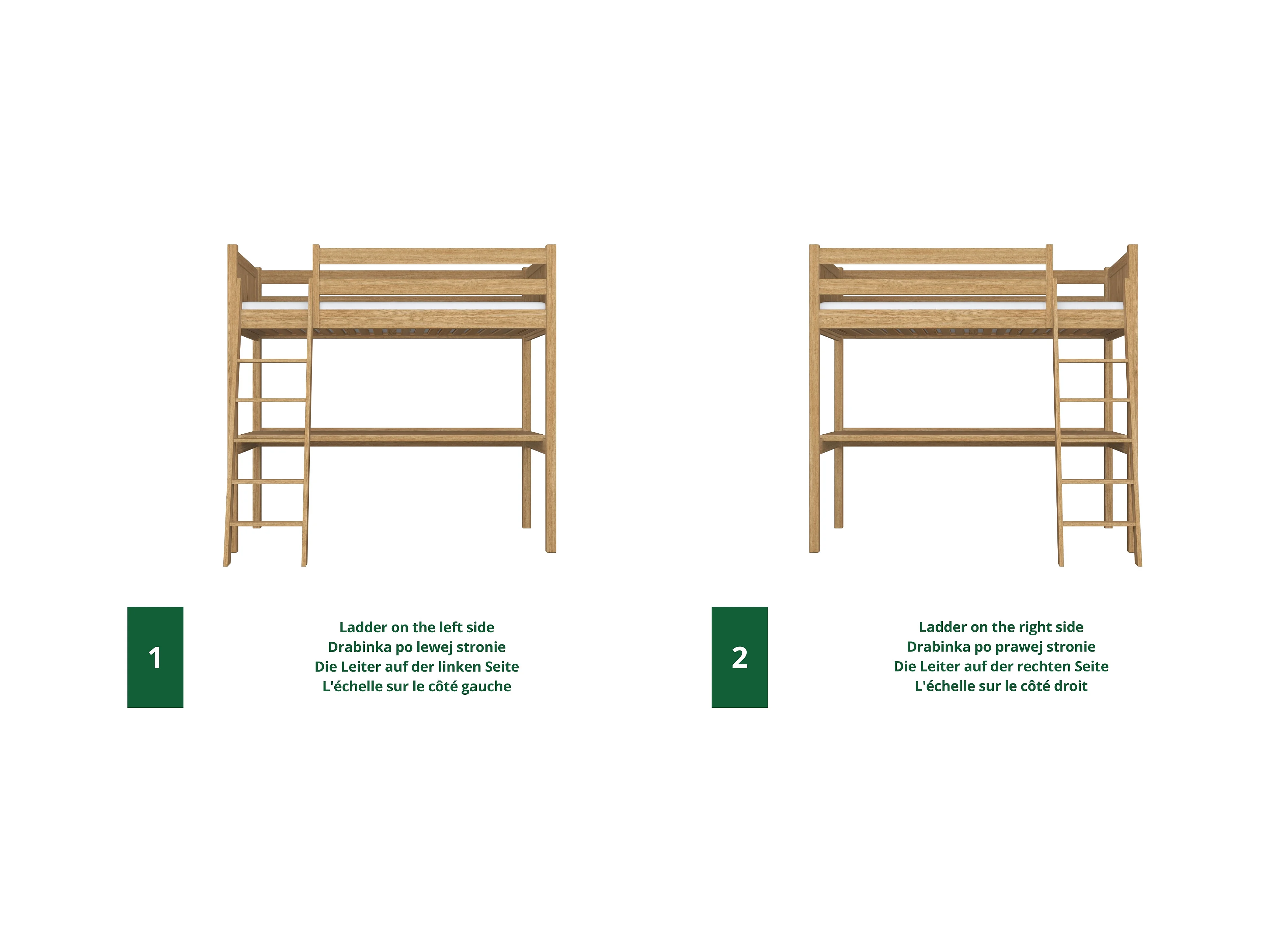 HOCHBETT N04 mit Schreibtisch Eiche Natur 100x180