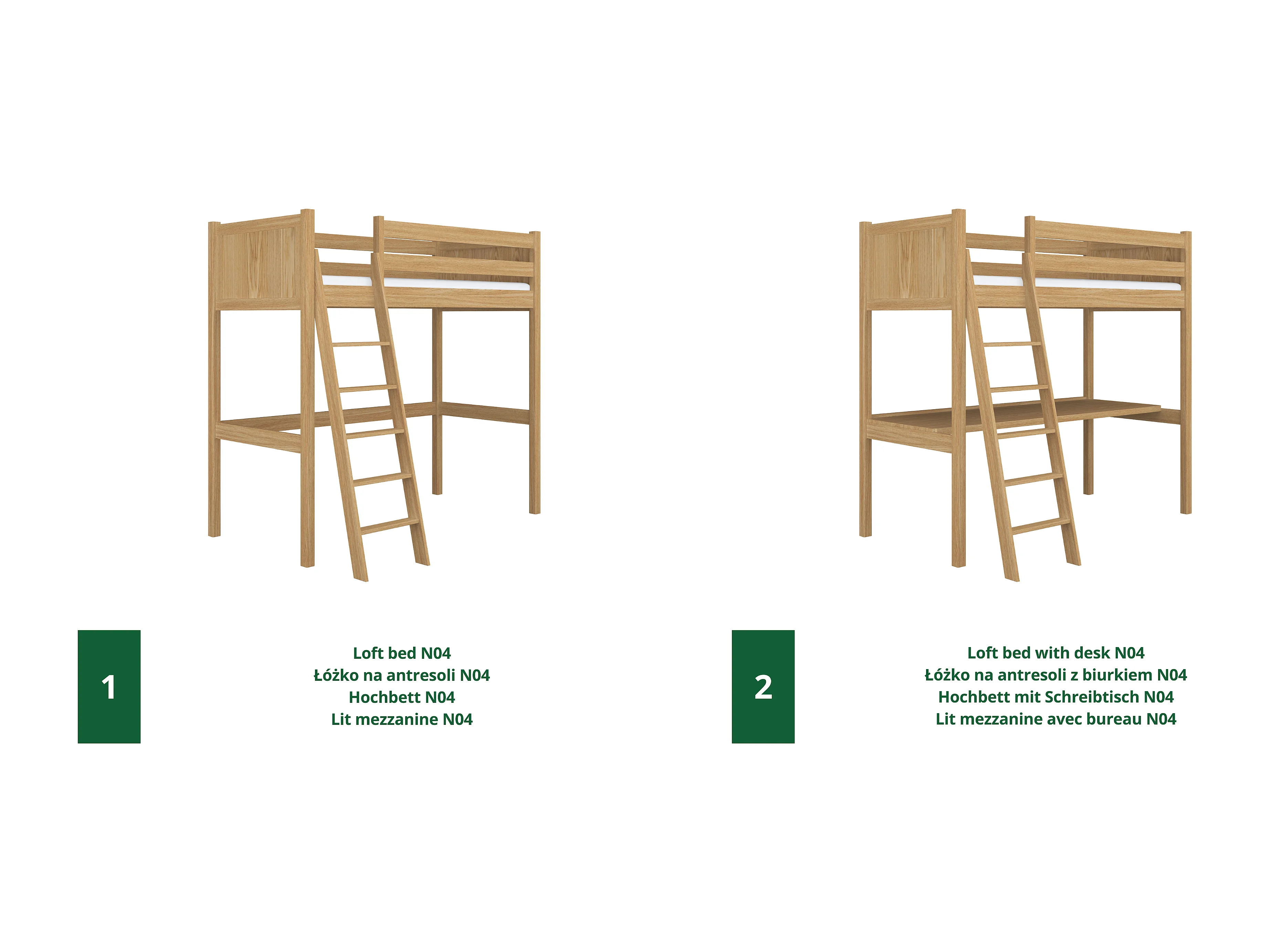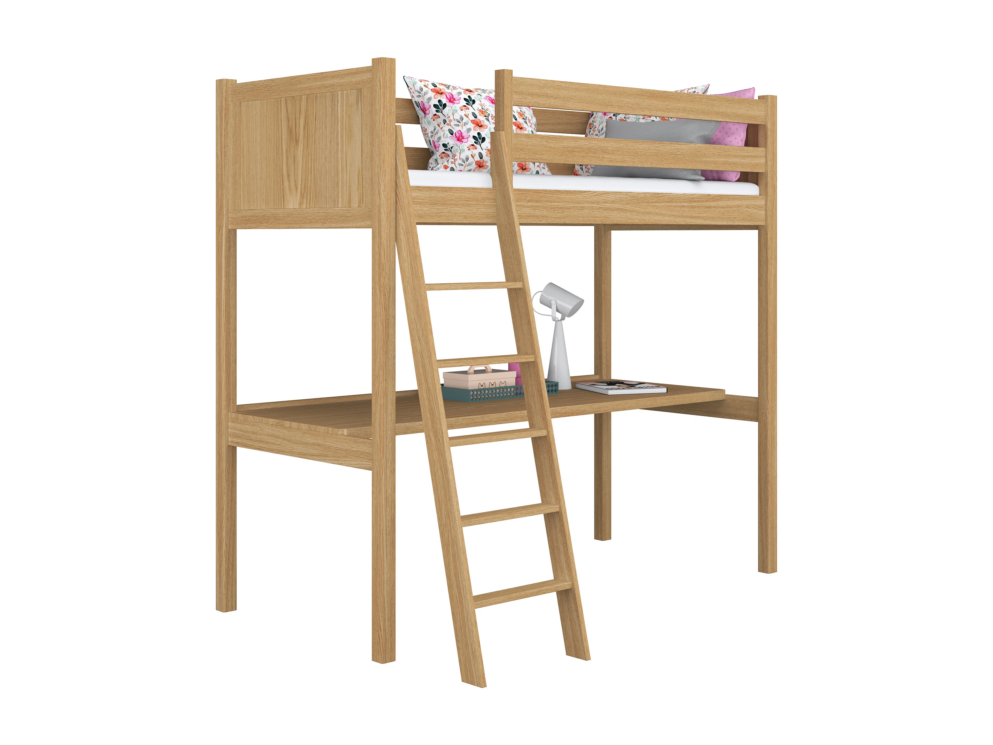 HOCHBETT N04 mit Schreibtisch Eiche Natur 100x190