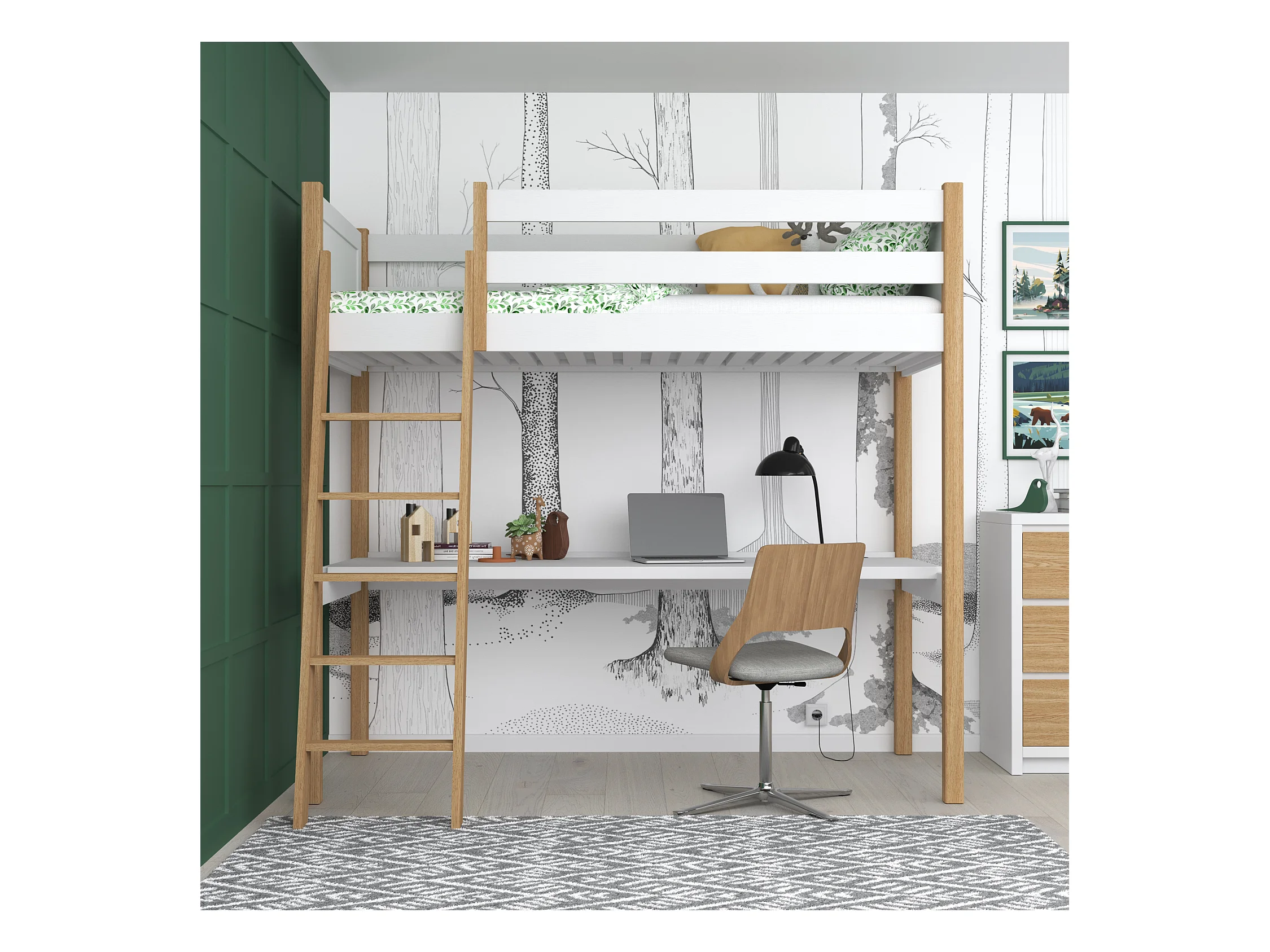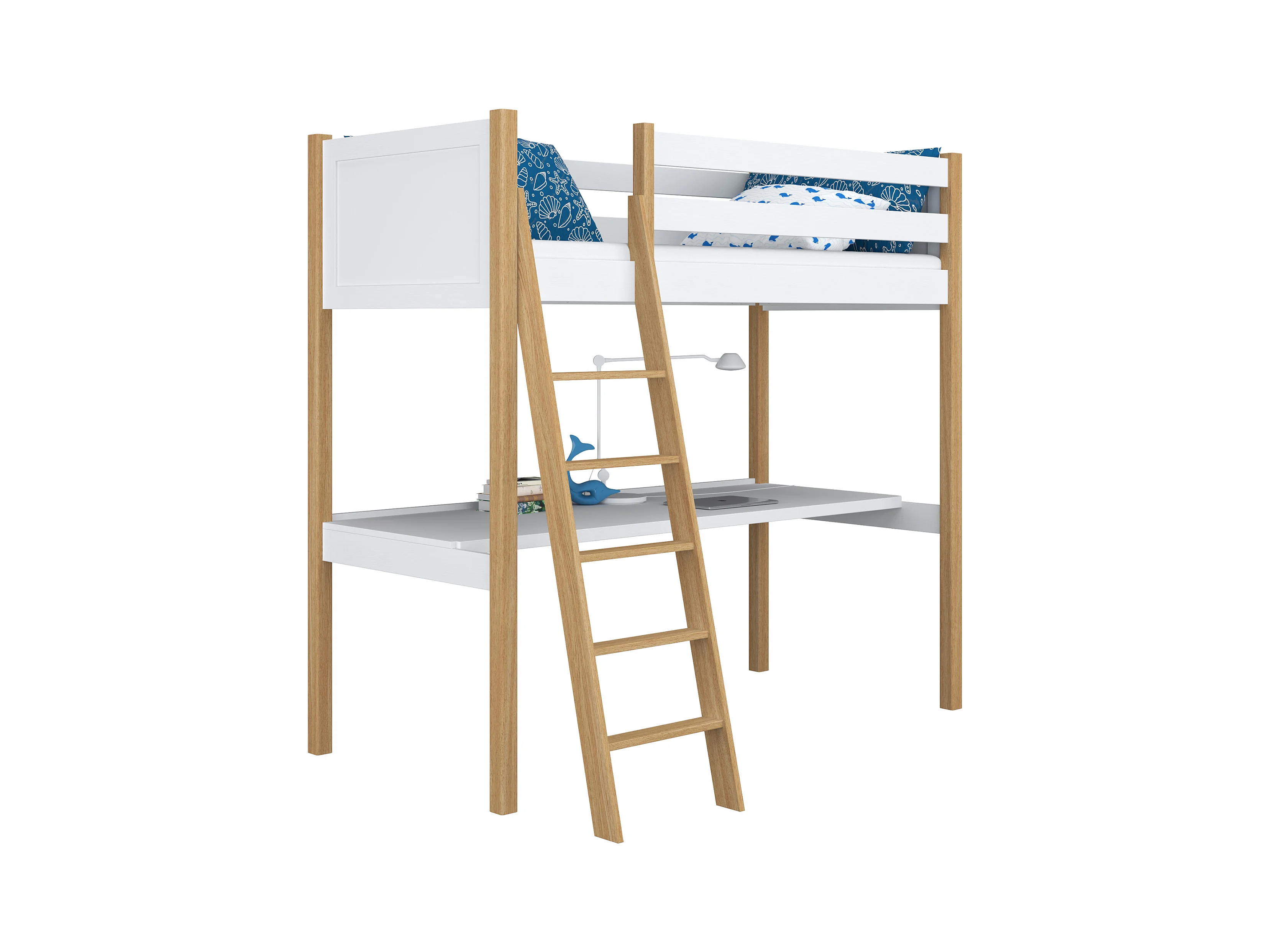 HOCHBETT N04 mit Schreibtisch Weiß / Eiche Natur 100x180