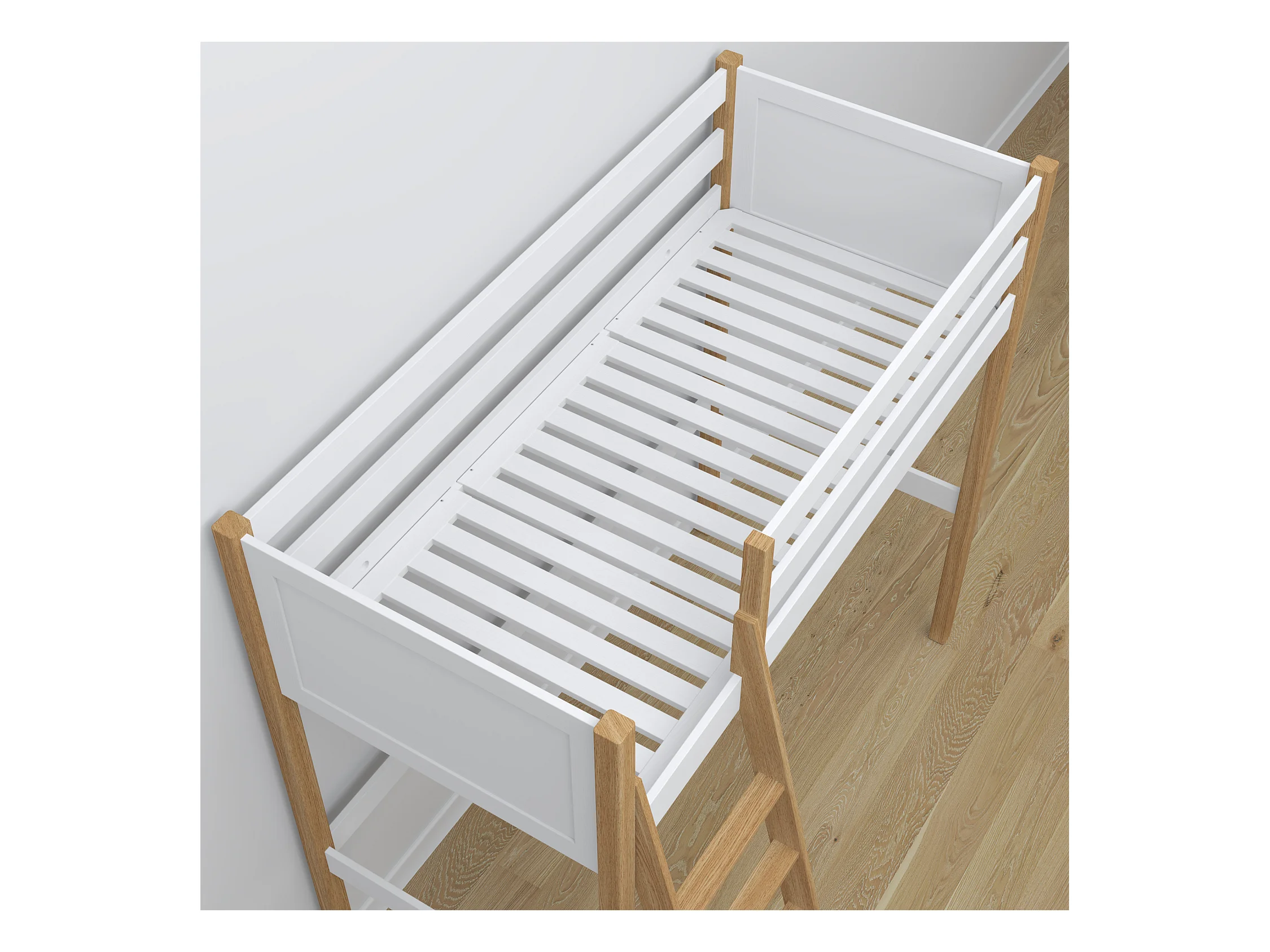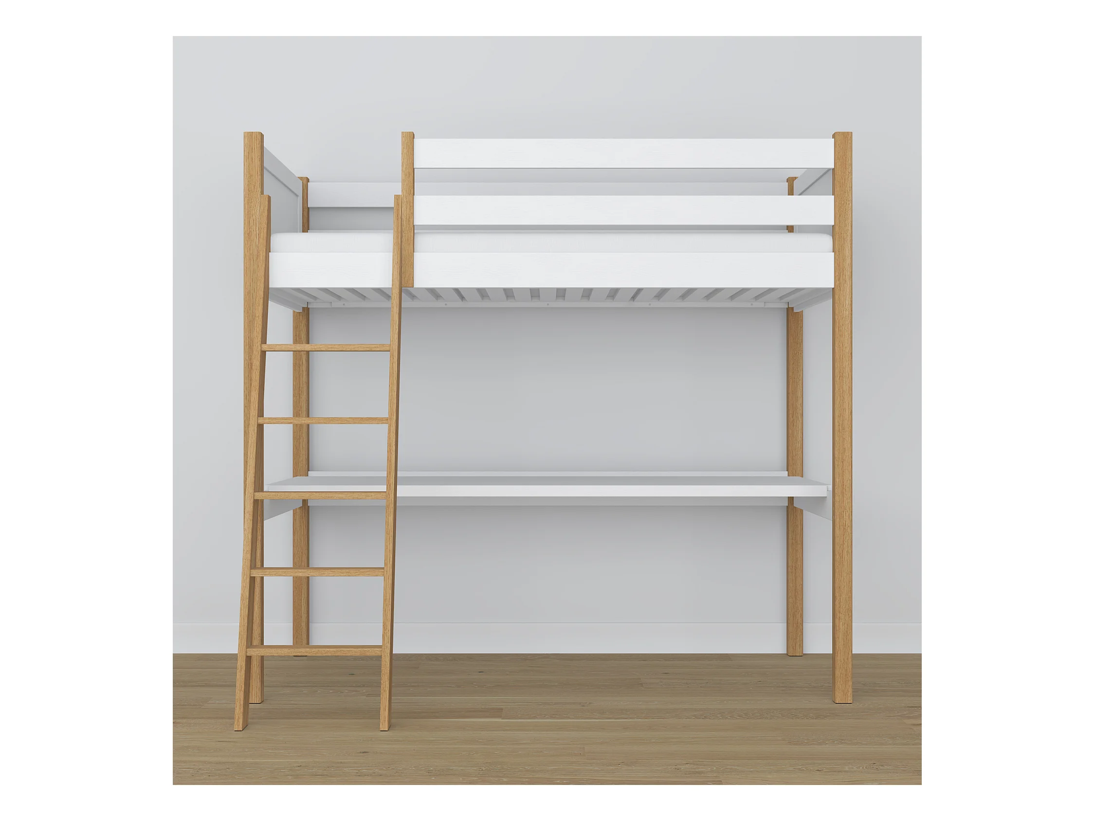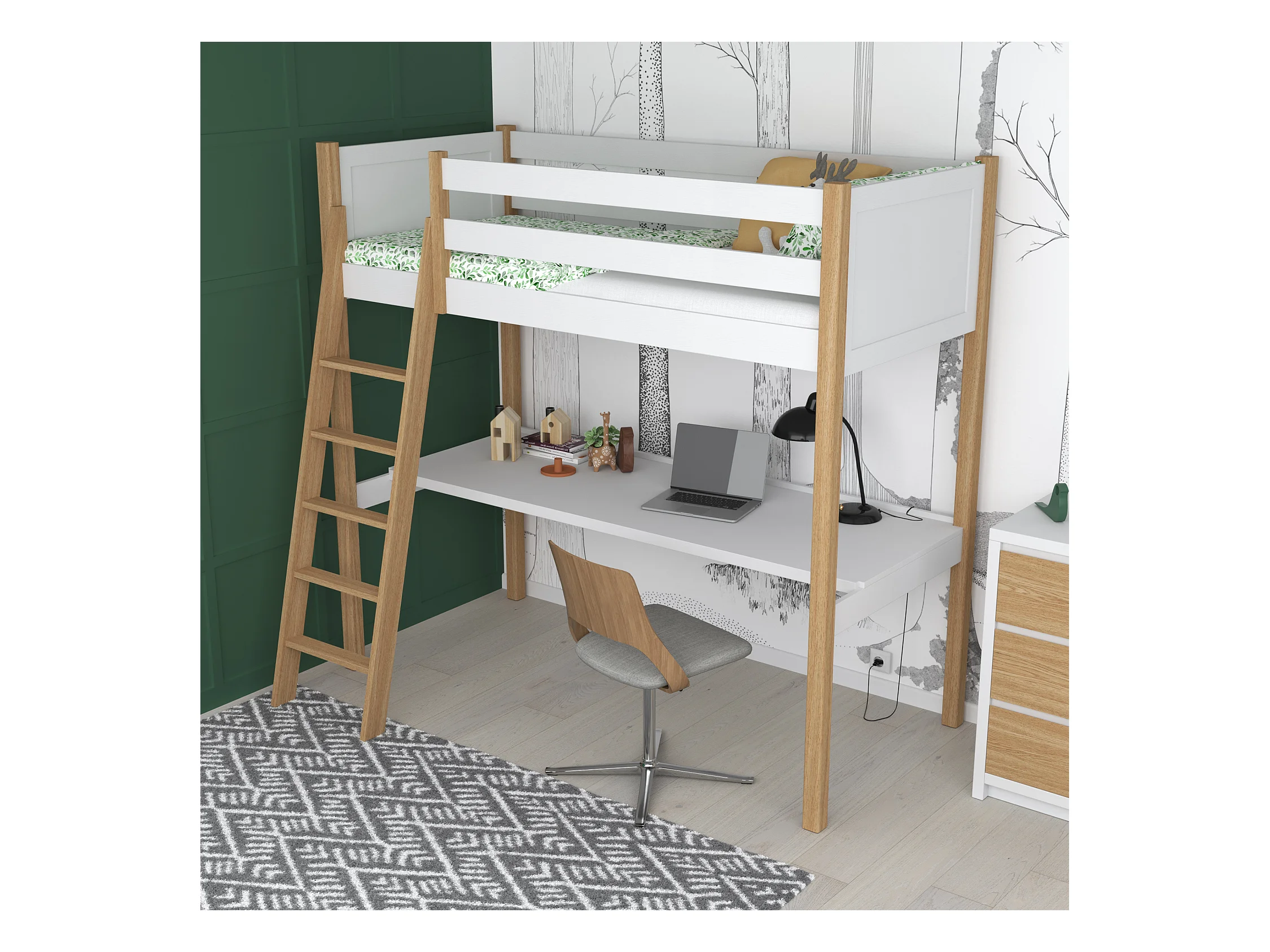HOCHBETT N04 mit Schreibtisch Weiß / Eiche Natur 80x200