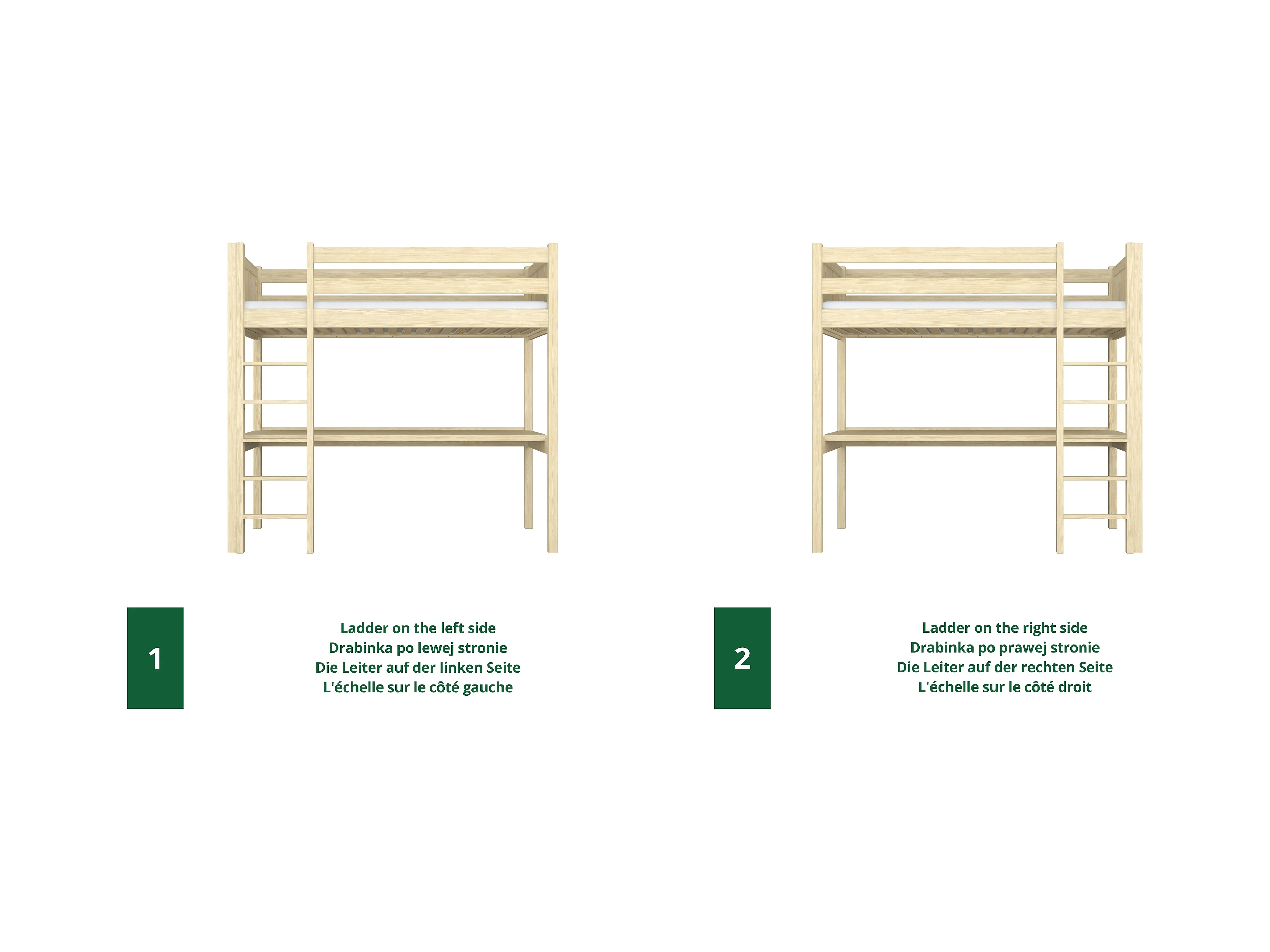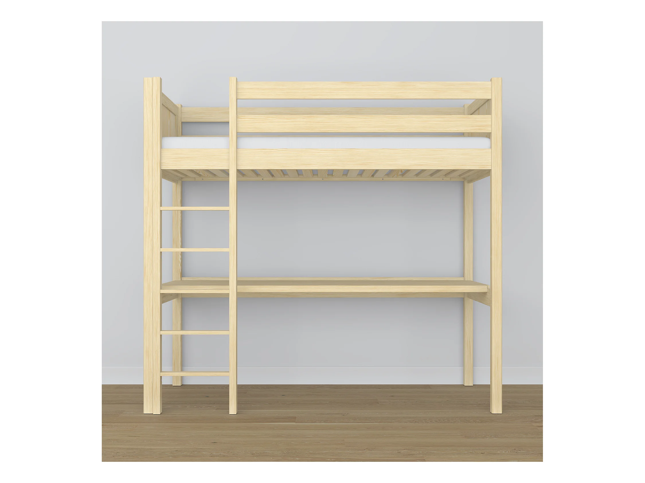 HOCHBETT N06 mit Schreibtisch Klare Kiefer 100x180