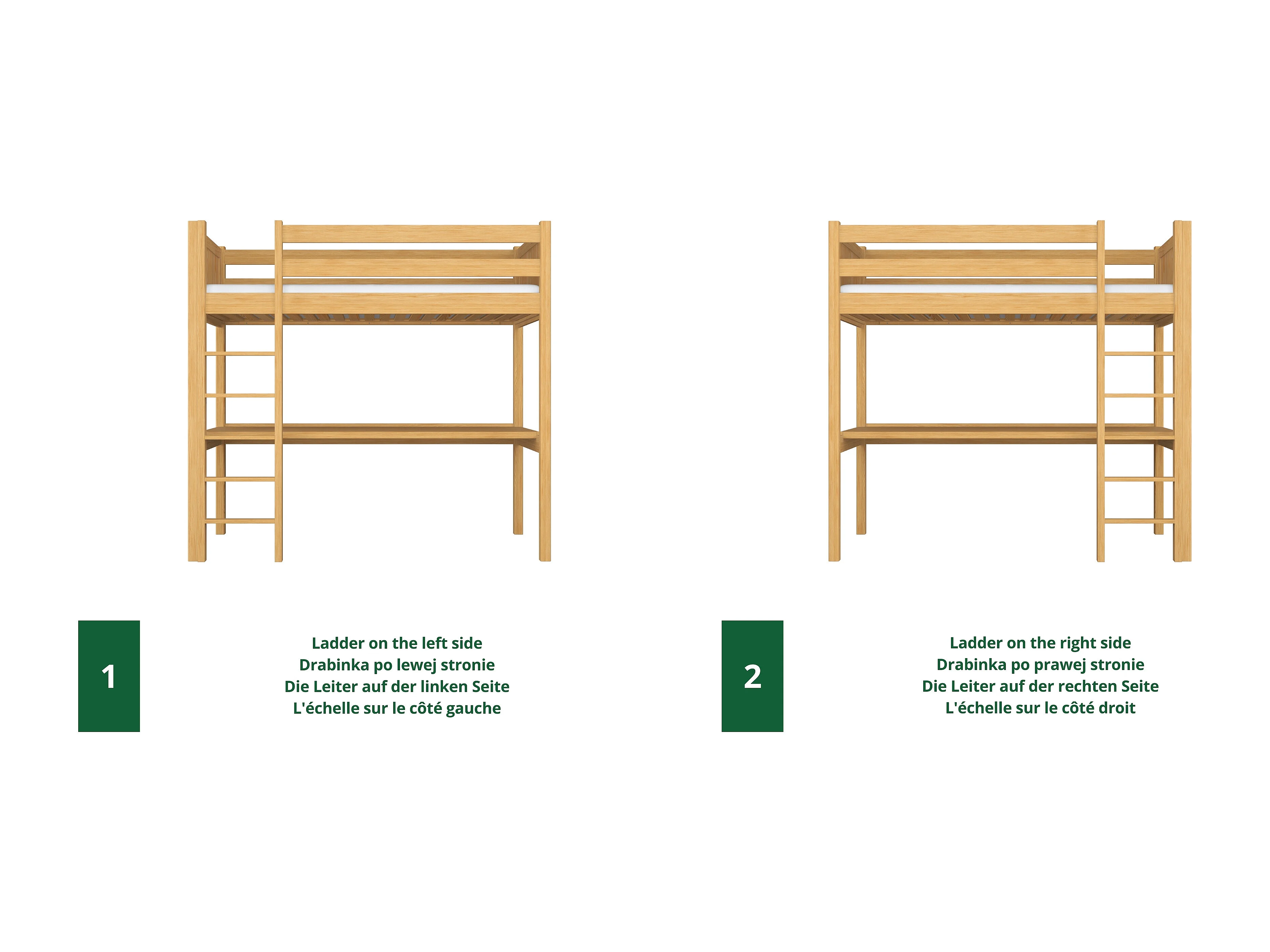 HOCHBETT N06 mit Schreibtisch Naturkiefer 100x180