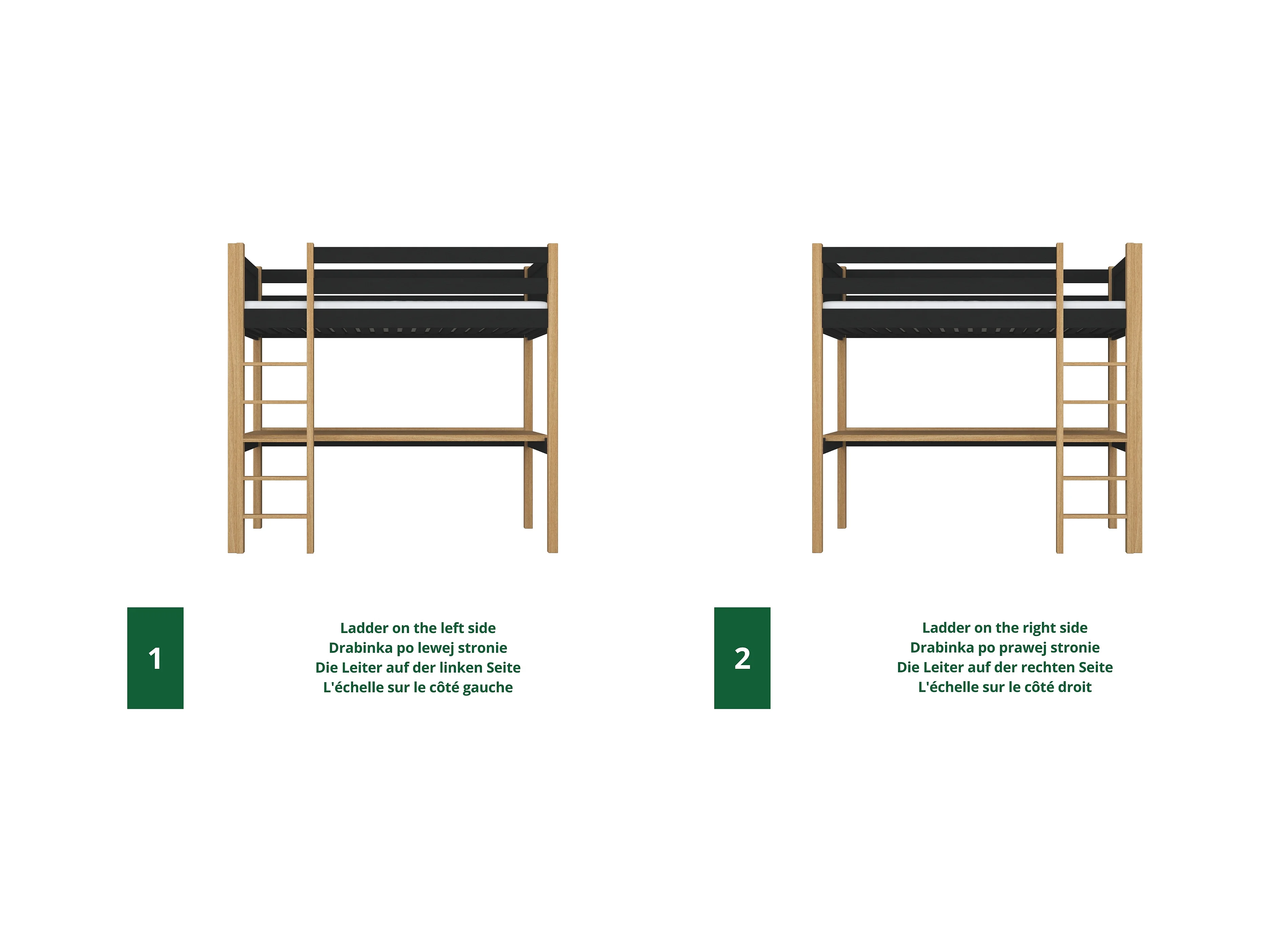 HOCHBETT N06 mit Schreibtisch Schwarz / Eiche Natur 120x200