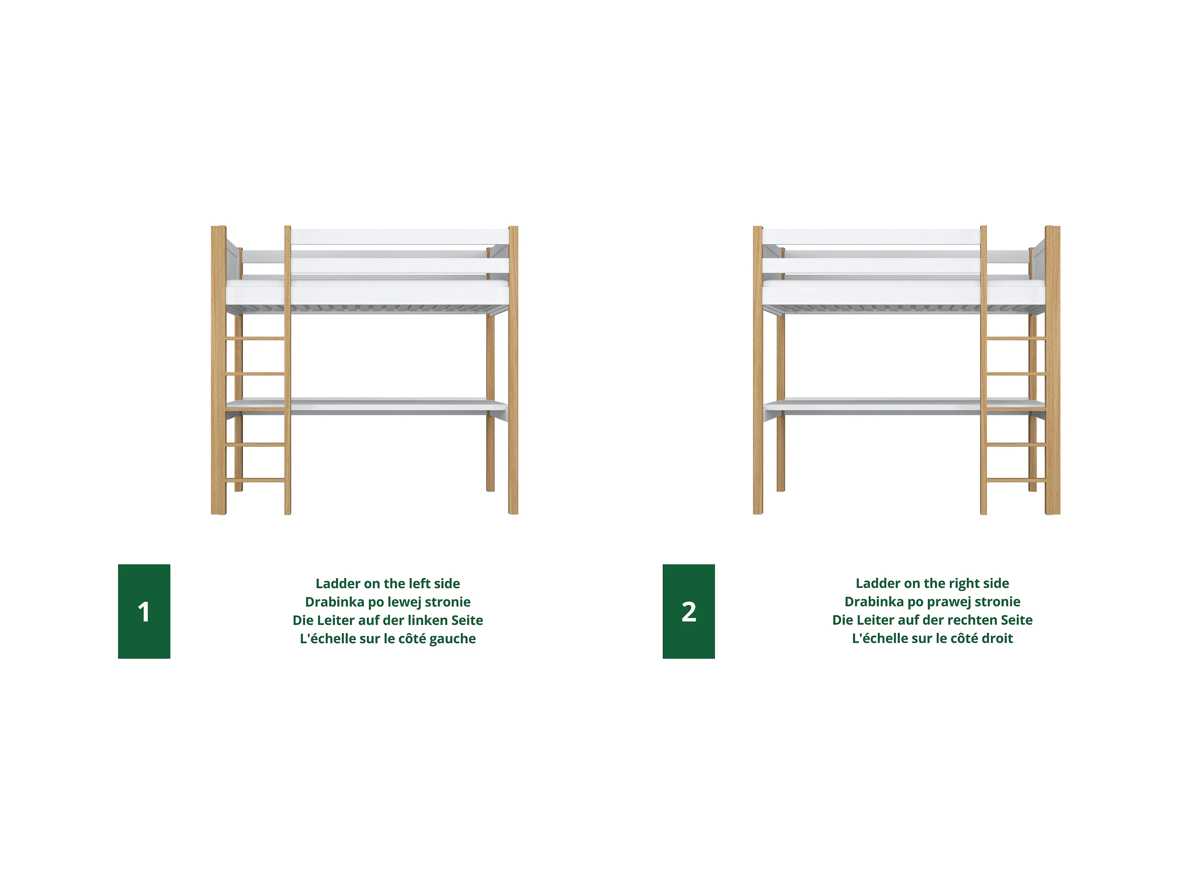 HOCHBETT N06 mit Schreibtisch Weiß / Eiche Natur 100x180
