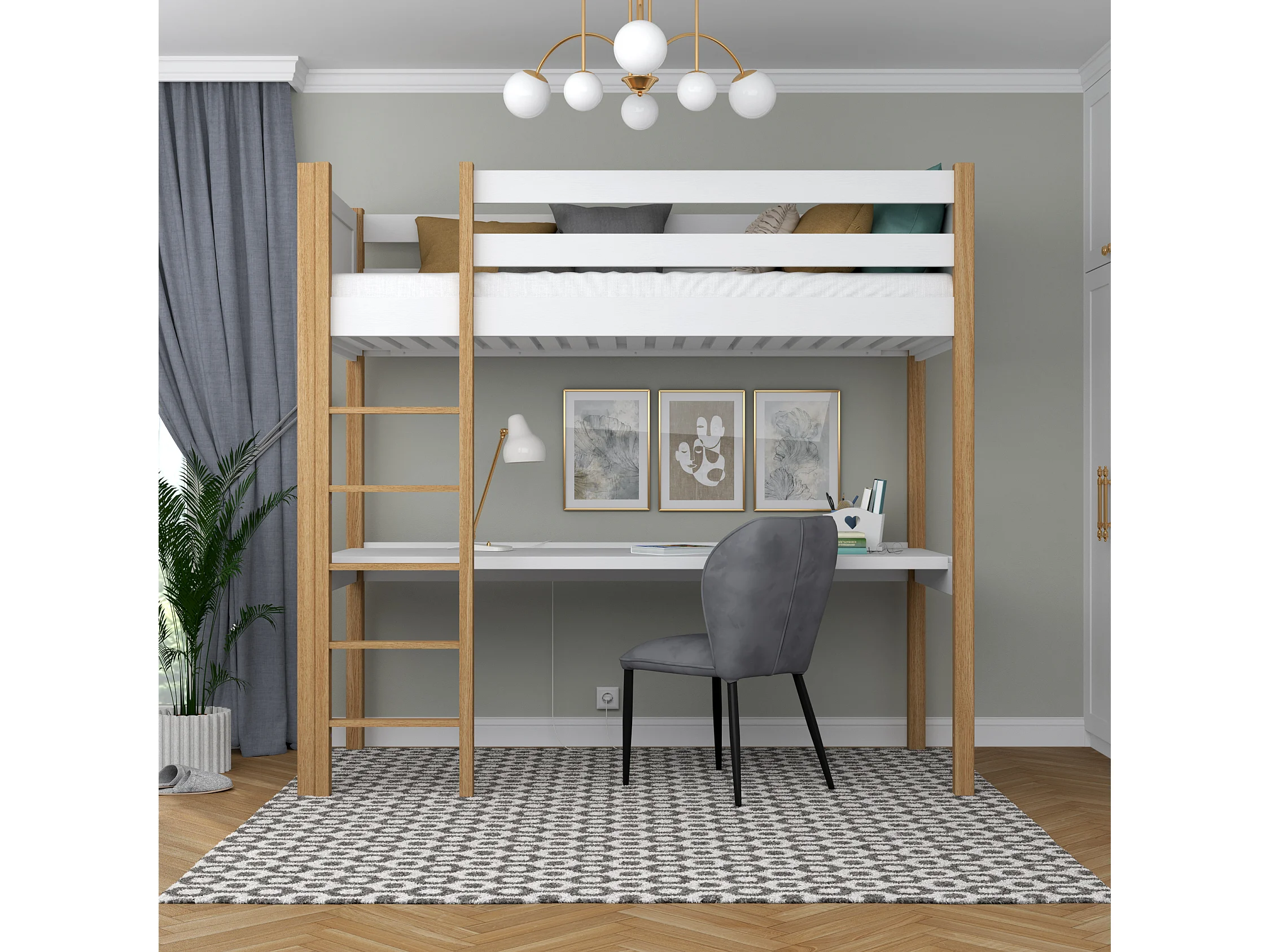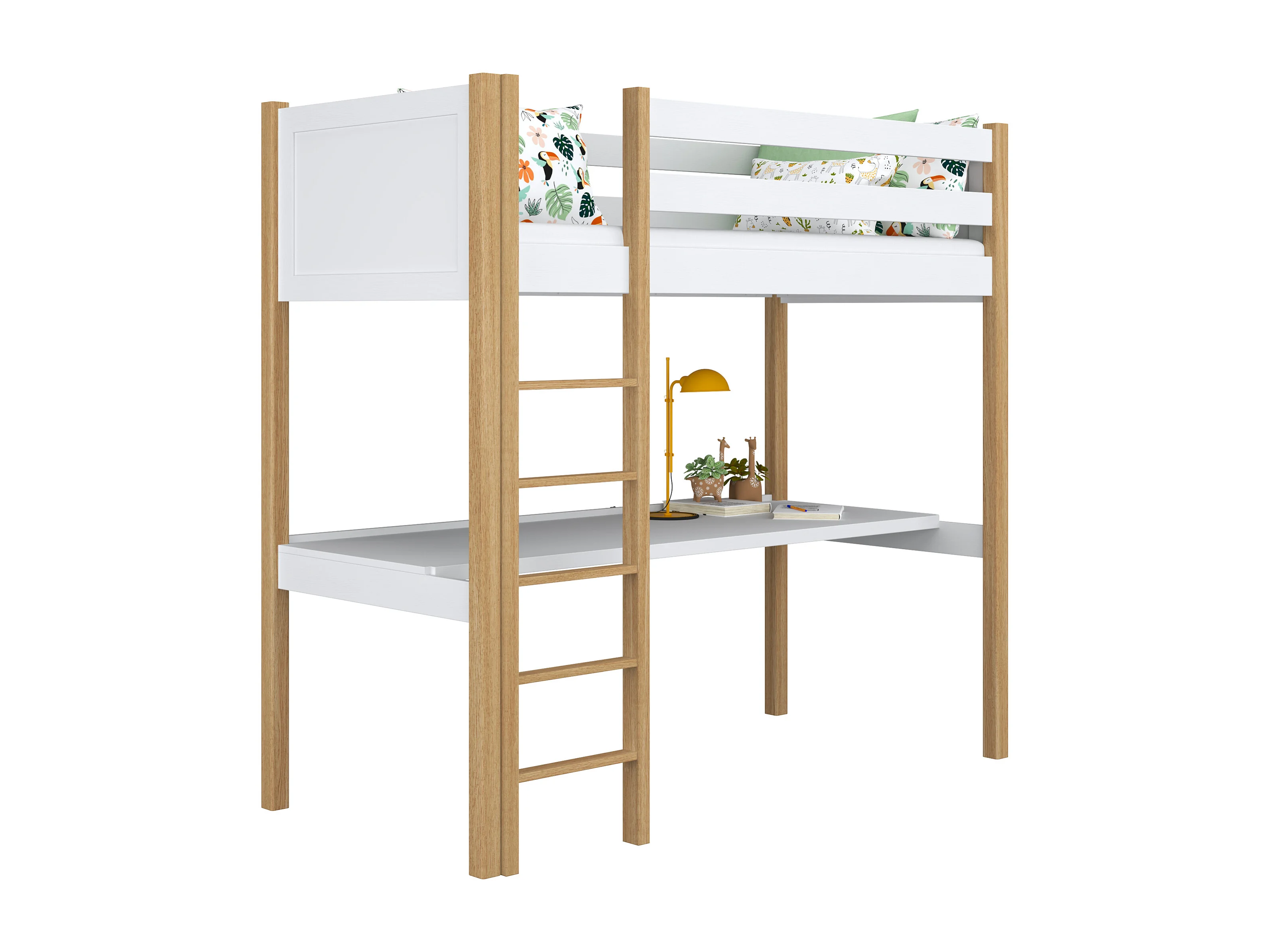 HOCHBETT N06 mit Schreibtisch Weiß / Eiche Natur 100x190