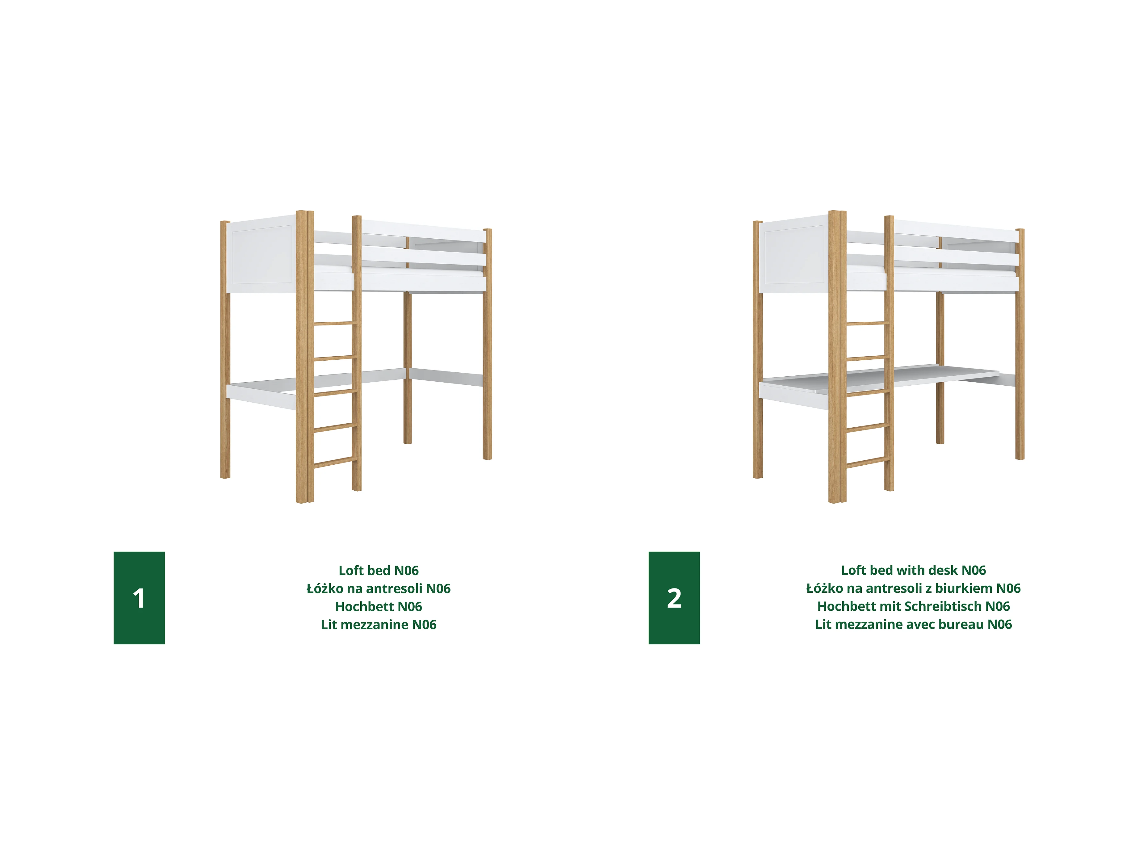HOCHBETT N06 mit Schreibtisch Weiß / Eiche Natur 80x180