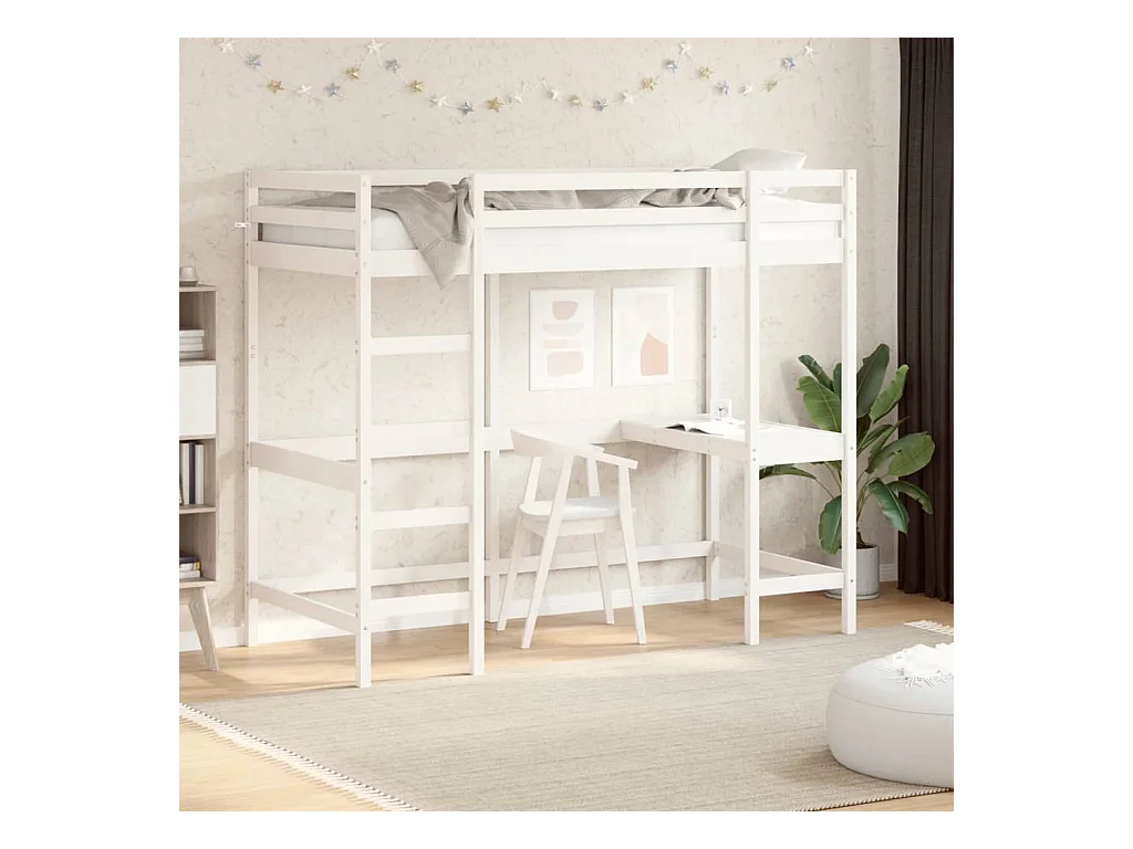 Hochbett mit Schreibtisch Weiß 90x190 cm Massivholz Kiefer