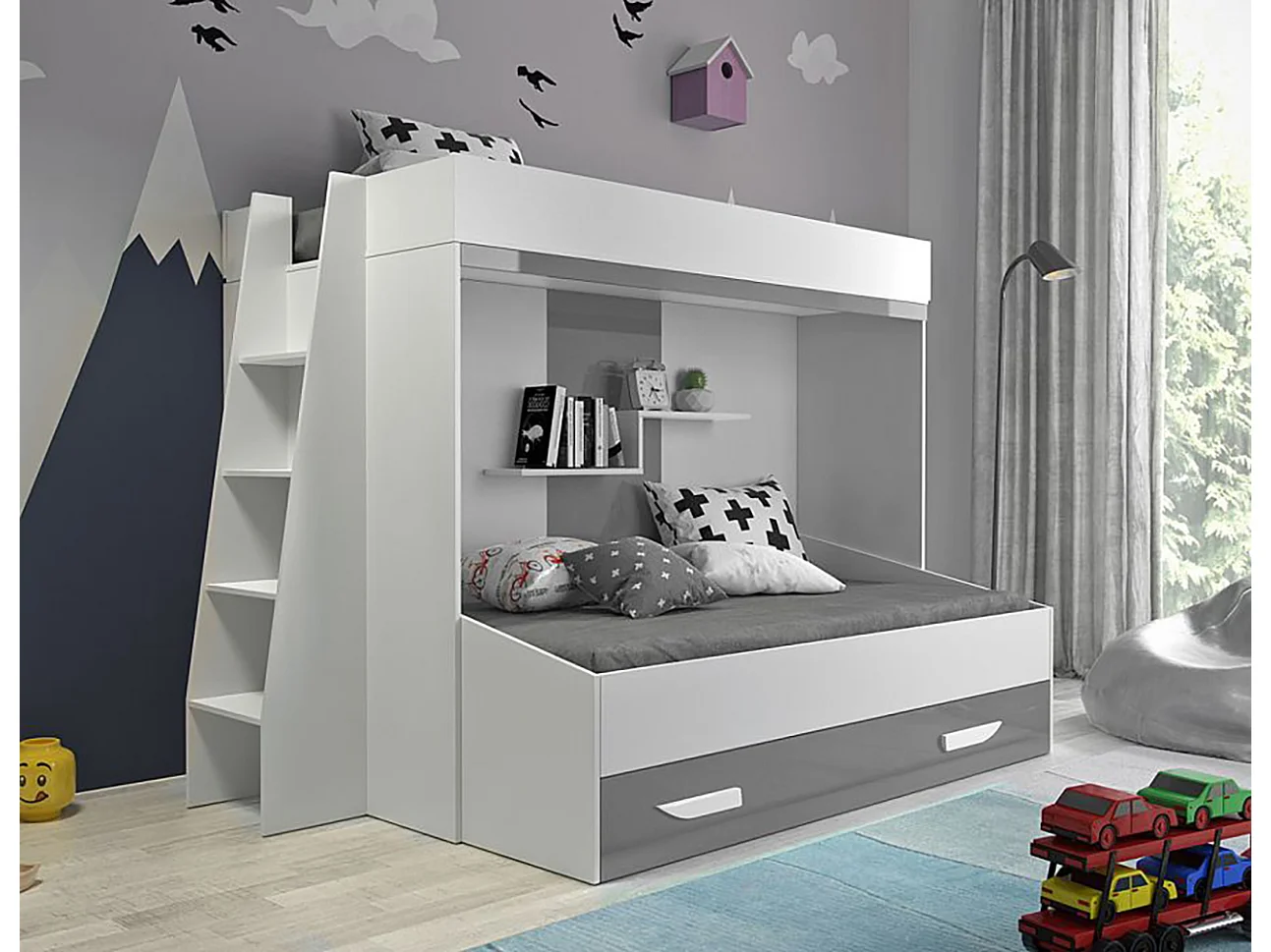 HOCHBETT Party weiß / grau Hochglanz - Griffe weiß / grau 230 / 135 / 165cm