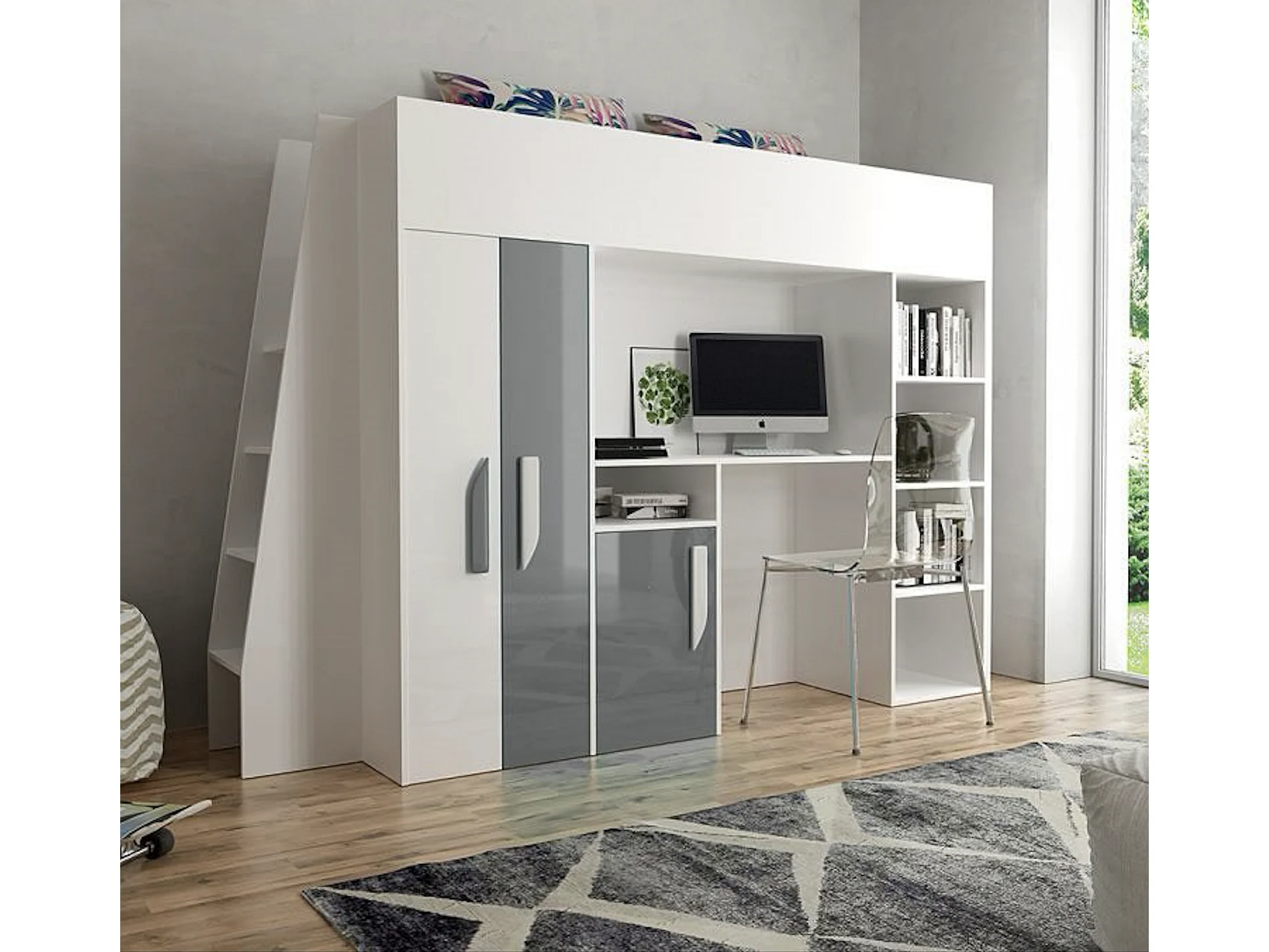 HOCHBETT Party weiß / grau Hochglanz - Griffe weiß / grau 95 / 230 / 165cm