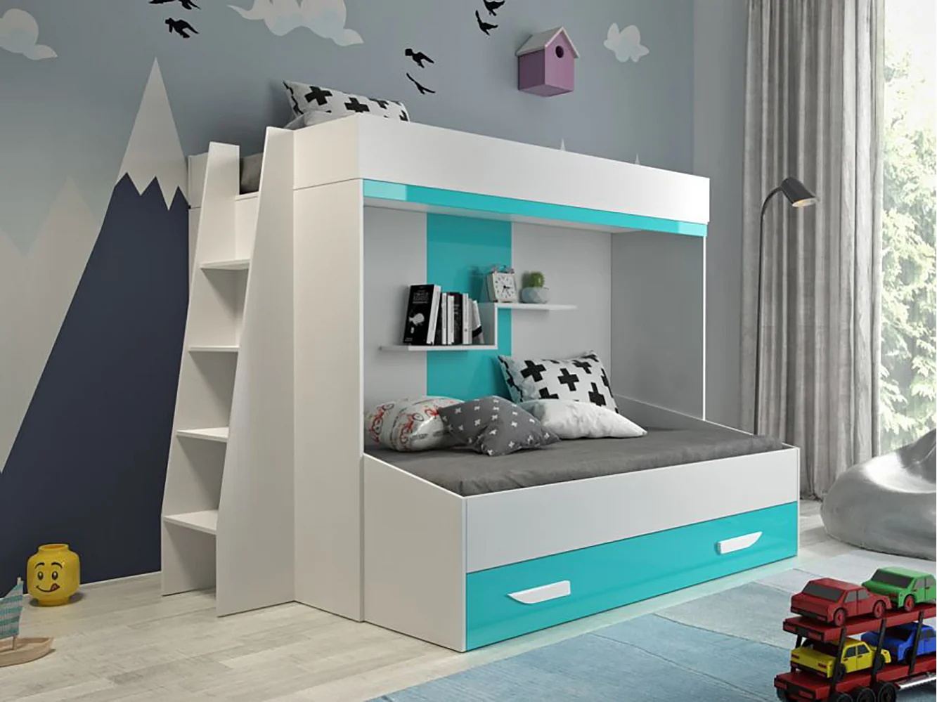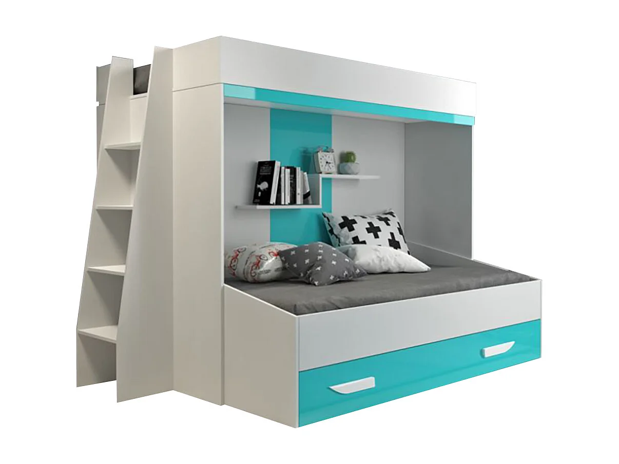 HOCHBETT Party weiß / türkis Hochglanz - Griffe weiß / türkis 230 / 135 / 165cm