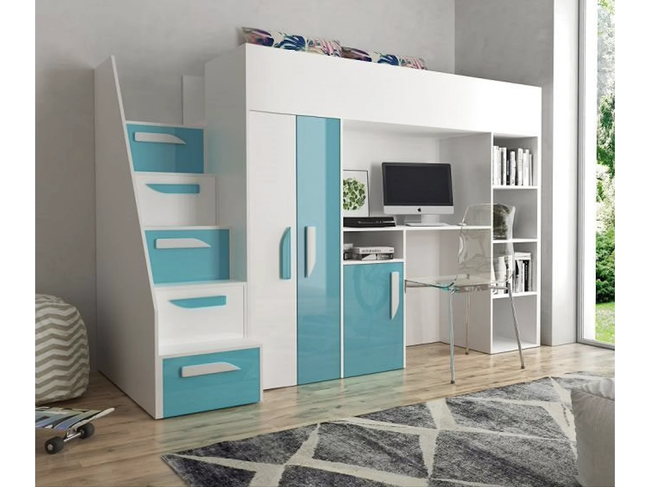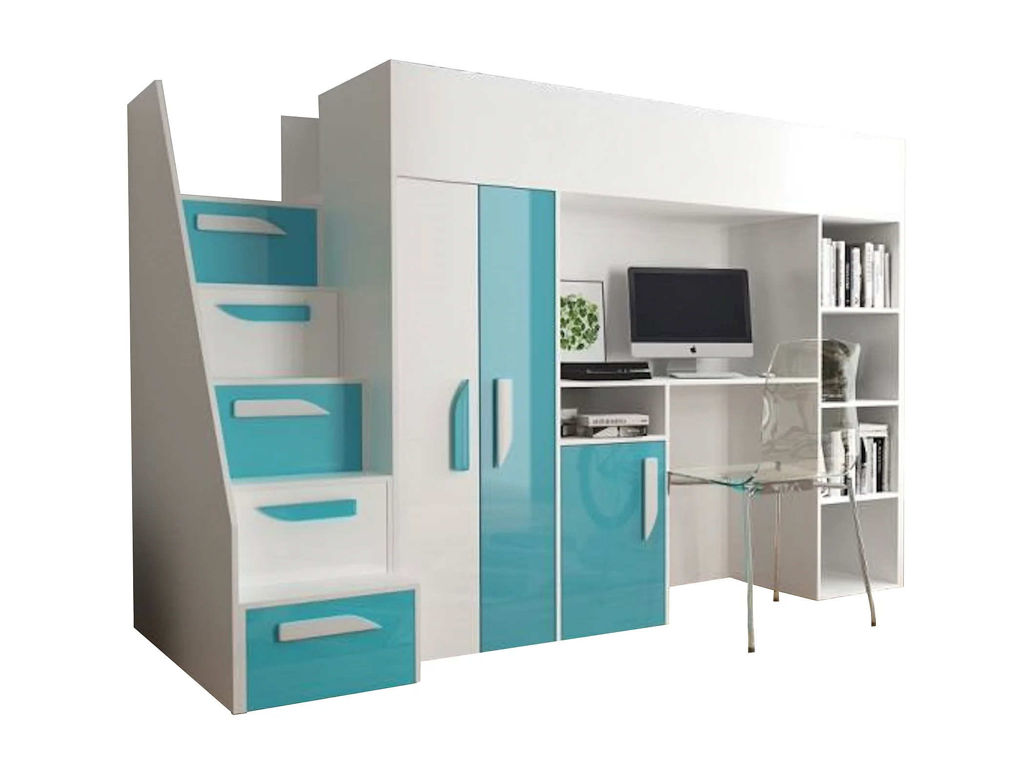 HOCHBETT Party weiß / türkis Hochglanz - Griffe weiß / türkis 120 / 247 / 165cm