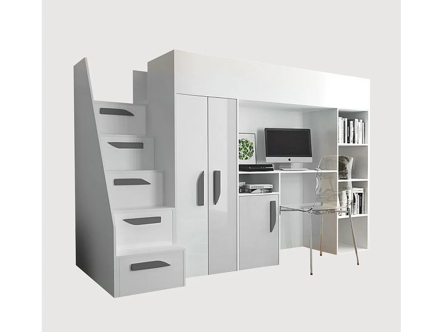 HOCHBETT Party weiß / weiß Hochglanz - Griffe grau 120 / 247 / 165cm
