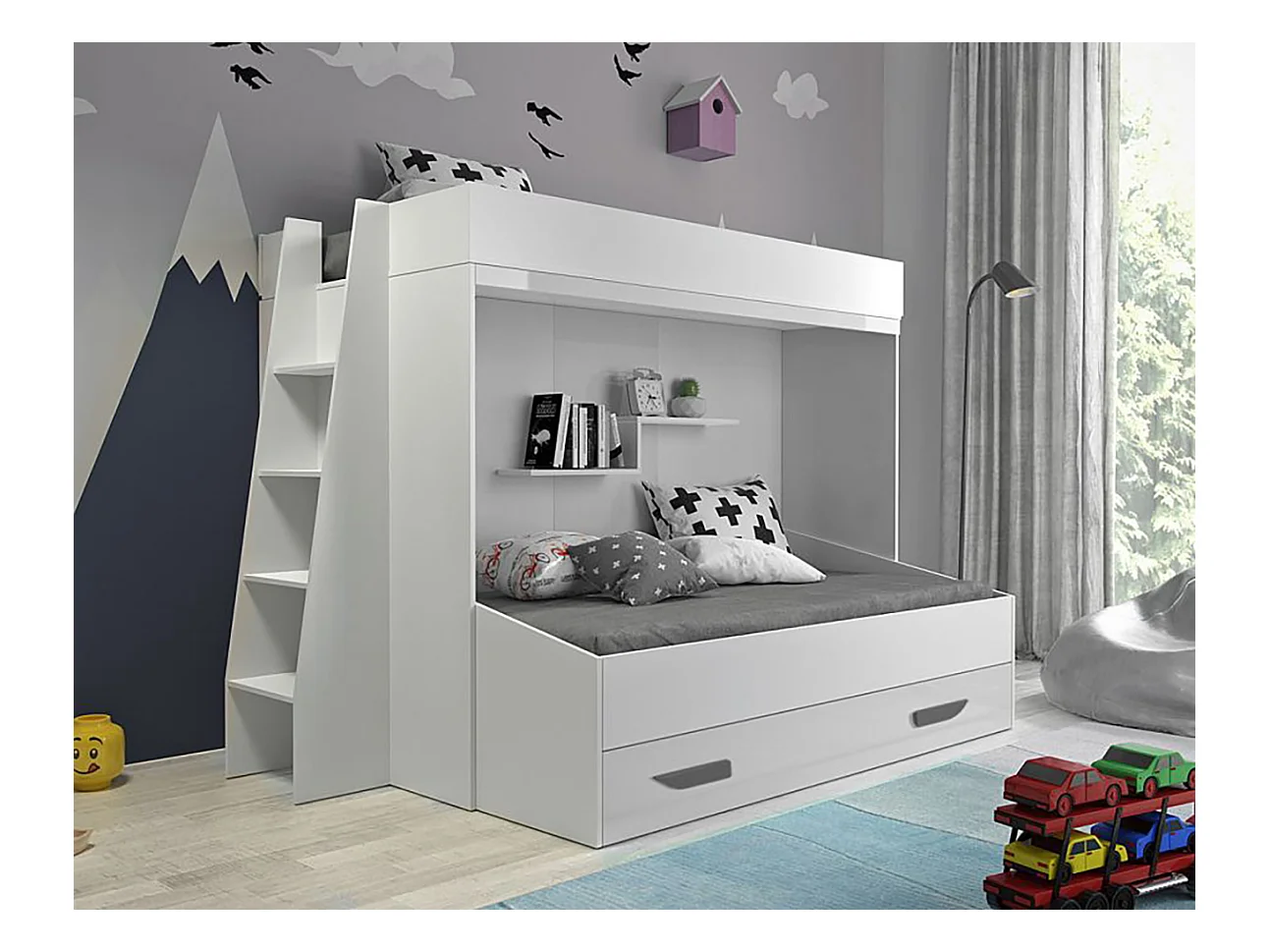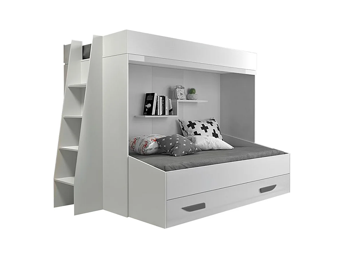 HOCHBETT Party weiß / weiß Hochglanz - Griffe grau 247 / 135 / 165cm