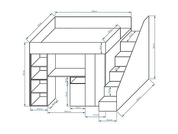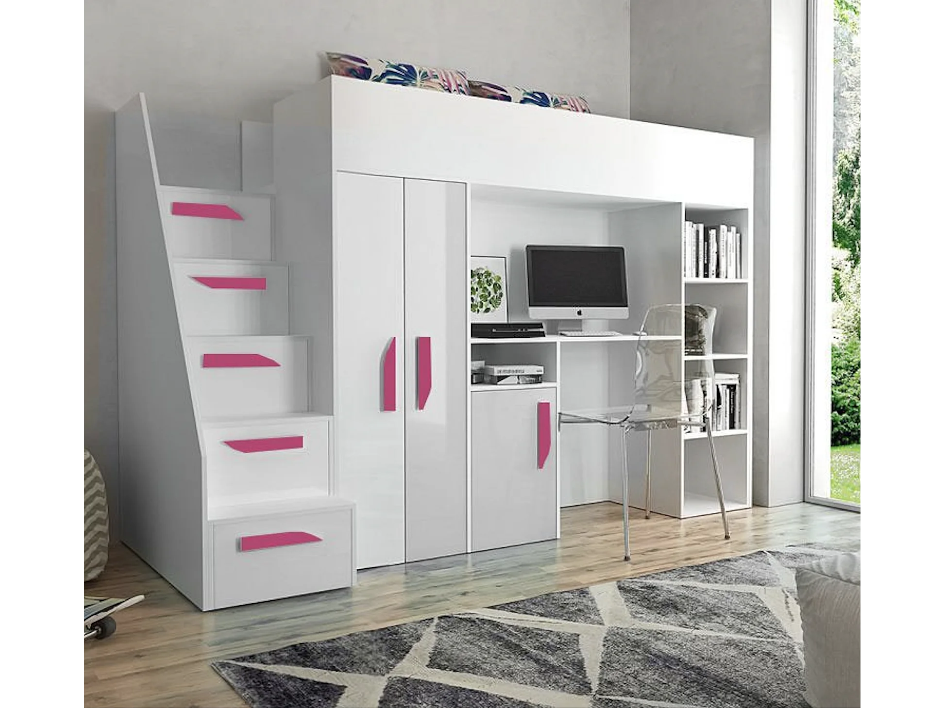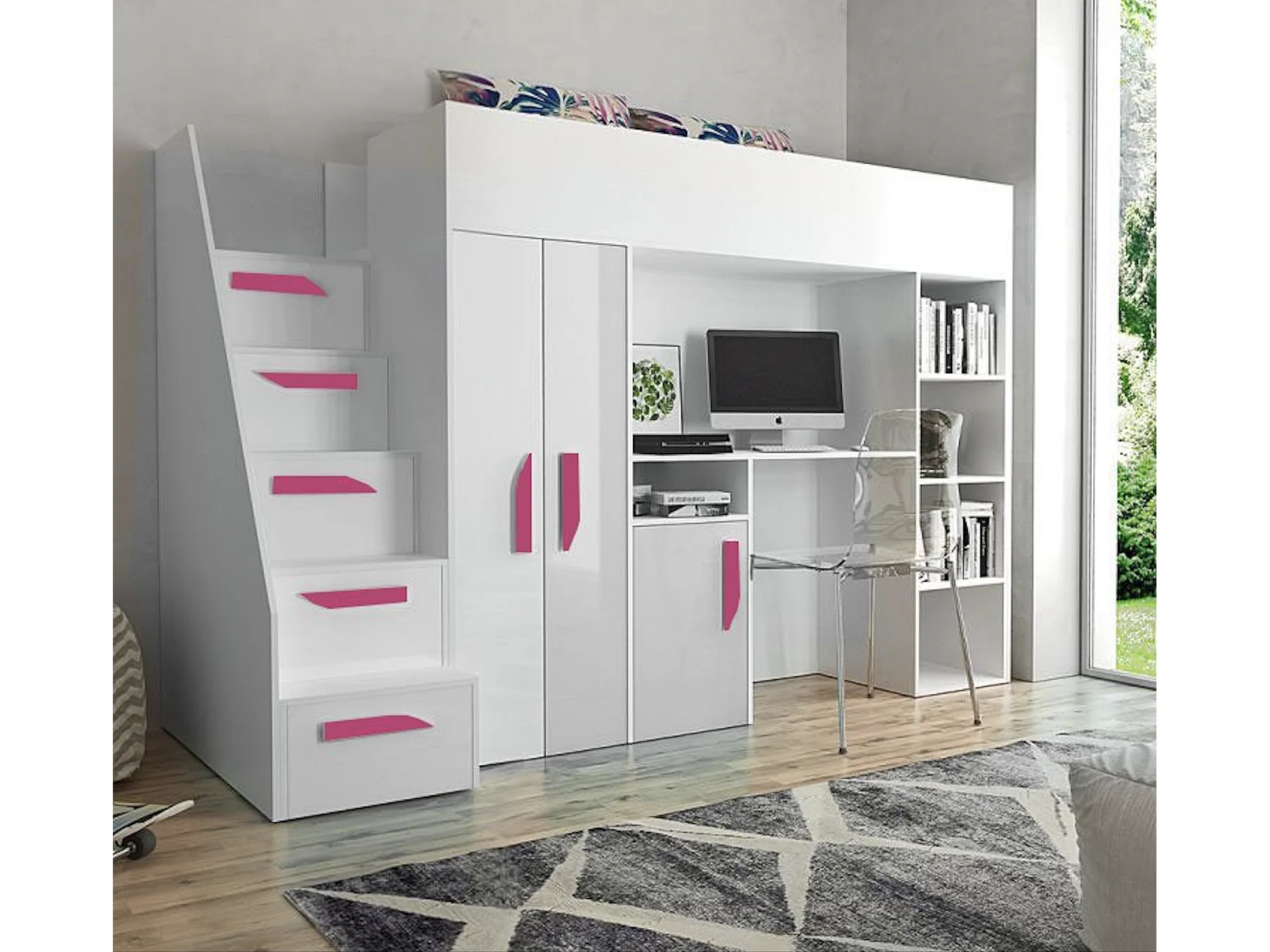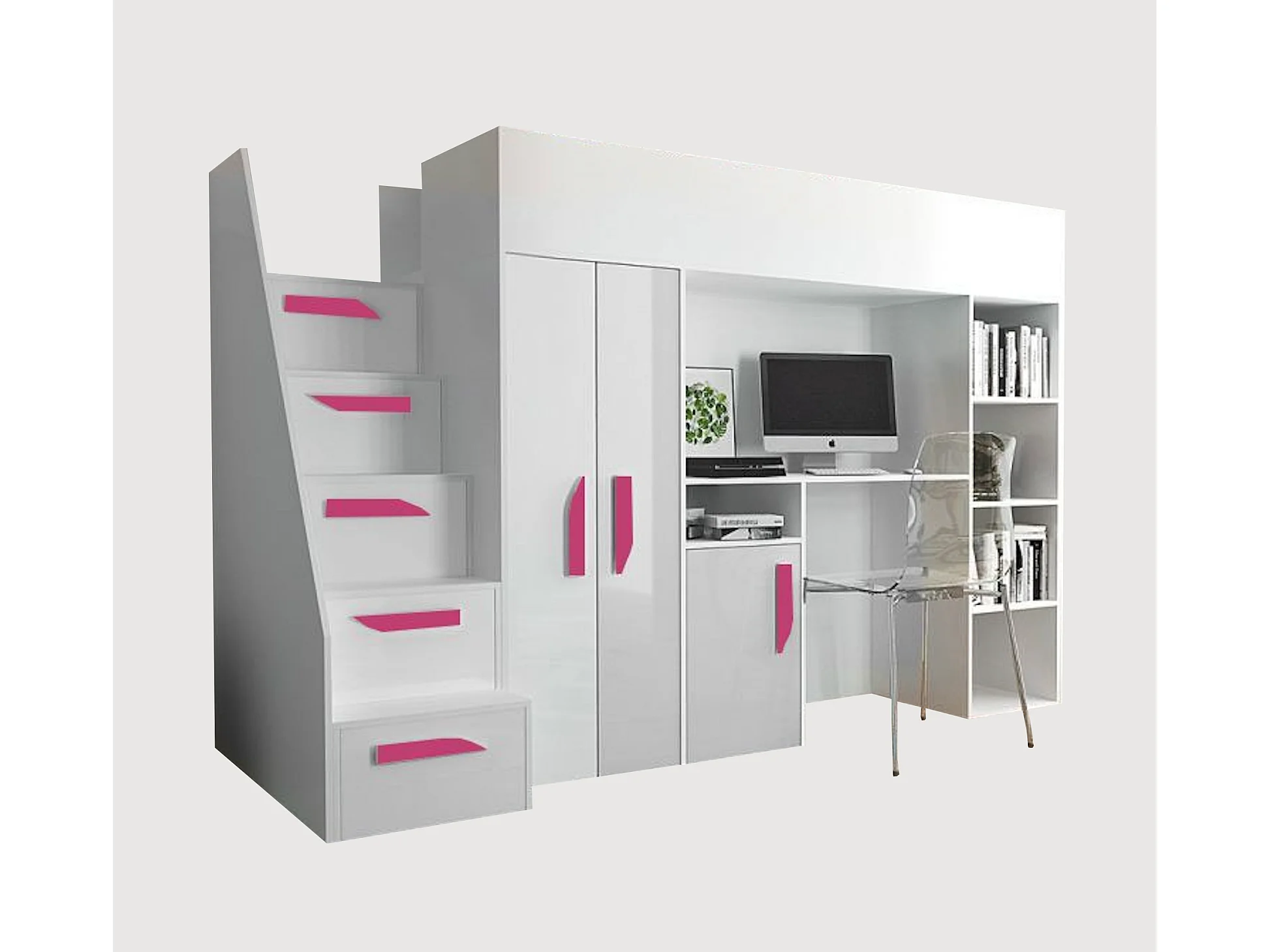 HOCHBETT Party weiß / weiß Hochglanz - Griffe pink 120 / 247 / 165cm