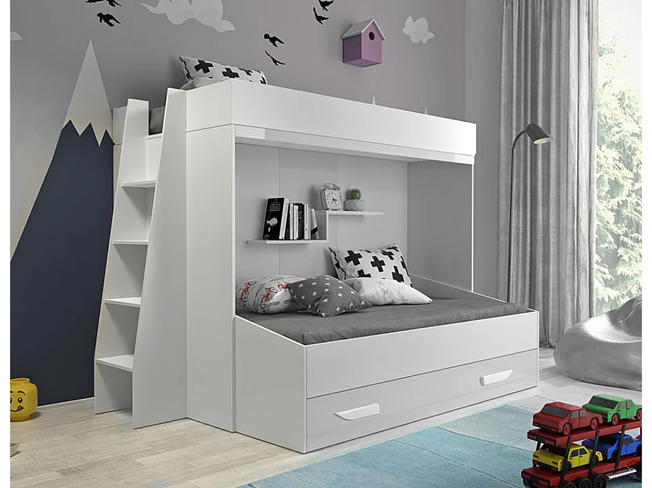 HOCHBETT Party weiß / weiß Hochglanz - Griffe weiß 230 / 135 / 165cm