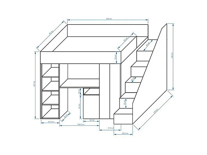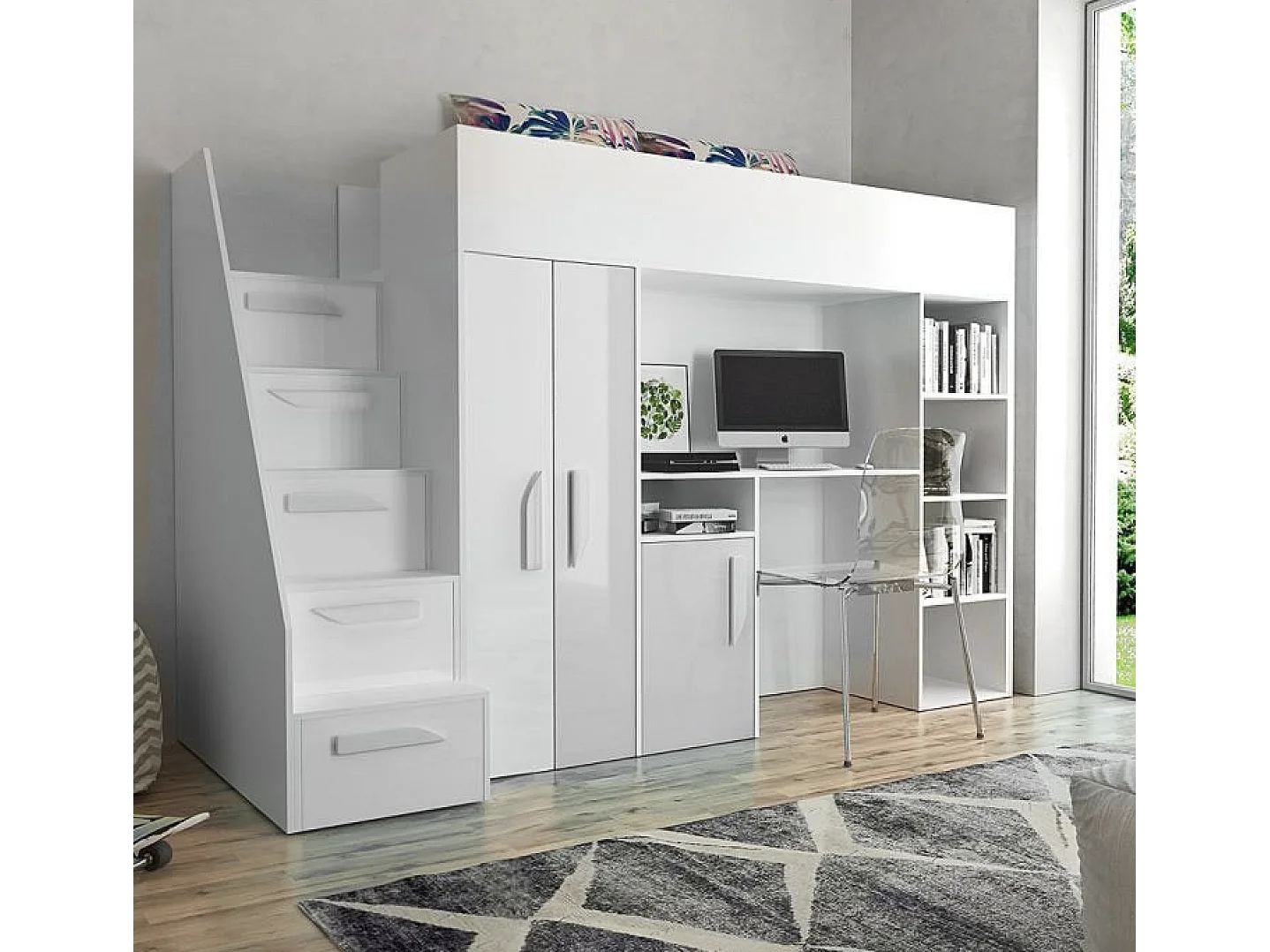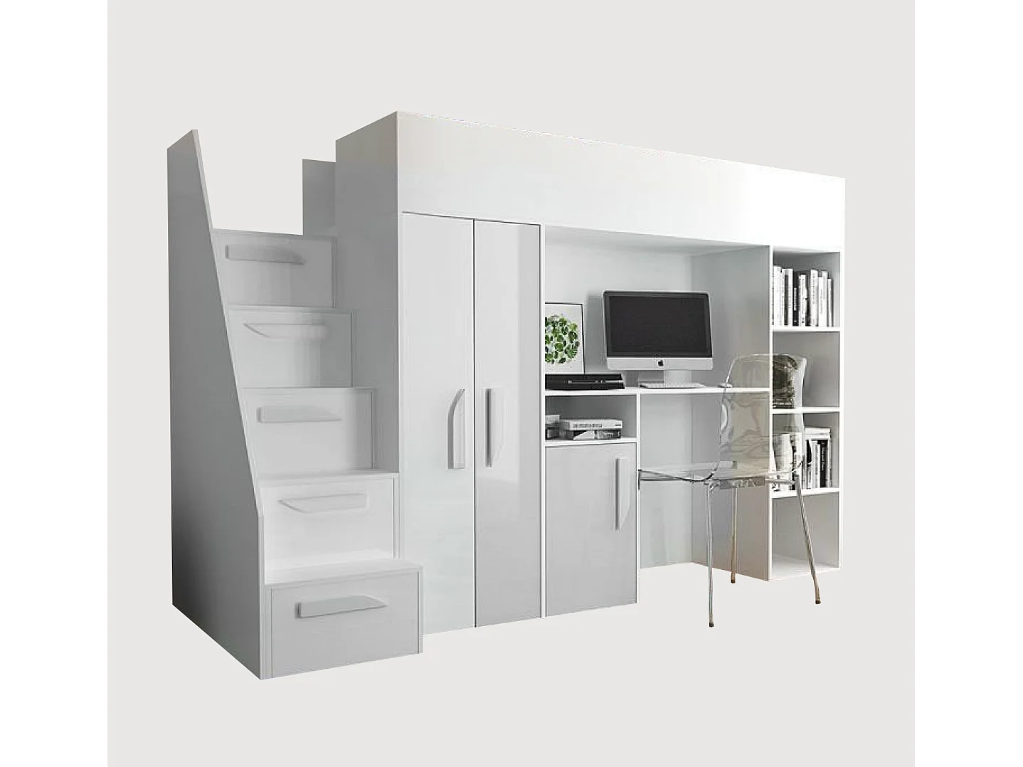 HOCHBETT Party weiß / weiß Hochglanz - Griffe weiß 120 / 247 / 165cm