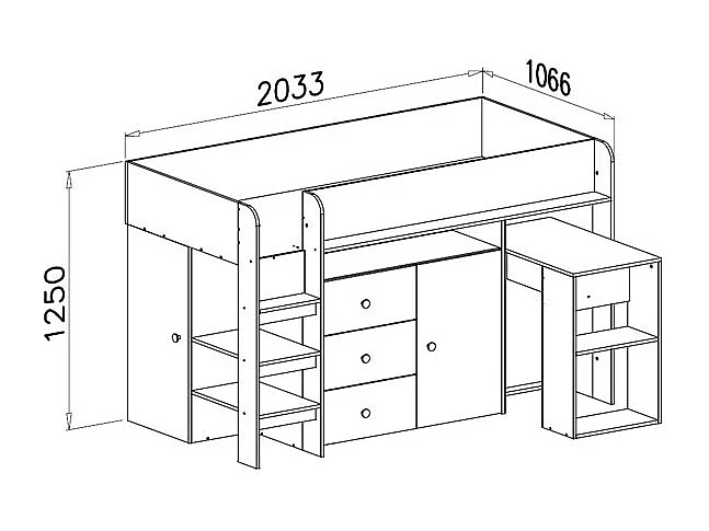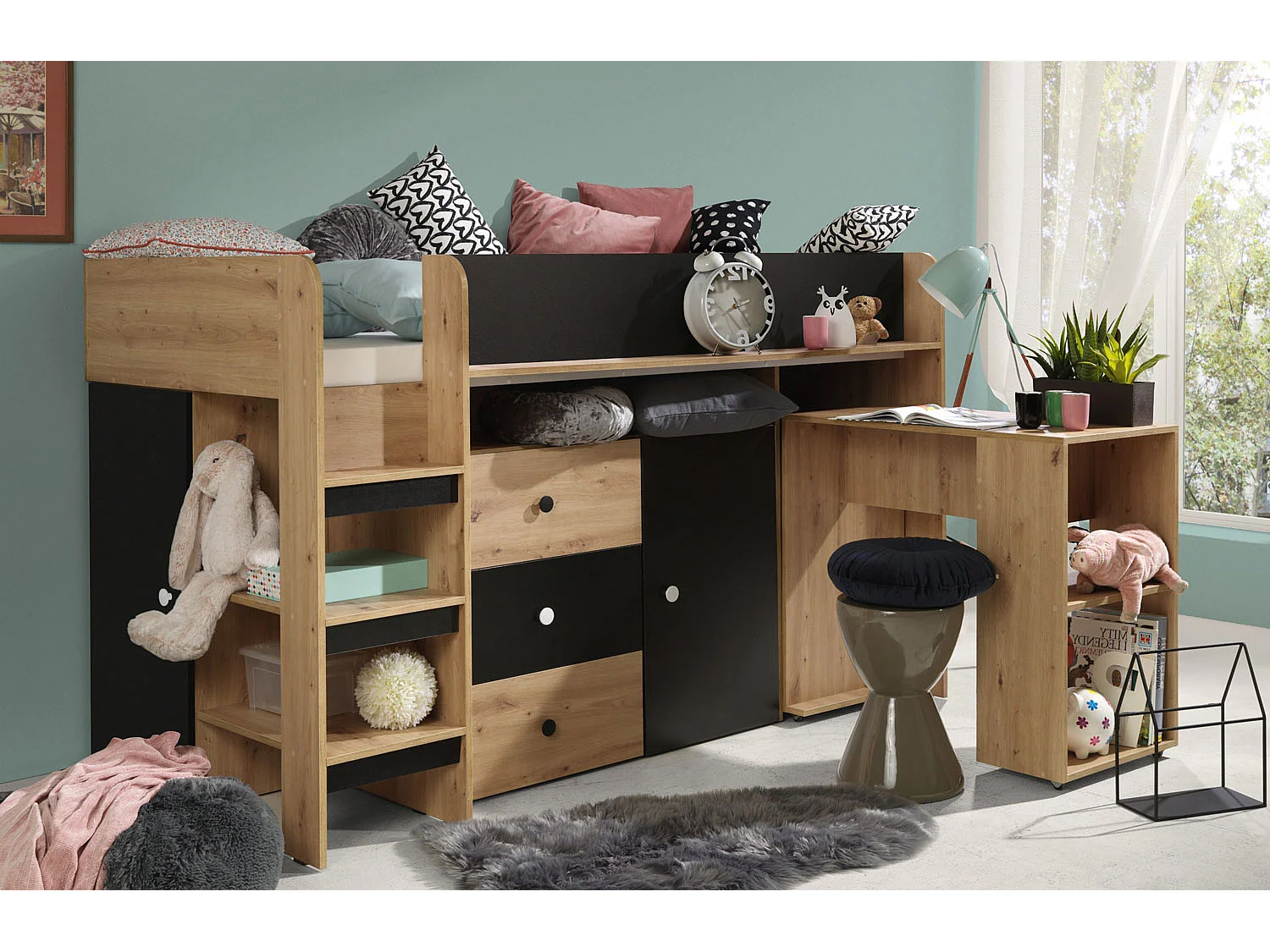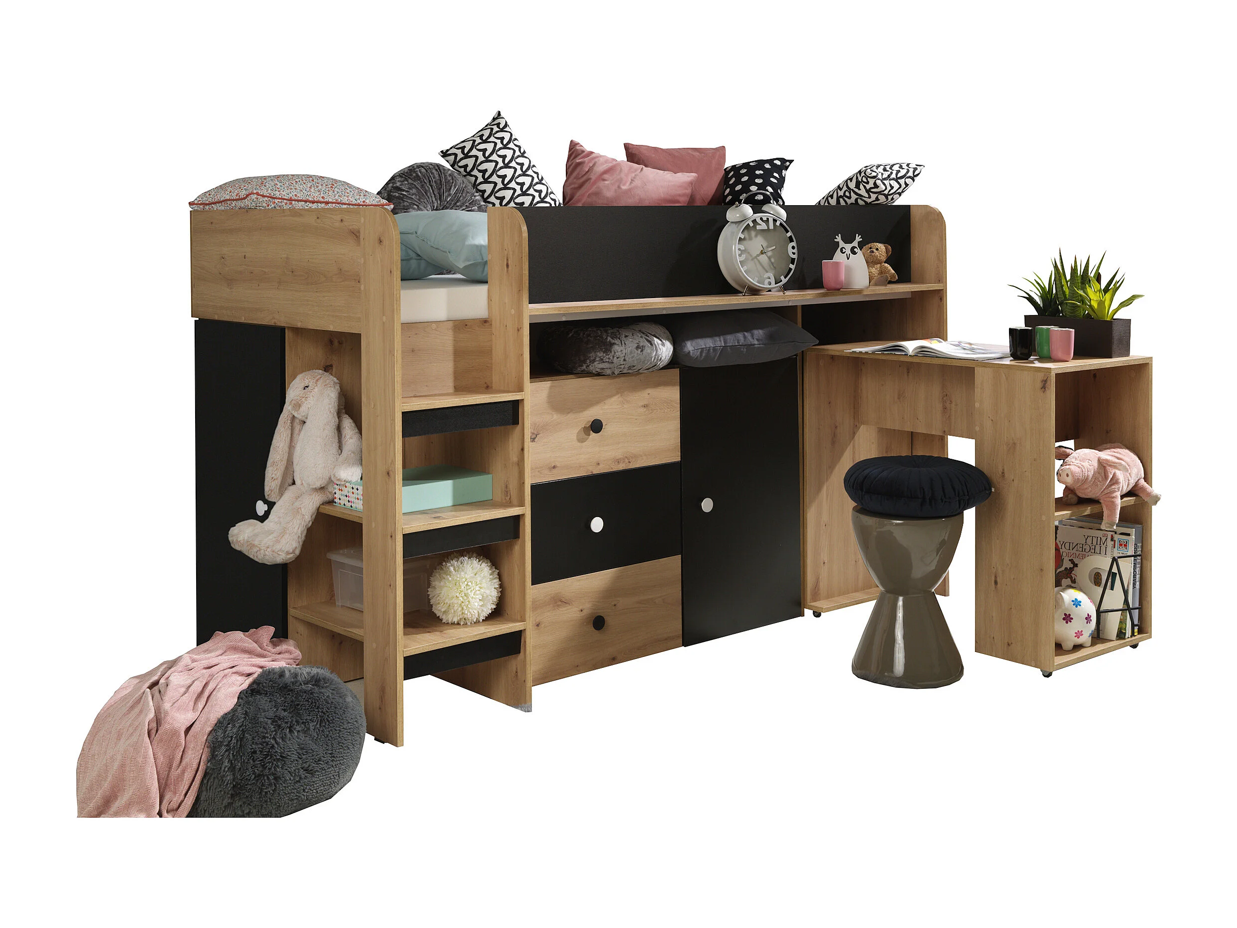 HOCHBETT Smart Artisan Eiche / schwarz 106 / 203 / 125cm Leiter links
