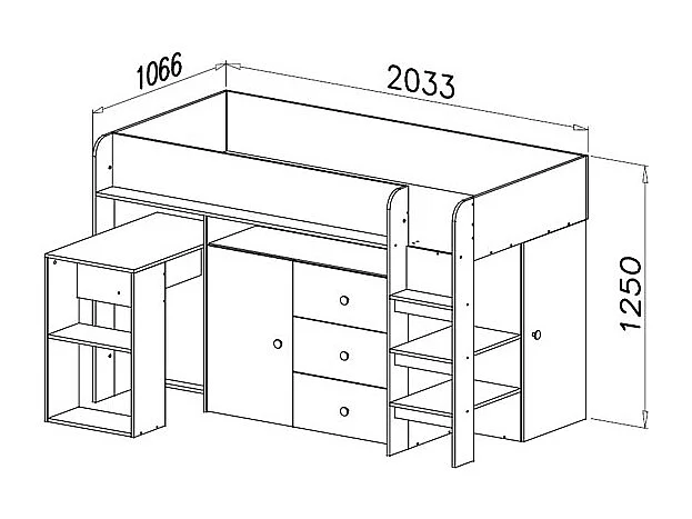 HOCHBETT Smart Artisan Eiche / schwarz 106 / 203 / 125cm Leiter rechts