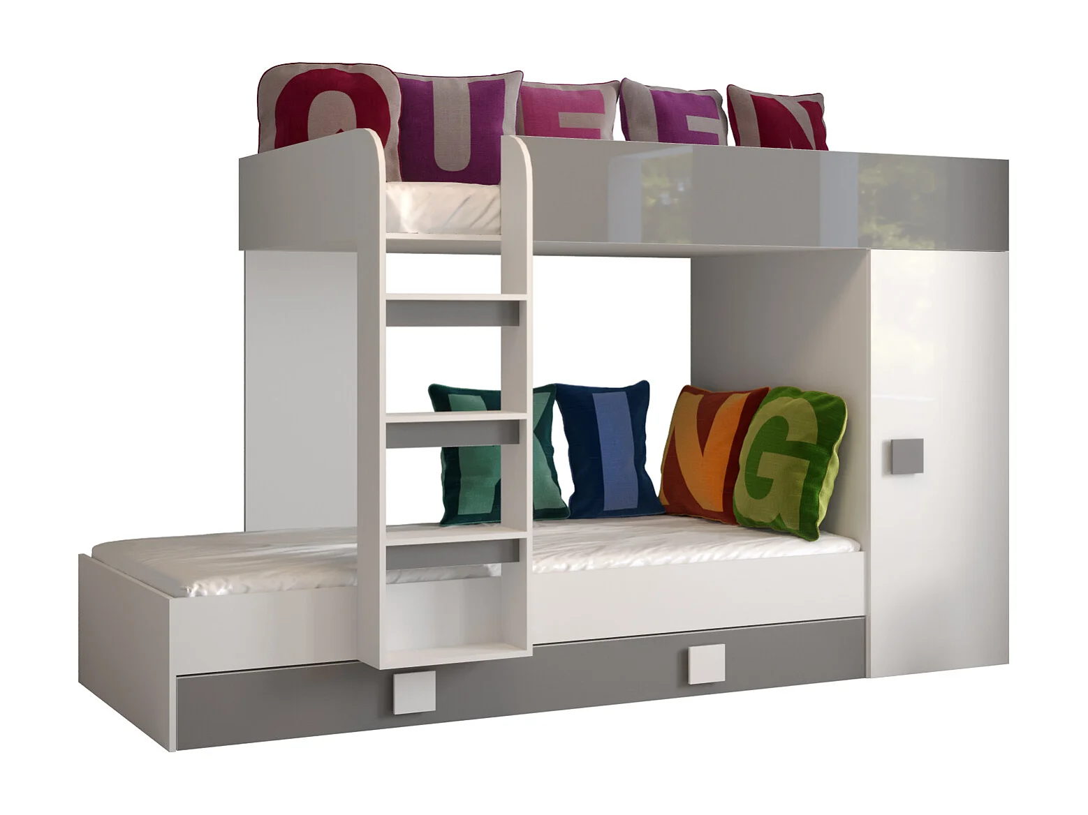 HOCHBETT Toledo weiß / grau Hochglanz - Griffe weiß / grau 94 / 254 / 165cm