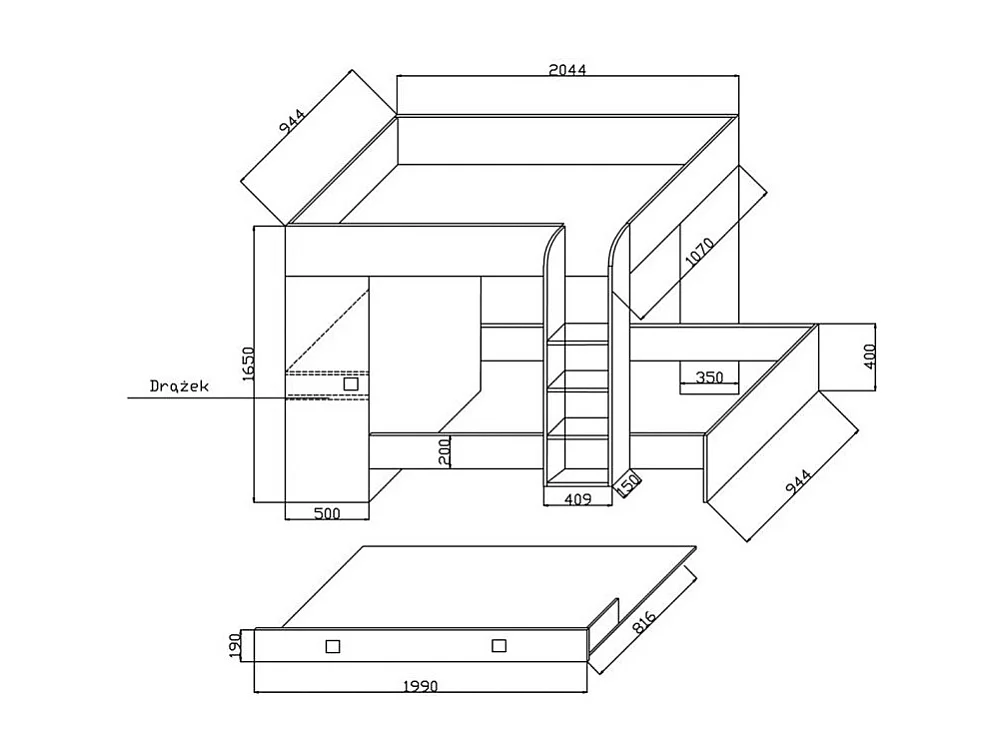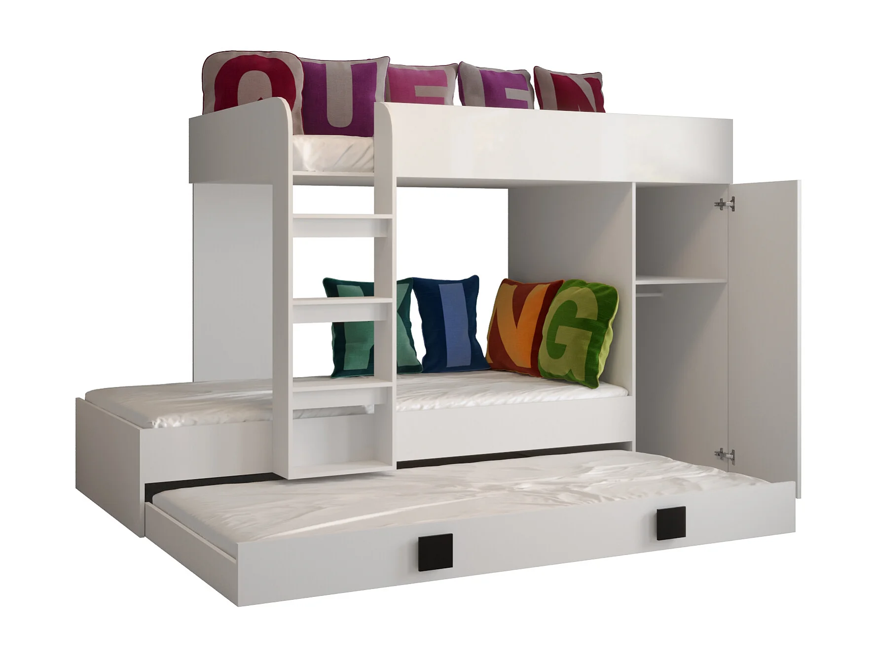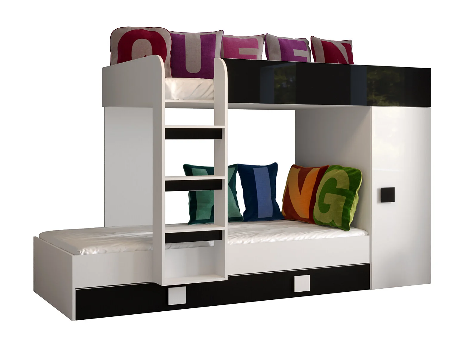 HOCHBETT Toledo weiß / schwarz Hochglanz - Griffe weiß / schwarz 94 / 254 / 165cm
