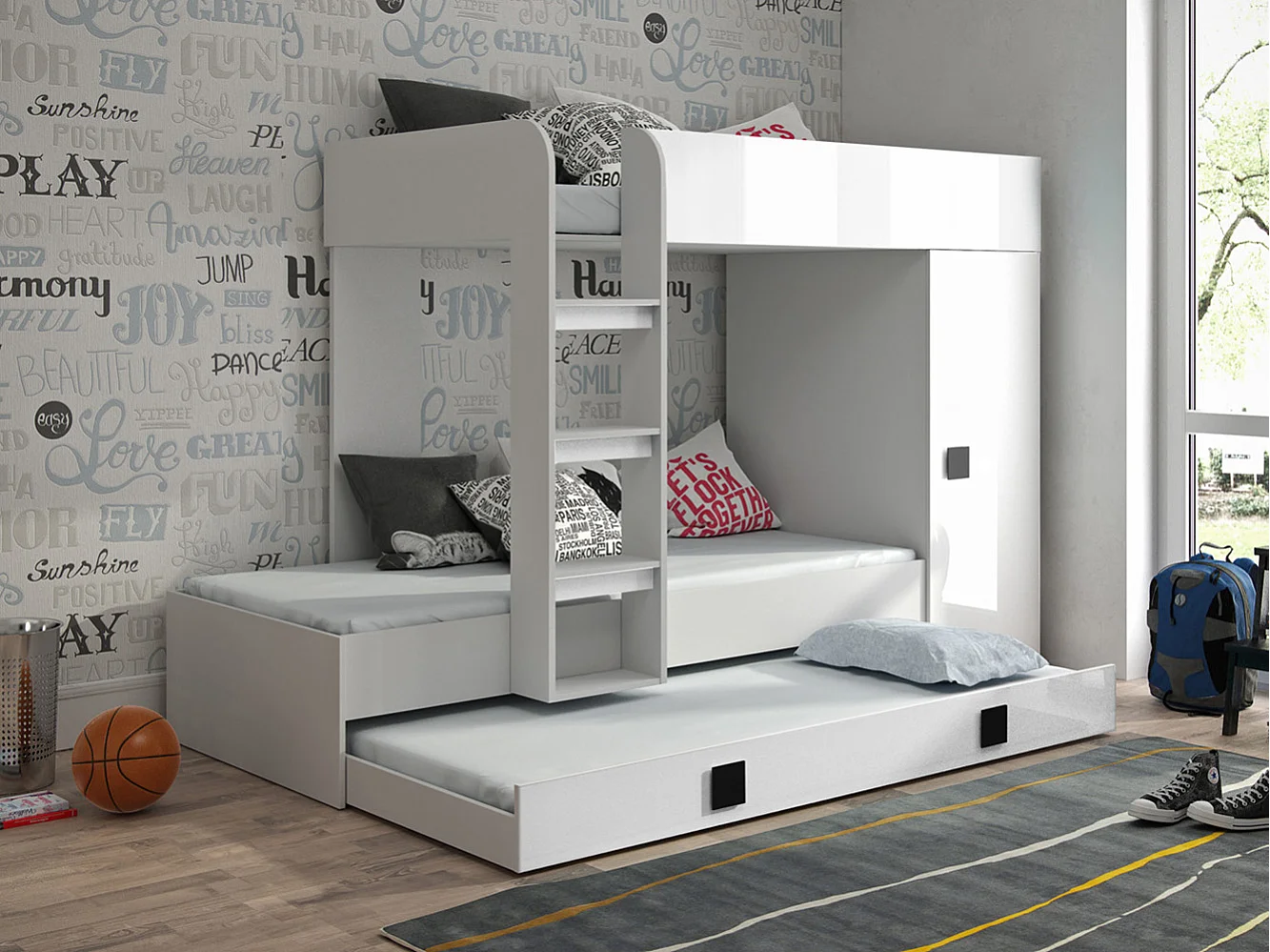 HOCHBETT Toledo weiß / weiß Hochglanz - Griffe schwarz 94 / 254 / 165cm