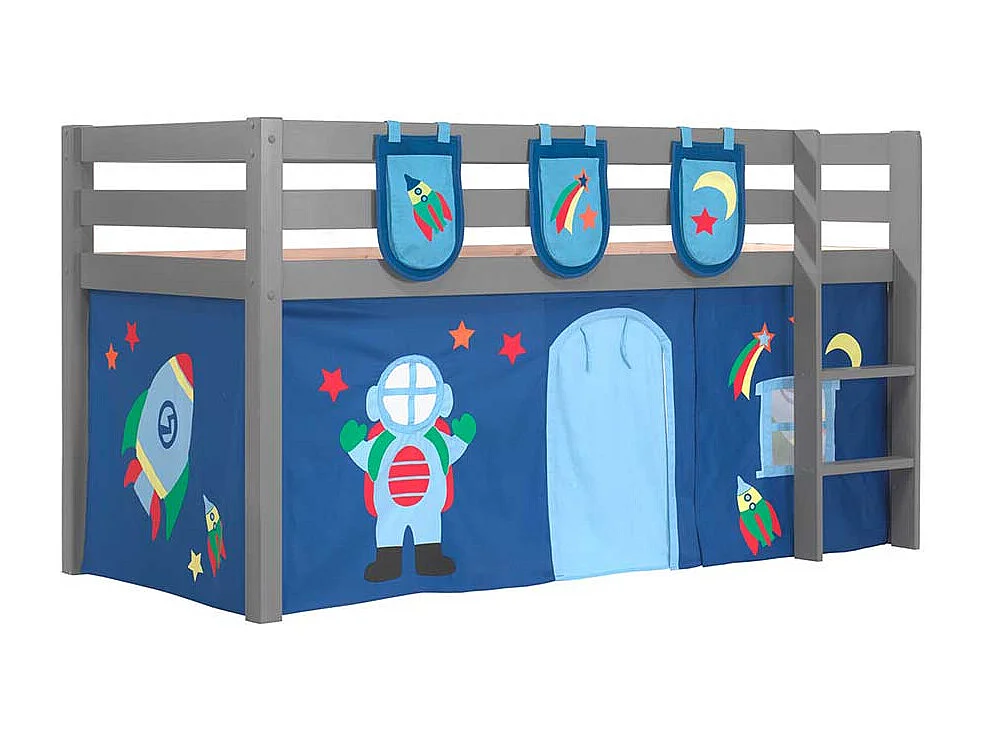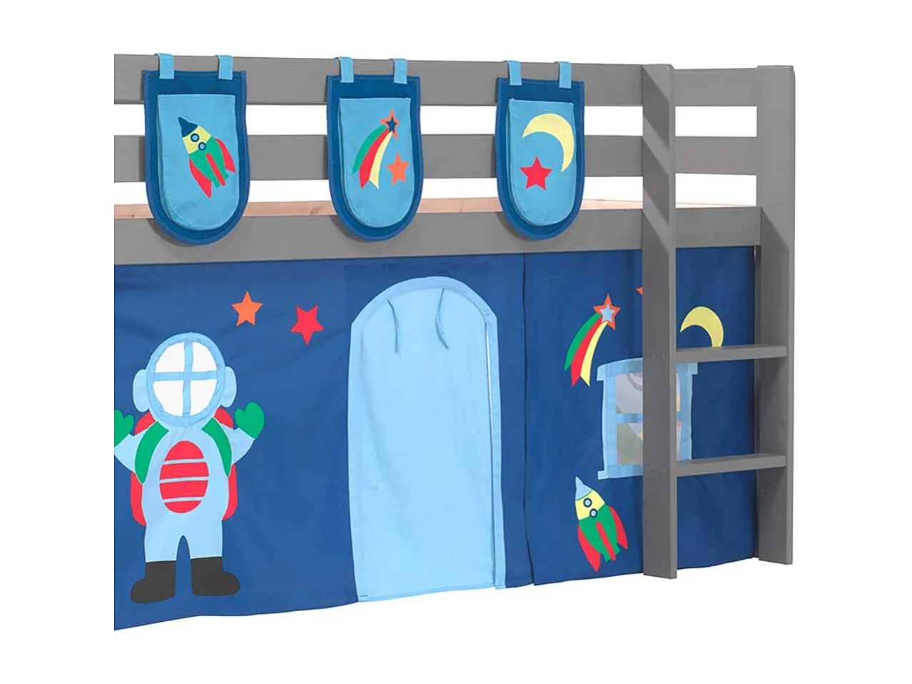 Hochbettgestell in Grau und Blau Kiefer Massivholz