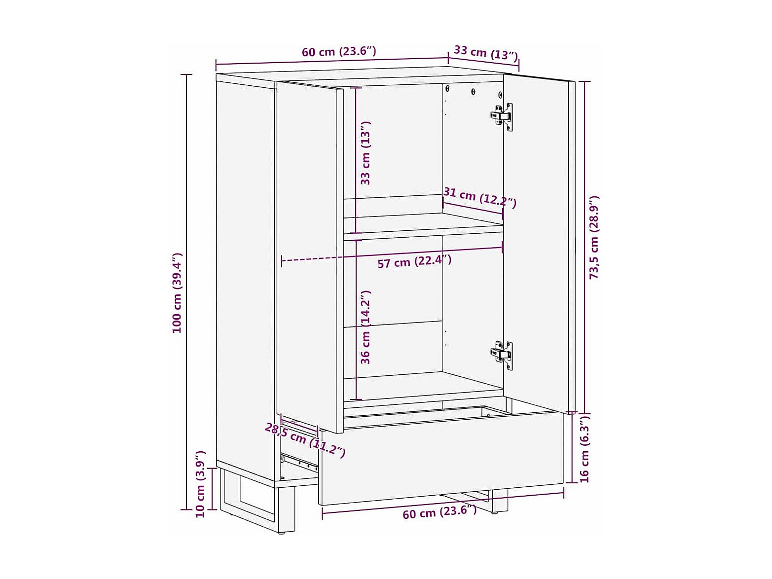 Hochboard Braun 60 x 33 x 100 cm massives Mangoholz
