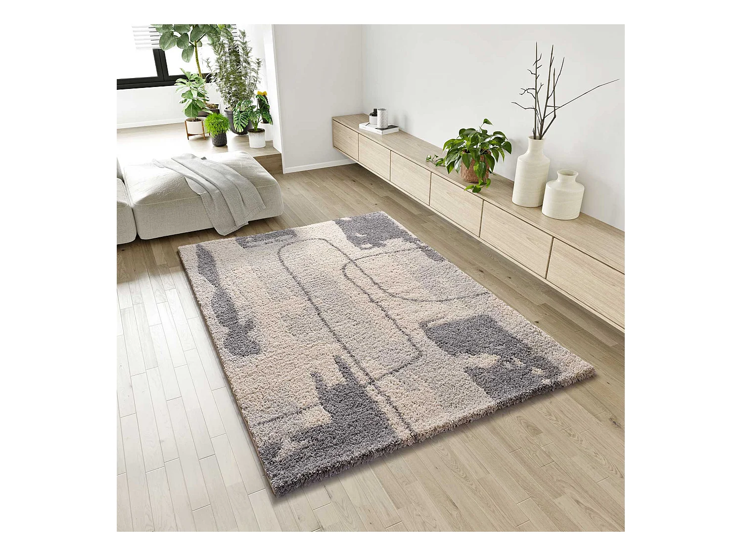 Hochflorteppich - abstrakt shaggy - silber - 80x150 cm - HELIA