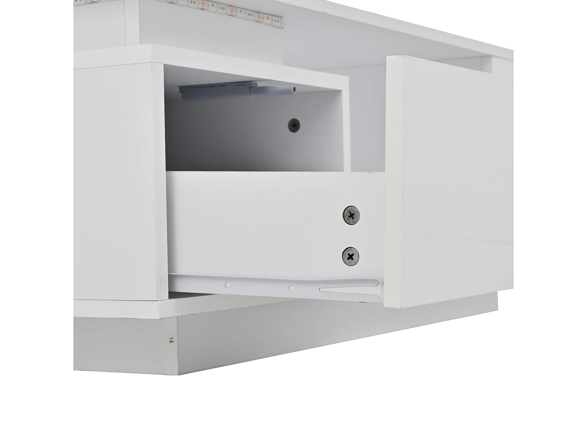 Hochglänzender lackierter Couchtisch 100x50x36 cm - mit LED-Beleuchtung - mit 1 Schublade - mit 4 Staufächern - Weiß