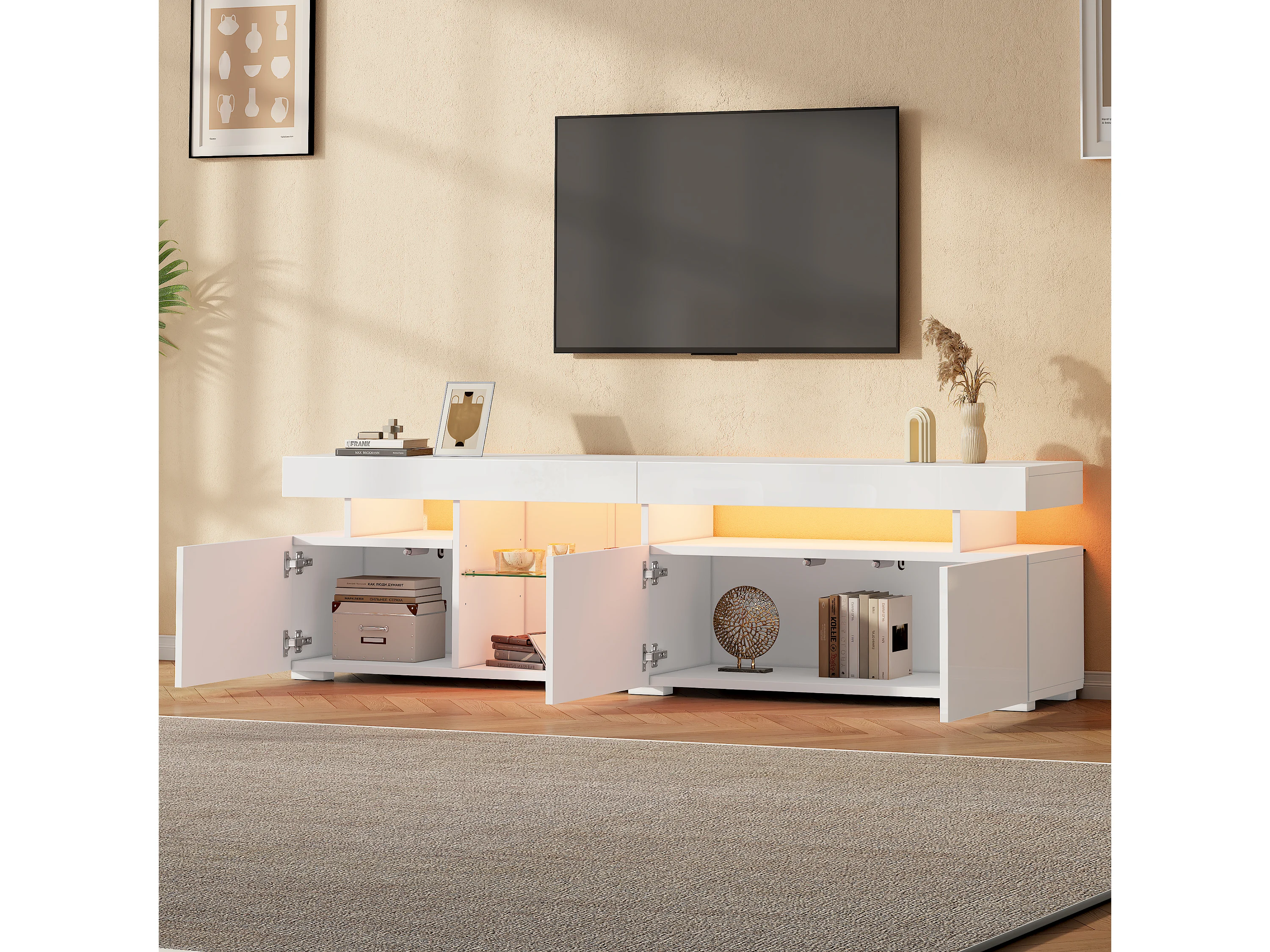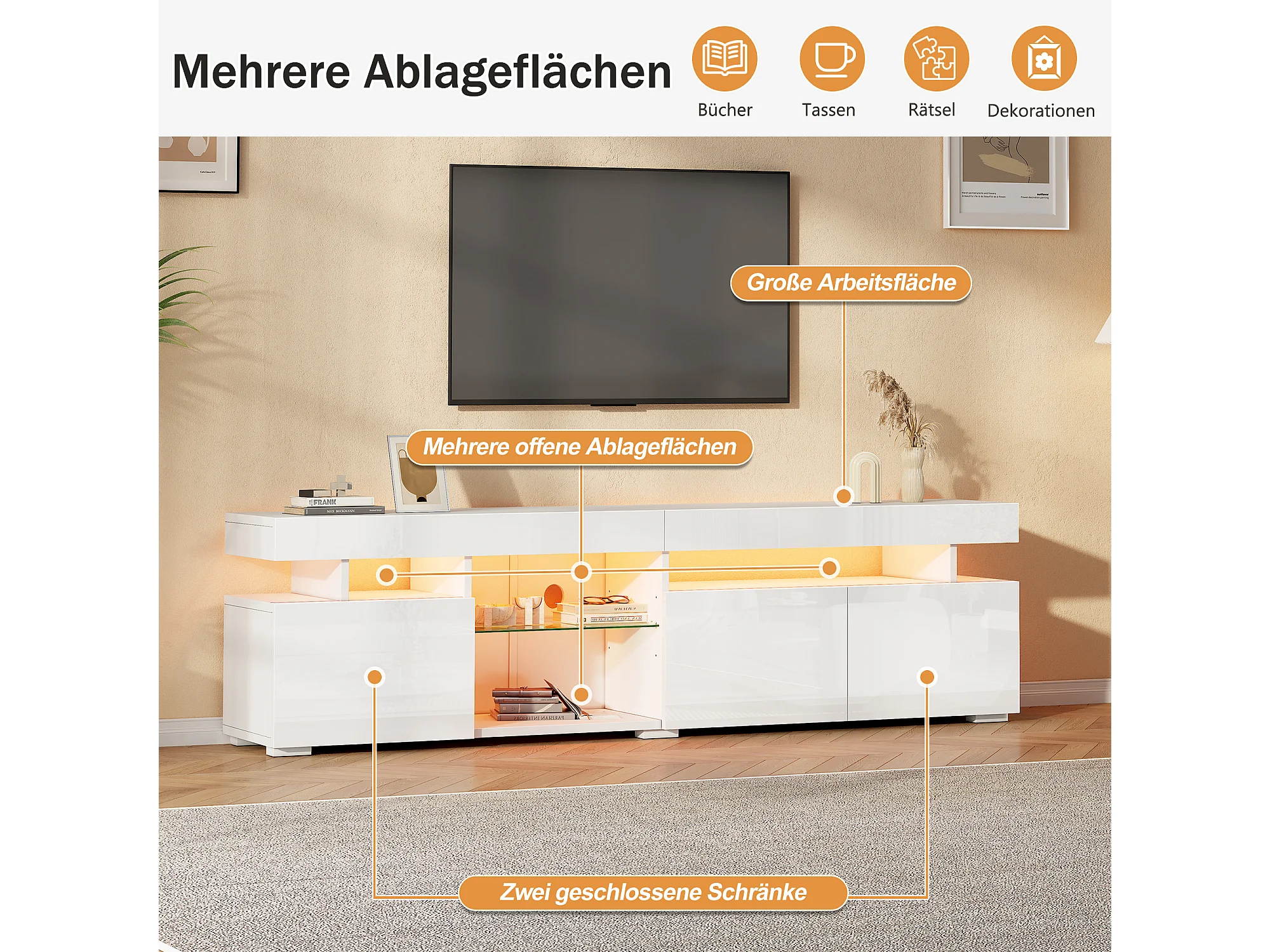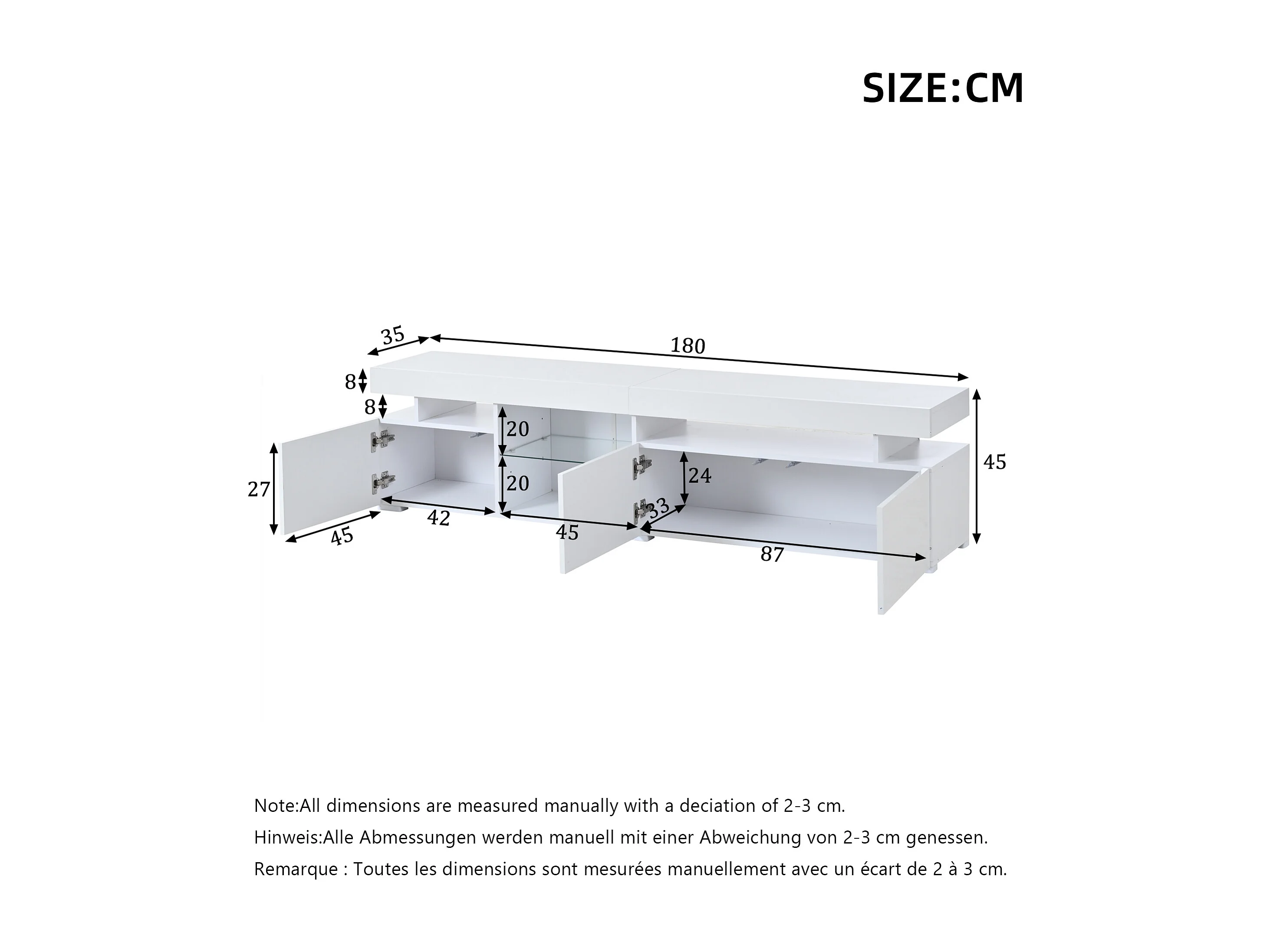 Hochglänzender TV-Schrank 180x35x45 cm - 3 Türen - Mit LED - Höhenverstellbare Einlegeböden aus Sicherheitsglas - Spanplatten - Weiß