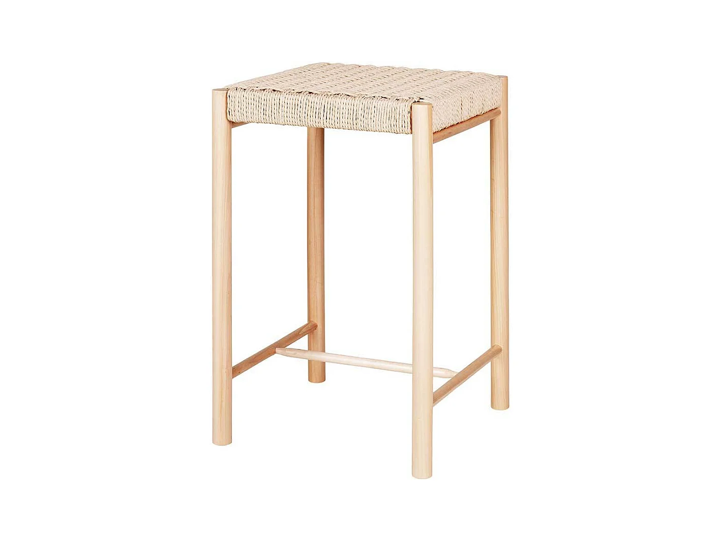 Hochhocker im Skandi Design Pappel Massivholz und Kordelgeflecht