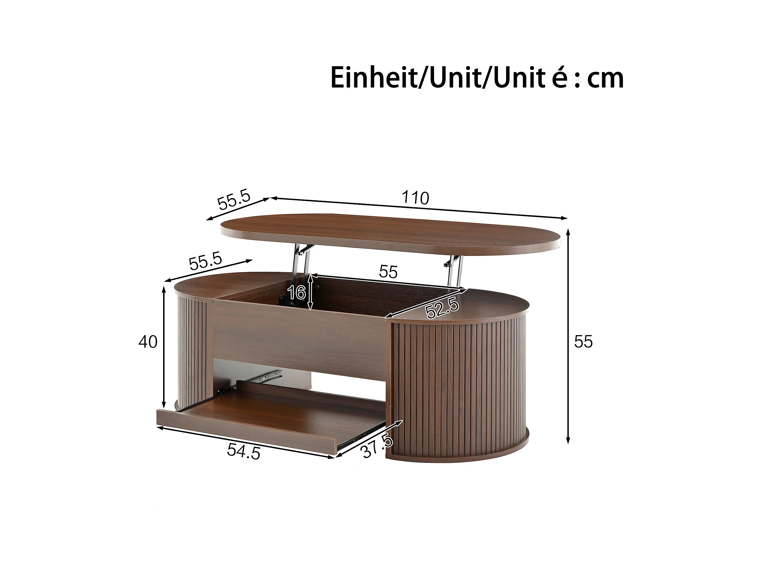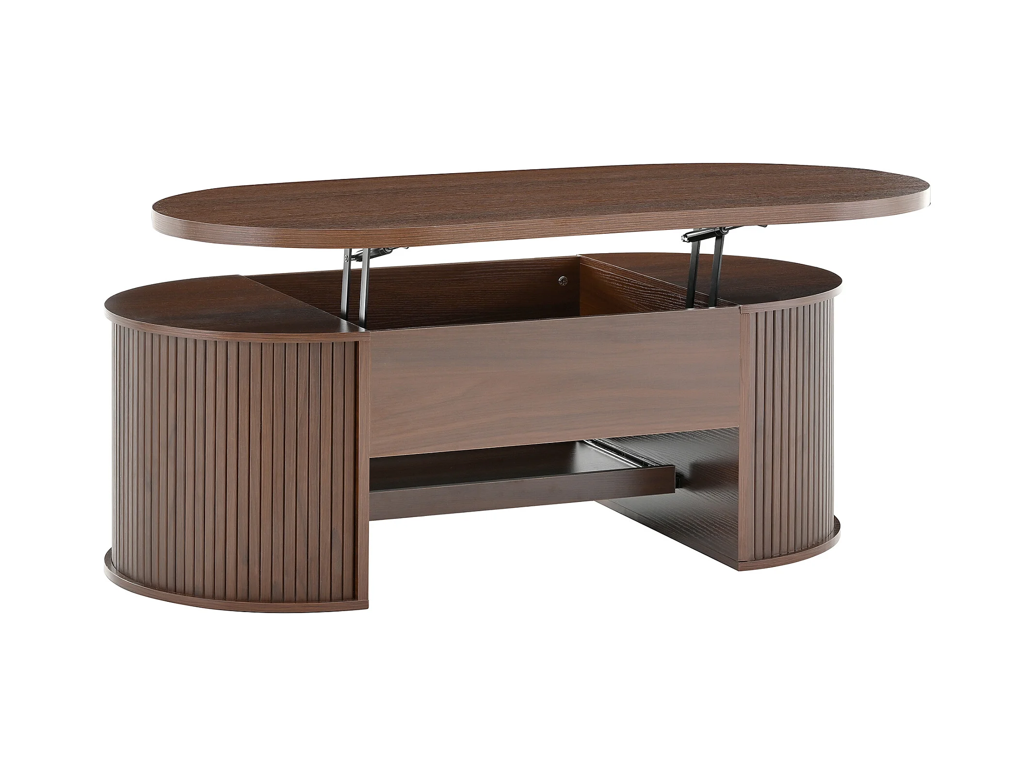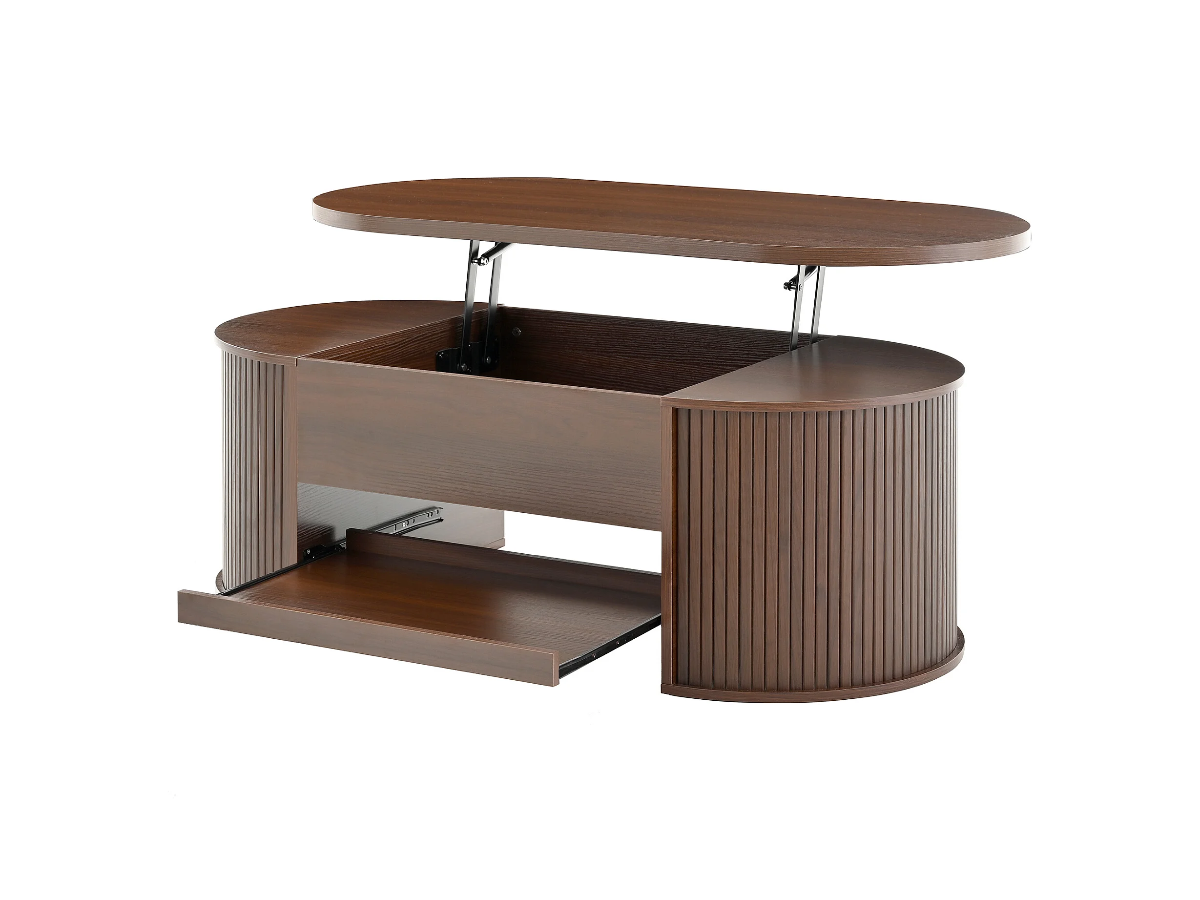 Hochklappbarer Couchtisch - Couchtisch mit ausziehbaren Regalen und hochklappbarer Platte - dunkles Holz - für das Wohnzimmer