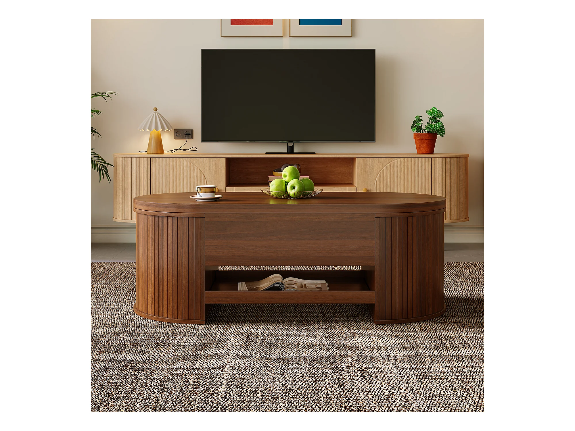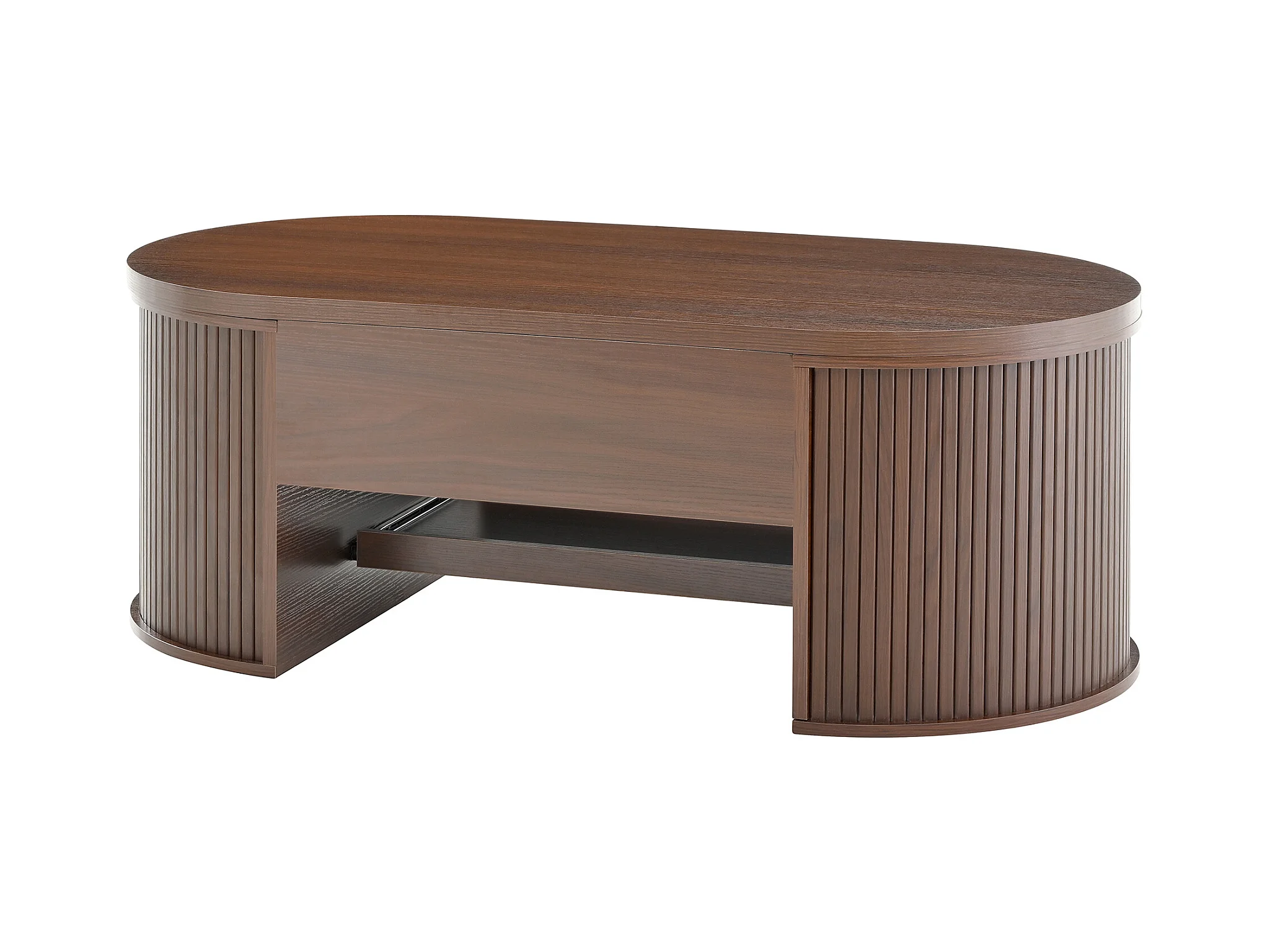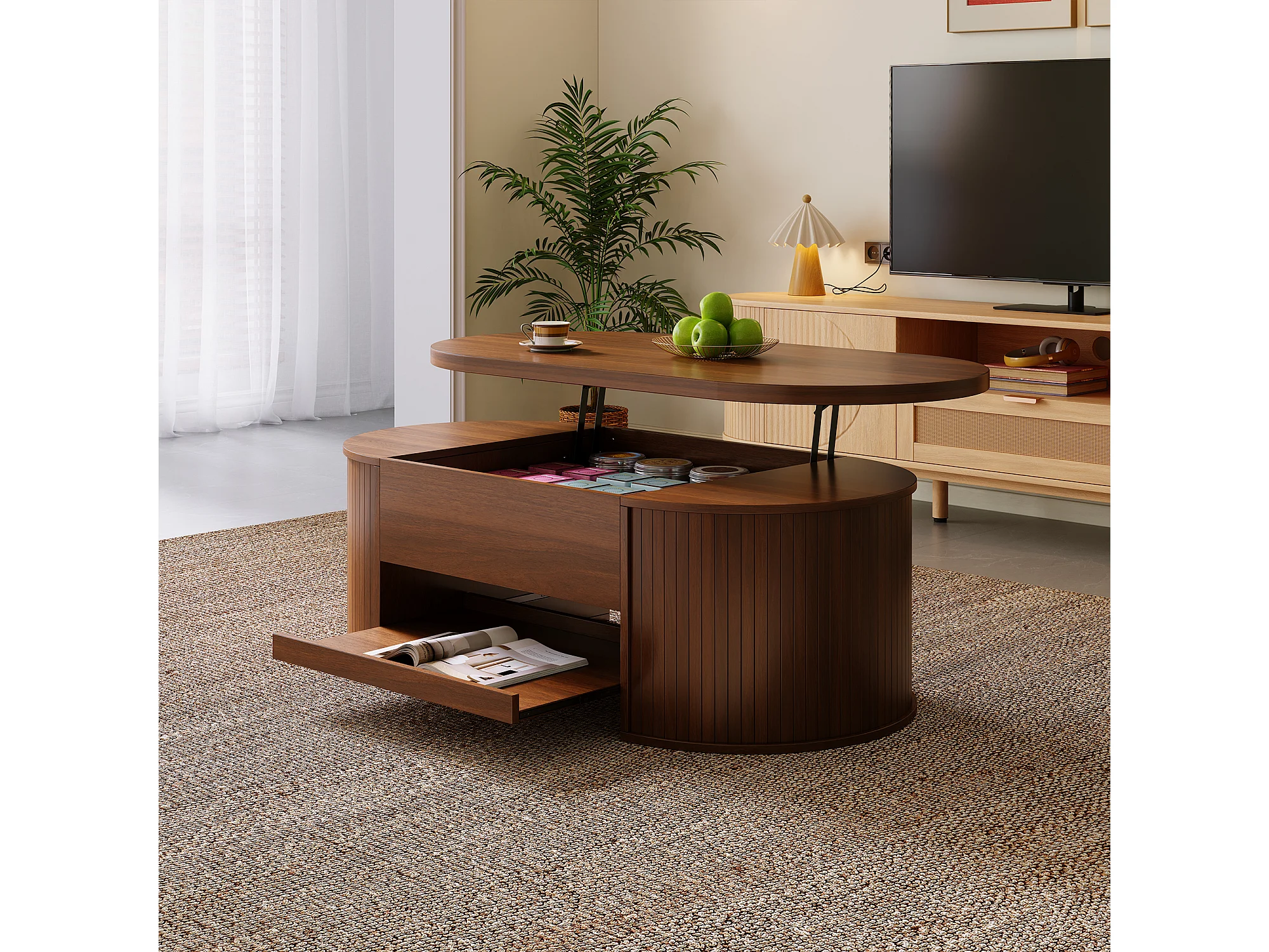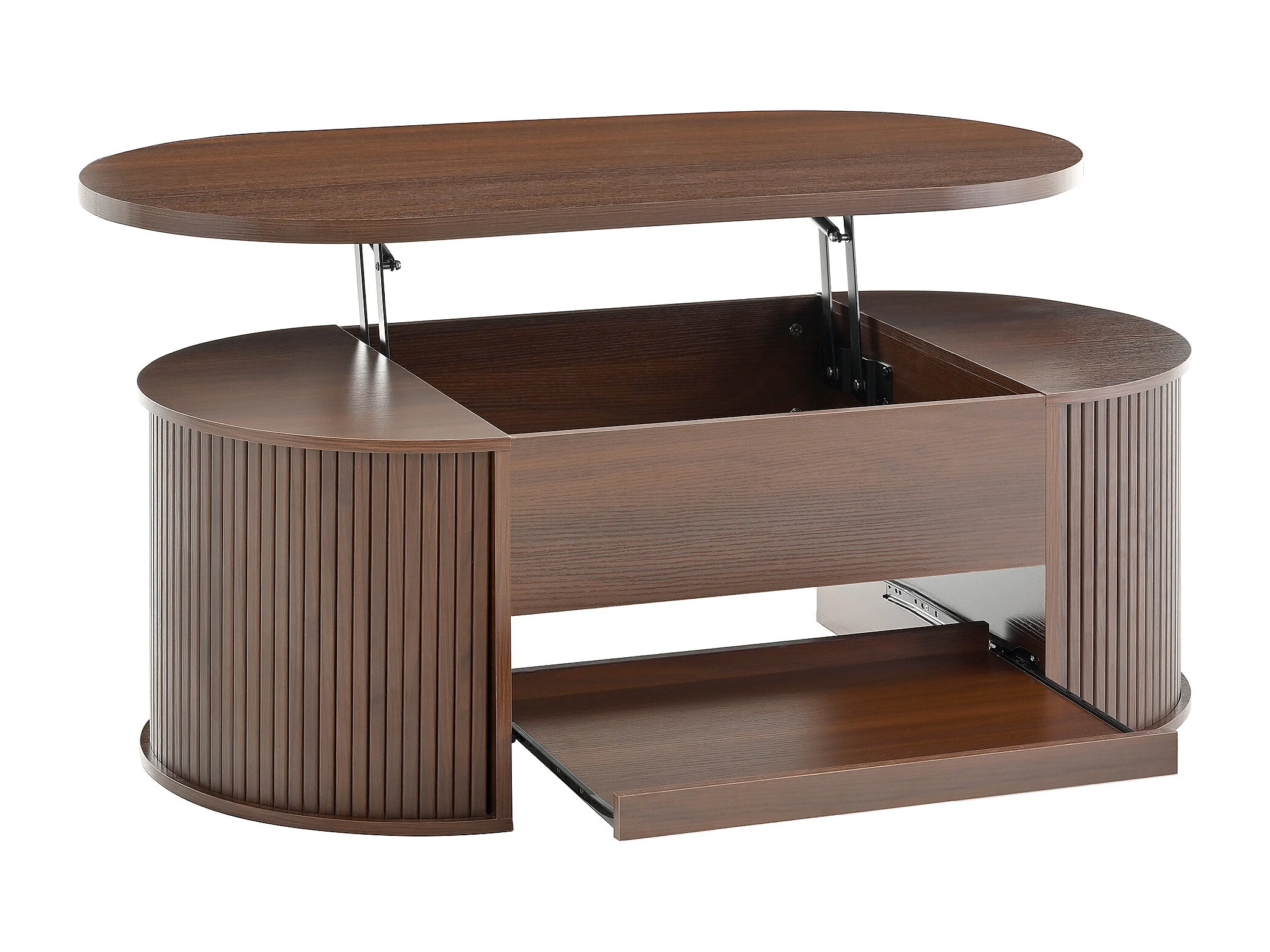 Hochklappbarer Couchtisch - Couchtisch mit ausziehbaren Regalen und hochklappbarer Platte - dunkles Holz - für das Wohnzimmer