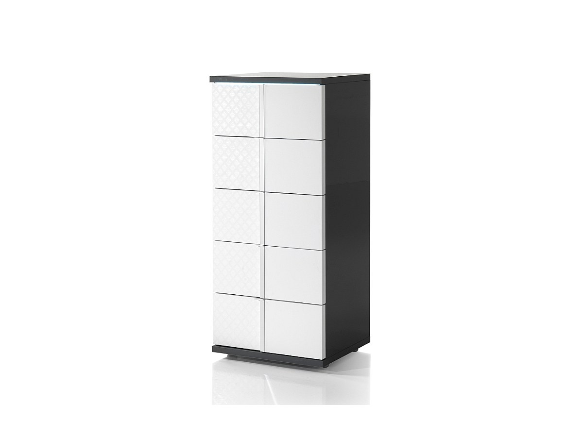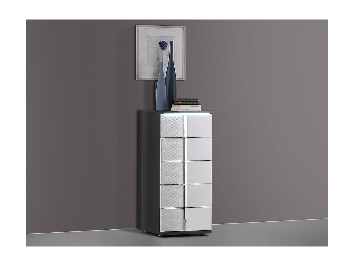Hochkommode mit LED-Beleuchtung CONSCIENCE - 5 Schubladen - Weiß & Grau